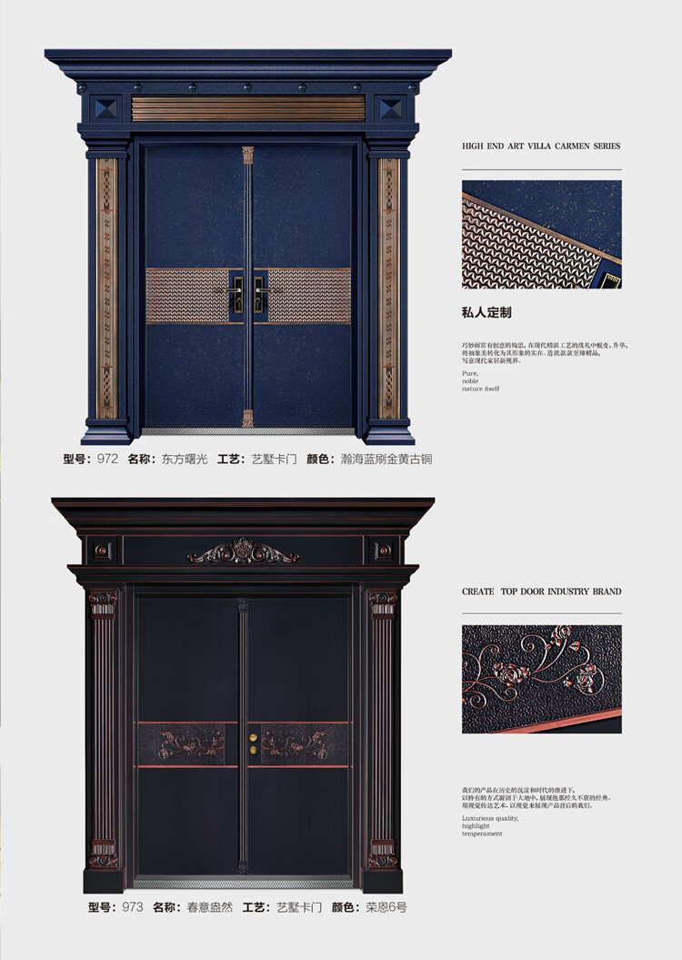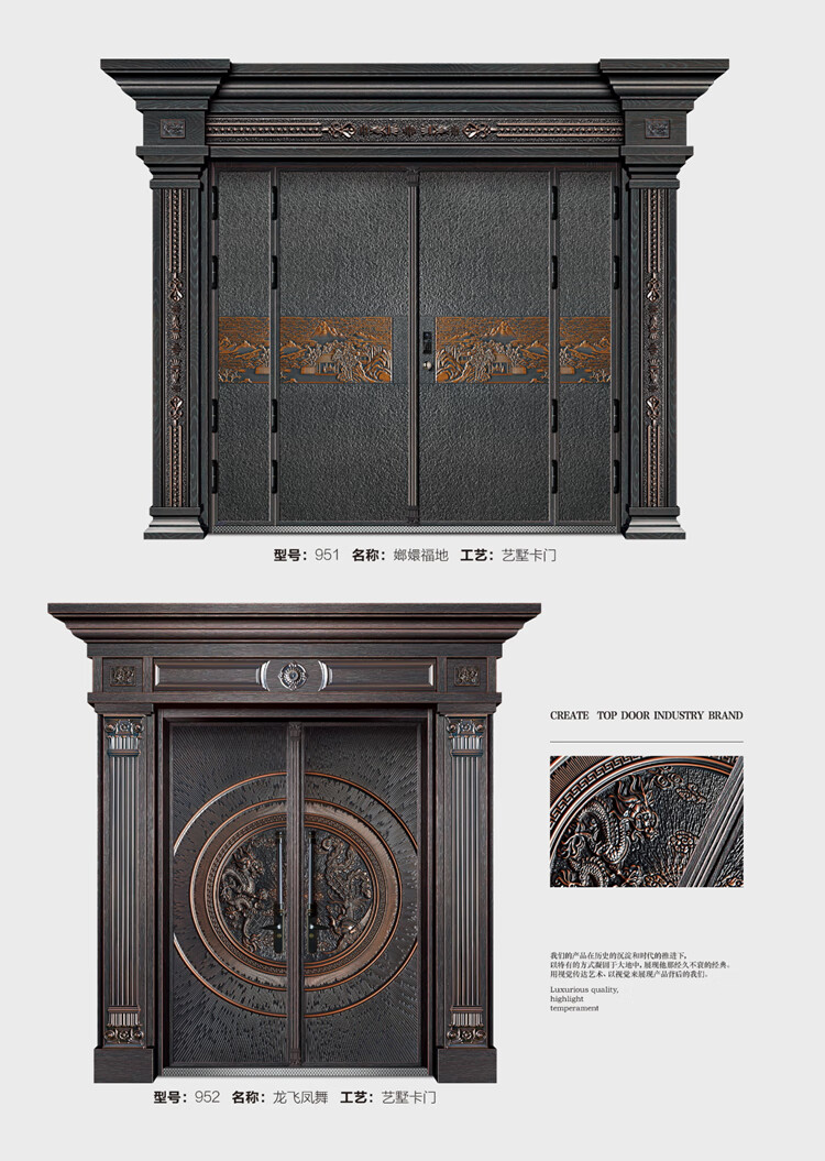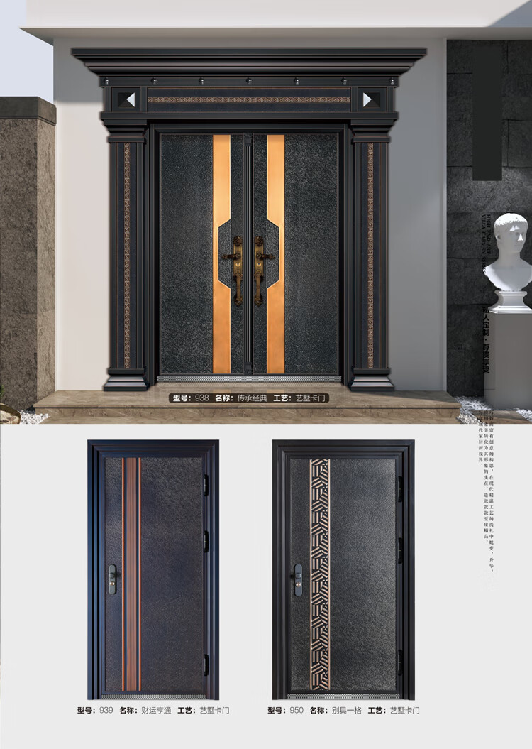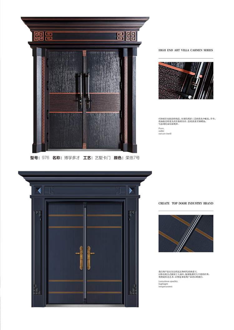 Delijia villa door simple home security door entrance door rural stainless steel double door living room zinc titanium alloy entrance style 11 per square
