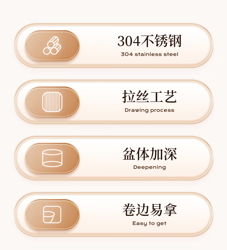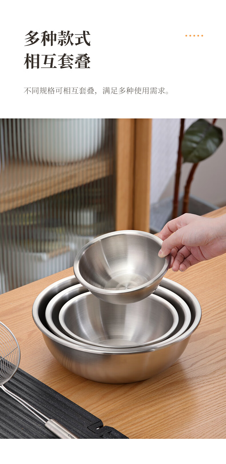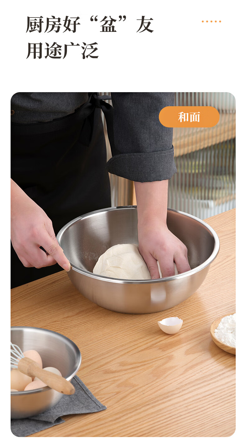 Camellia 304 stainless steel kitchen special soup basin and vegetable basin thickened food grade material anti-fall vegetable basin basin 28cm304 stainless steel basin 1 piece 5L