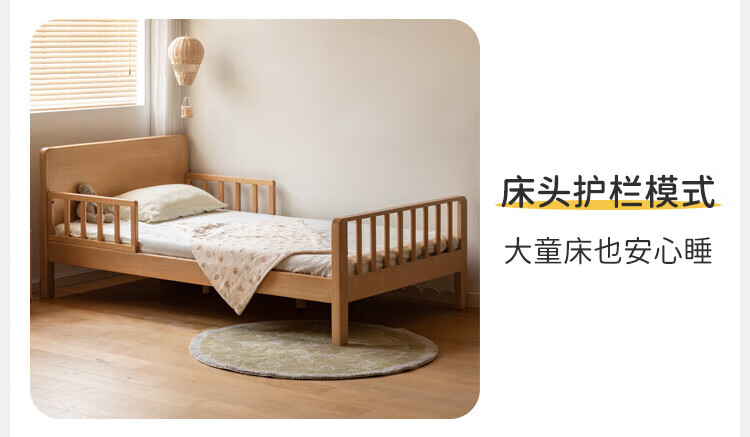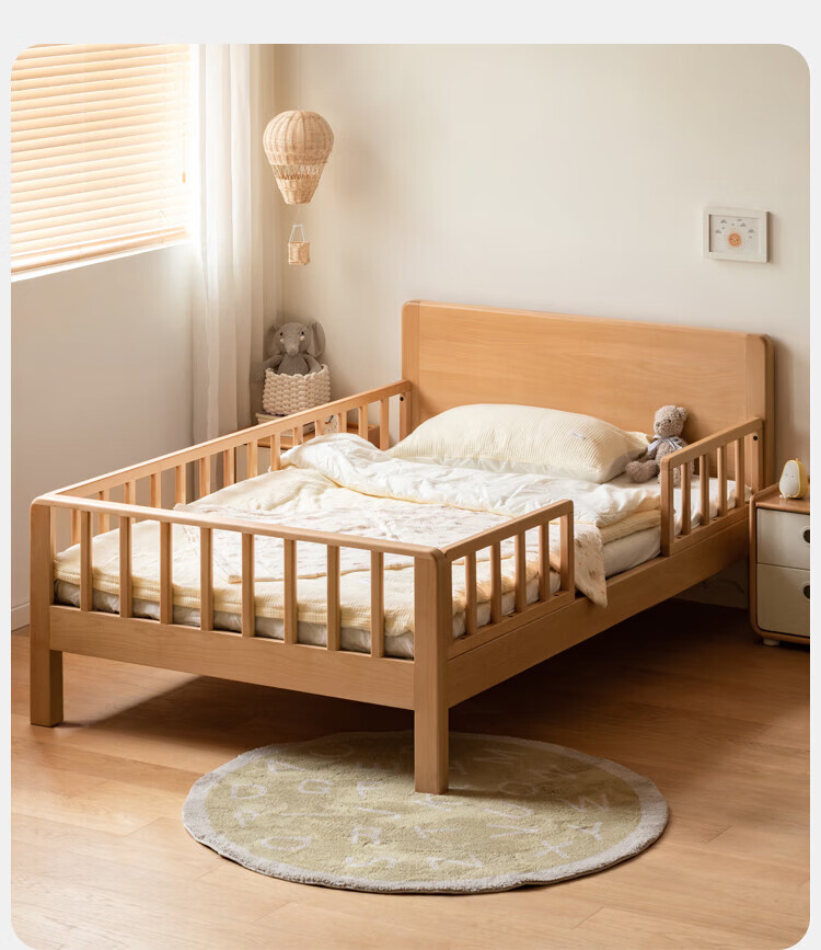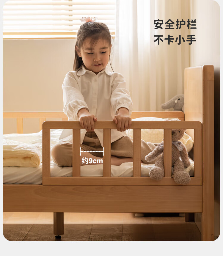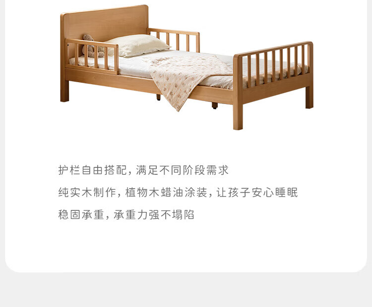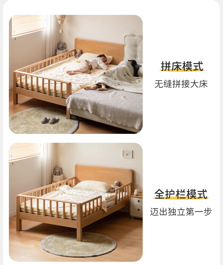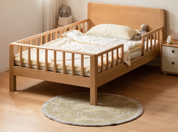 Genji Muyu Children's Furniture Children's Bed Solid Wood Single Bed for Boys and Girls 1.2m Simple Baby Spliced Large Bed with Guardrails Small Bed Bed (Including Large Guardrails + Small Guardrails*2) + Mattress J96 1500mm*2000mm