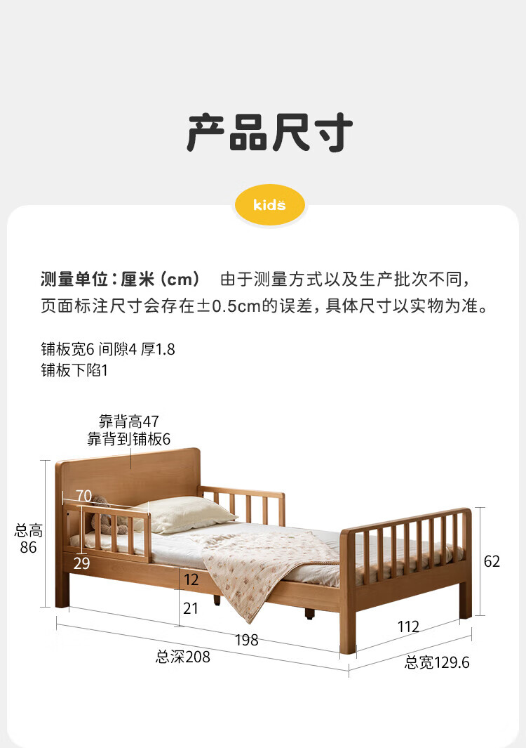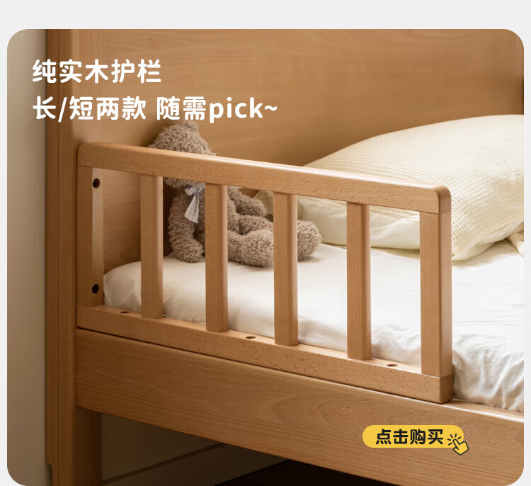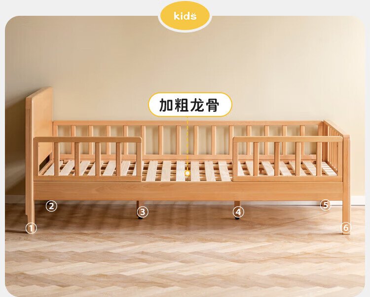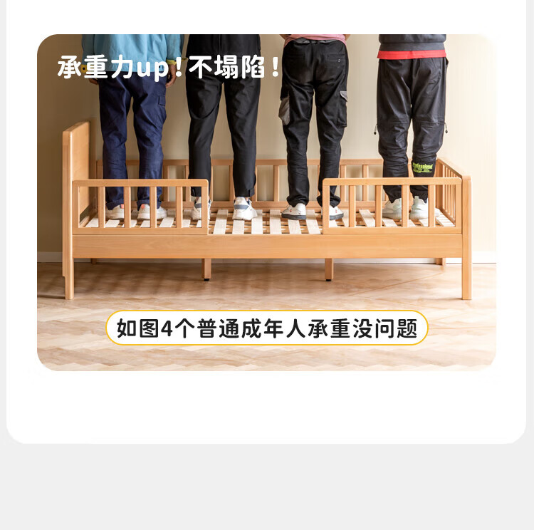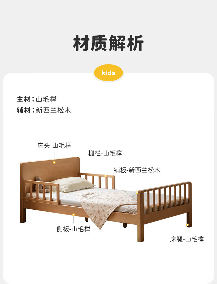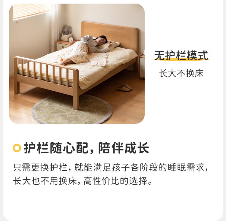 Genji Muyu Children's Furniture Children's Bed Solid Wood Single Bed for Boys and Girls 1.2m Simple Baby Spliced Large Bed with Guardrails Small Bed Bed (Including Large Guardrails + Small Guardrails*2) + Mattress J96 1500mm*2000mm