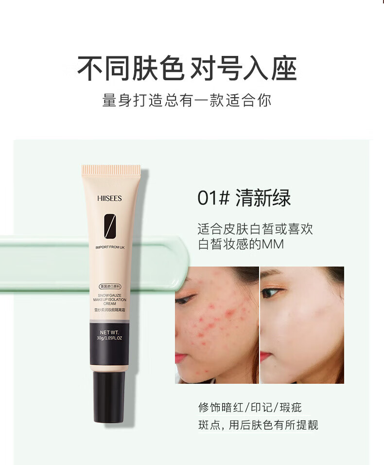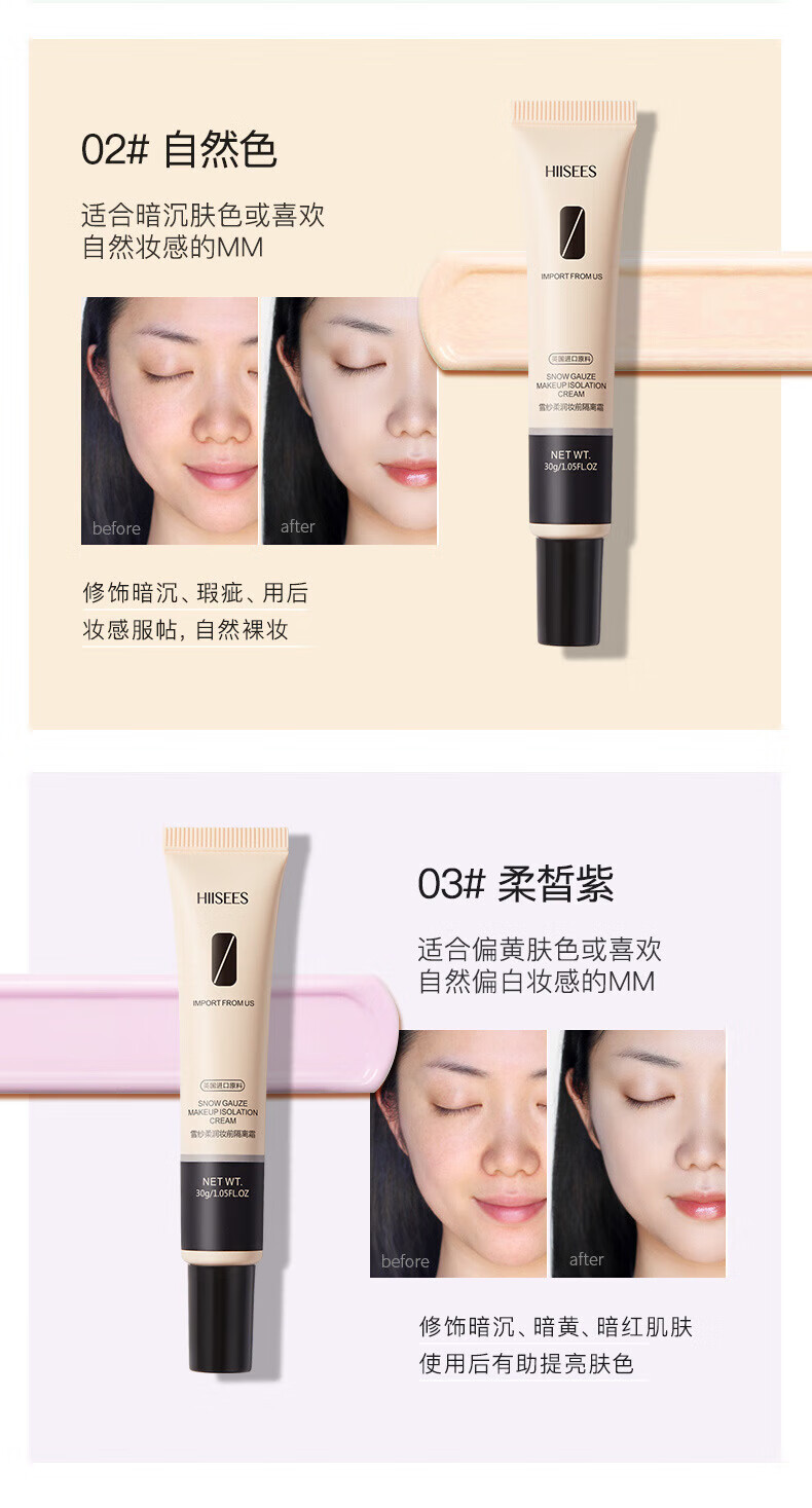 Hanse Snow Sha Ying Moisturizing Isolation Cream Primer Multi-effect Repair Oil Control Invisible Pores Brighten Skin Color Concealer Moisturizing Sensitive Skin Natural Color 2 Pack