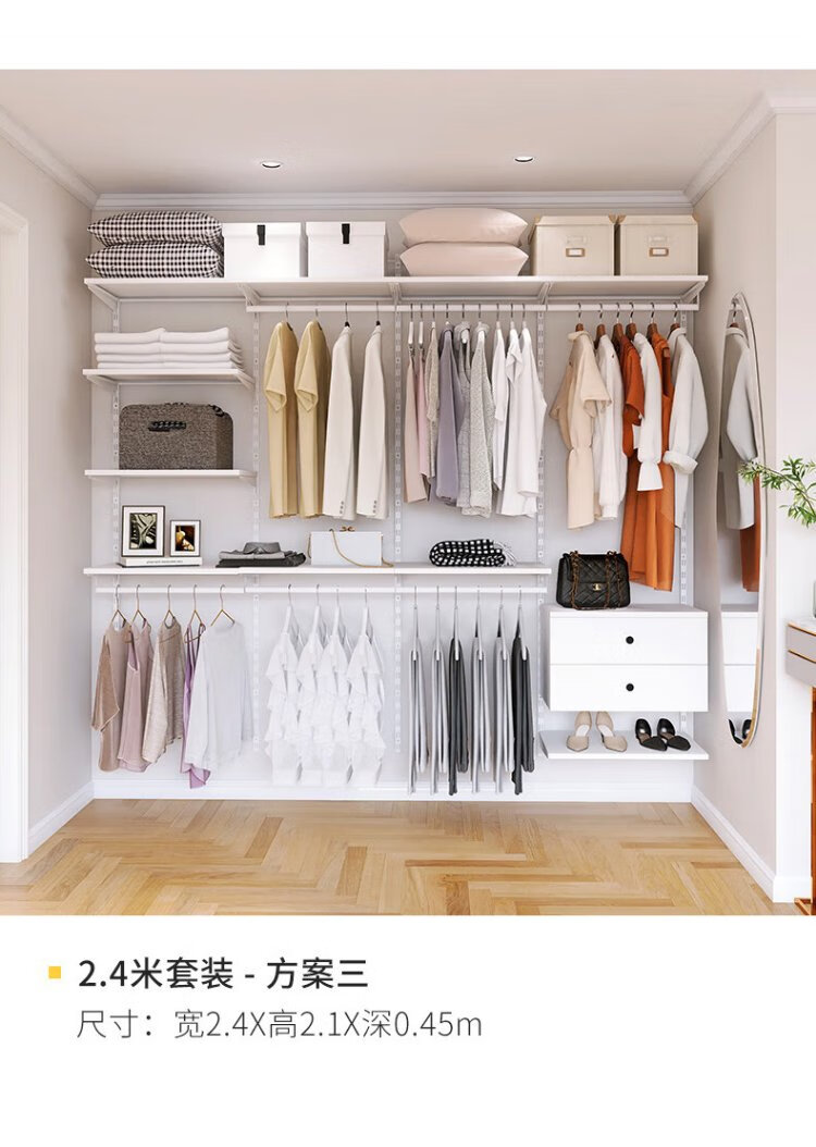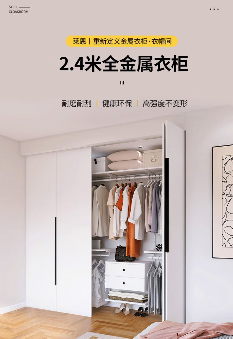 Metaslaine series 2.4m metal laminate wardrobe, cloakroom, bedroom storage room, formaldehyde-free wall wardrobe customization 2.4m metal wardrobe - plan 1 (installation included)