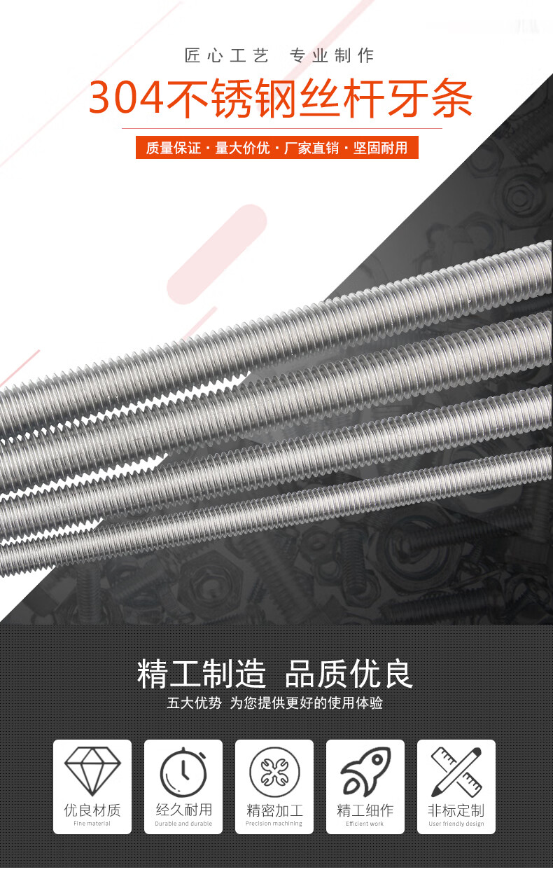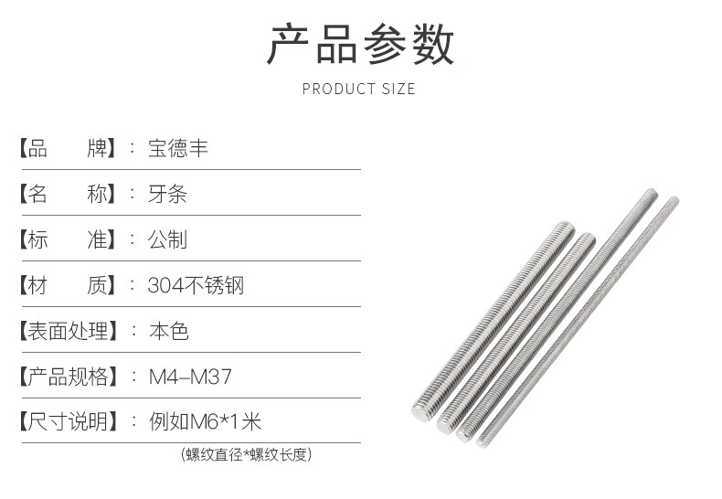 Baodefeng 201\/304 stainless steel thread screw 1 meter full thread thread screw ceiling screw M4M5M6M8M10 304 material-M24x3 meter (1 piece)