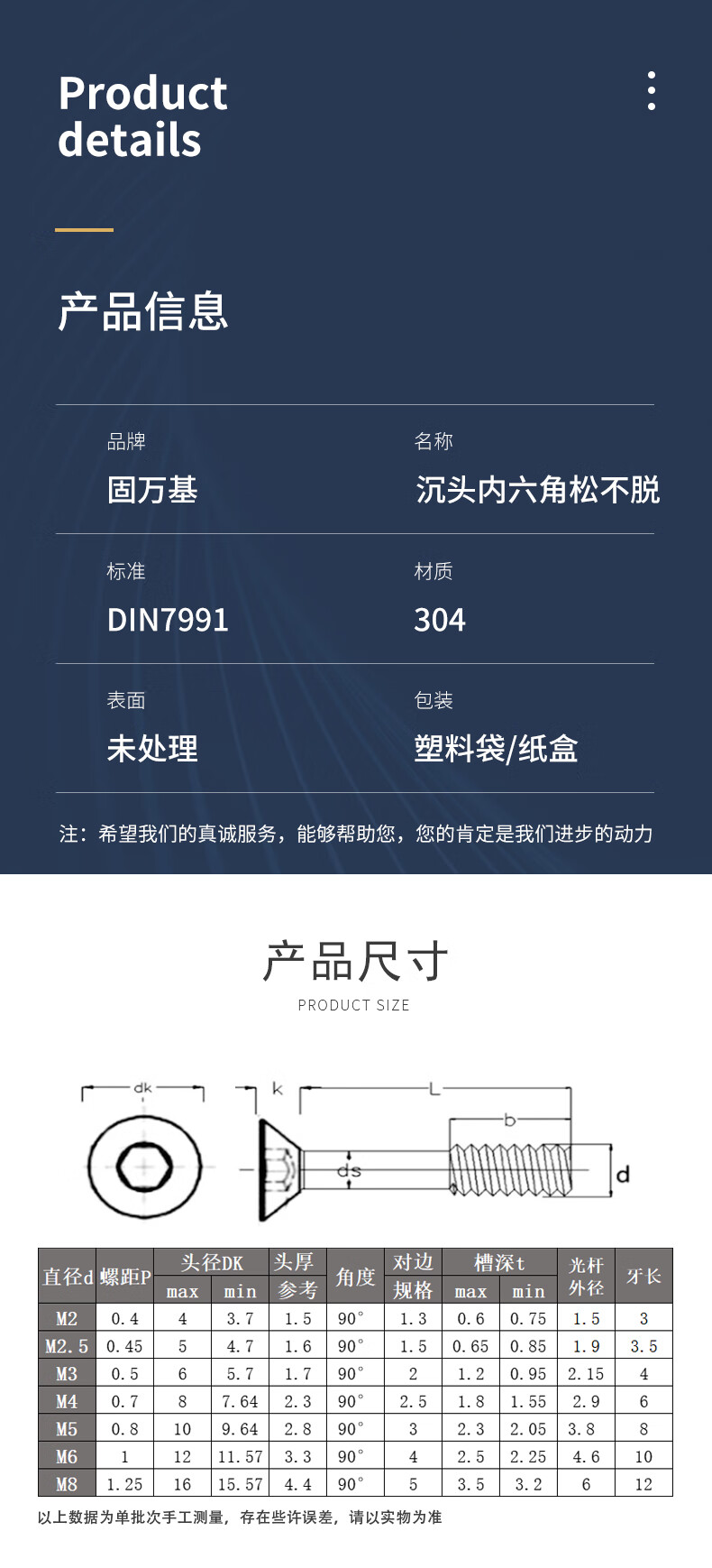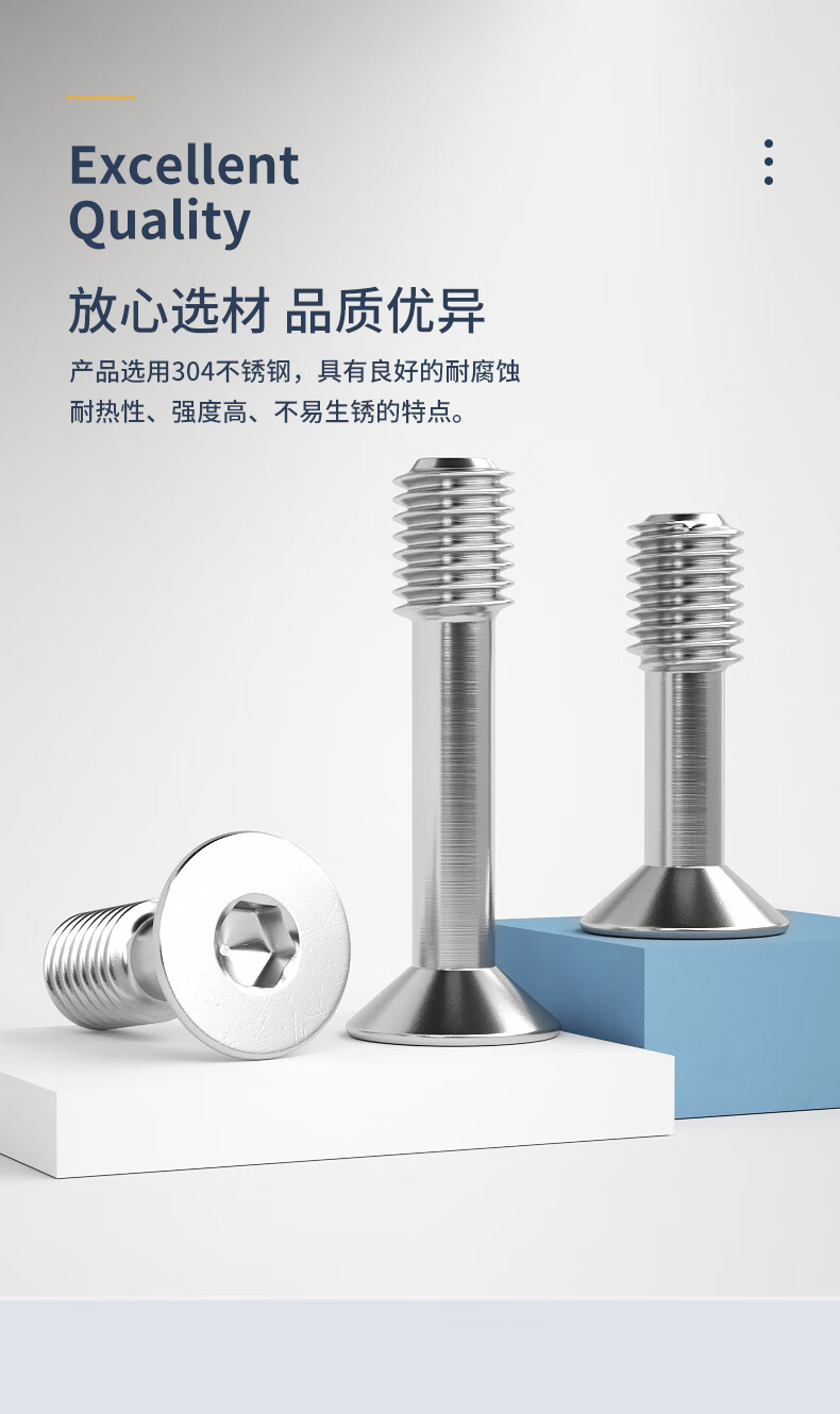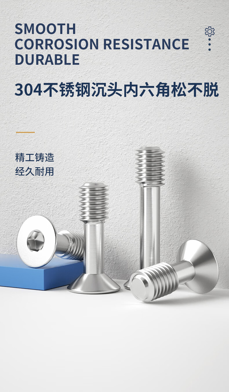 Guwanji 304 stainless steel countersunk head hexagonal loose screws, flat head, half-thread anti-loosening screws, large national standard M5x16 (5 pieces)
