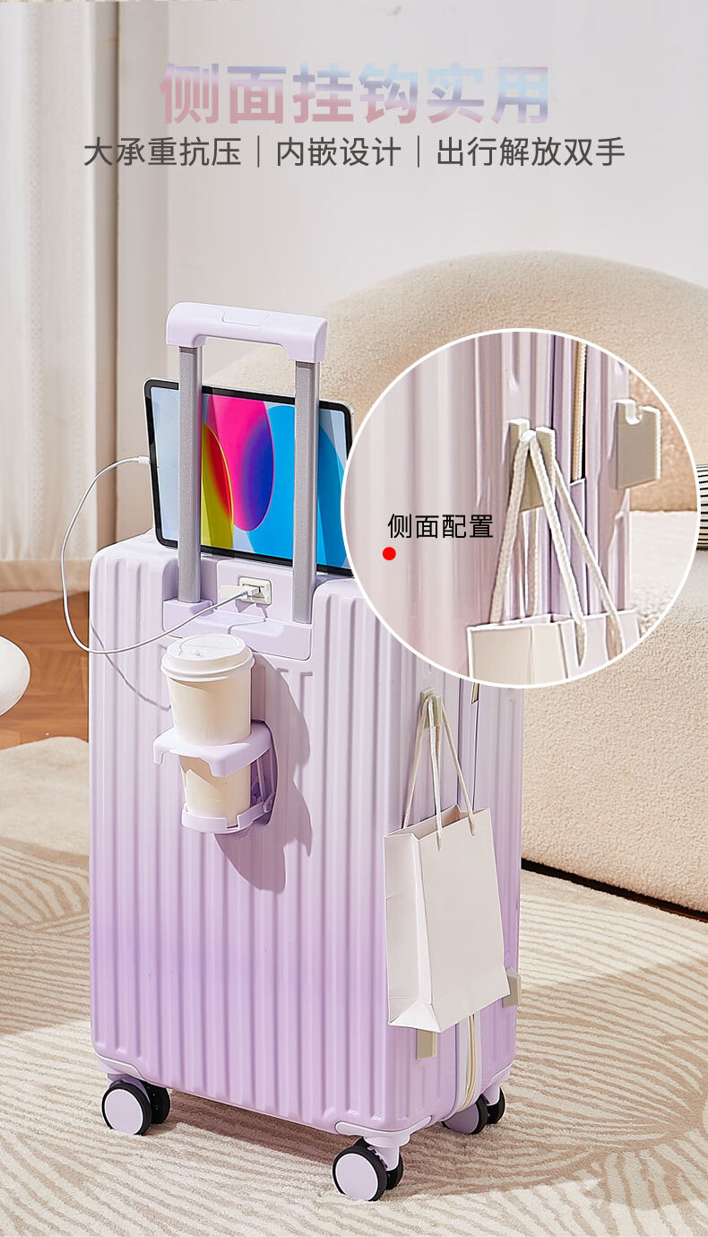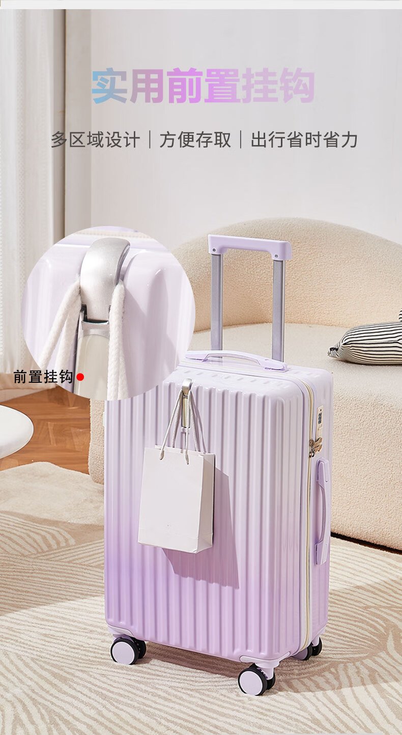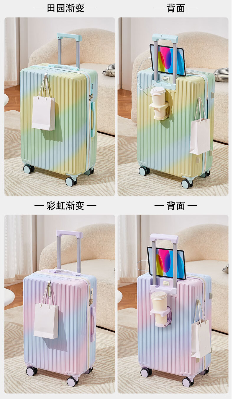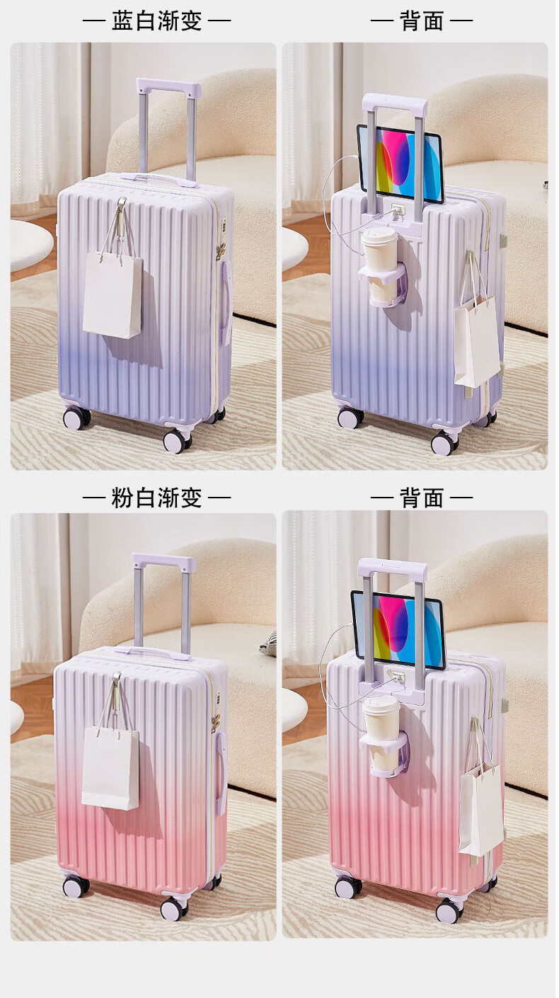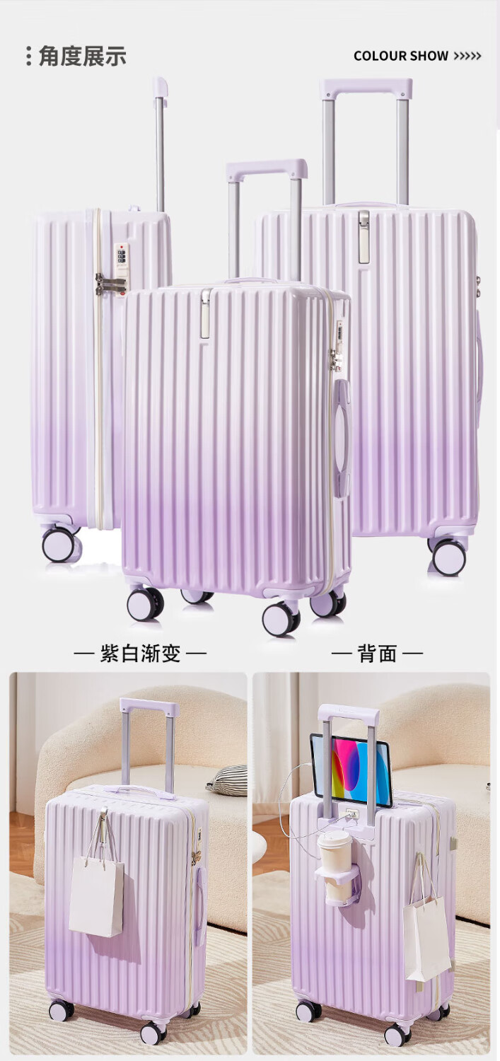 MCHNA KTCC Gradient Color Suitcase Women's Multifunctional Suitcase Universal Wheel Trolley Case Men's Durable Boarding Case Student Password Box Gradient Purple Charging Port + Cup Holder + Front Hook 20 Inch - Can Board