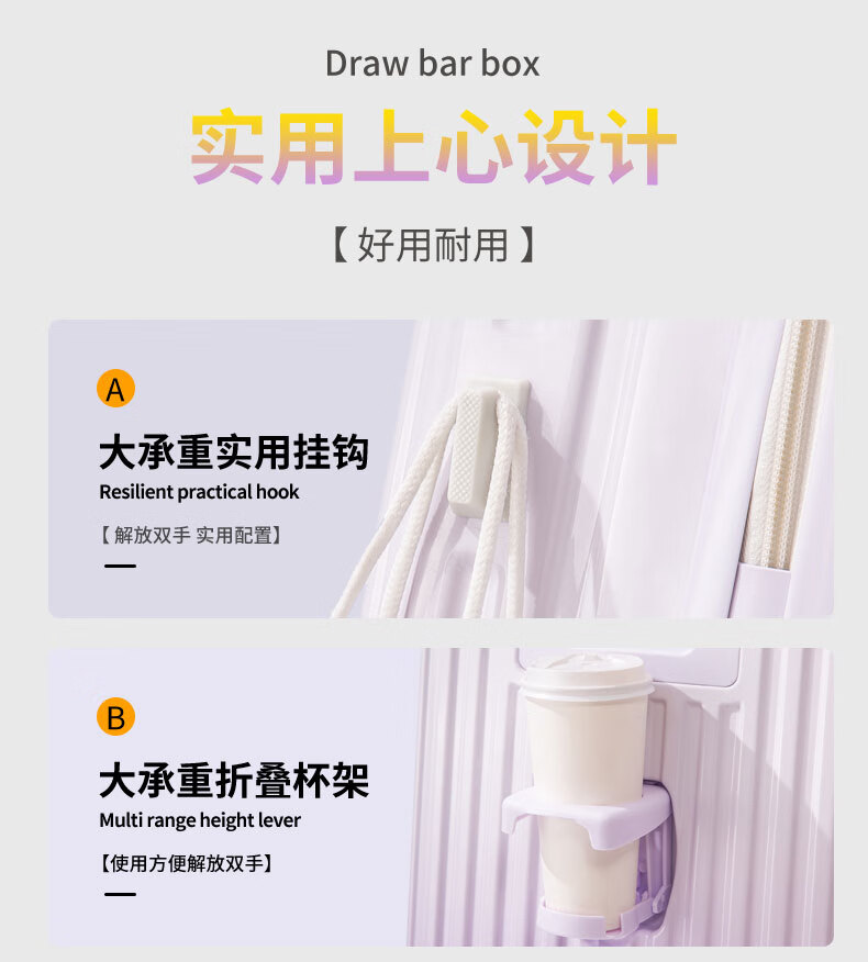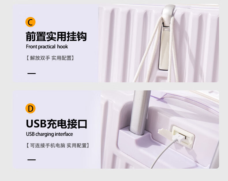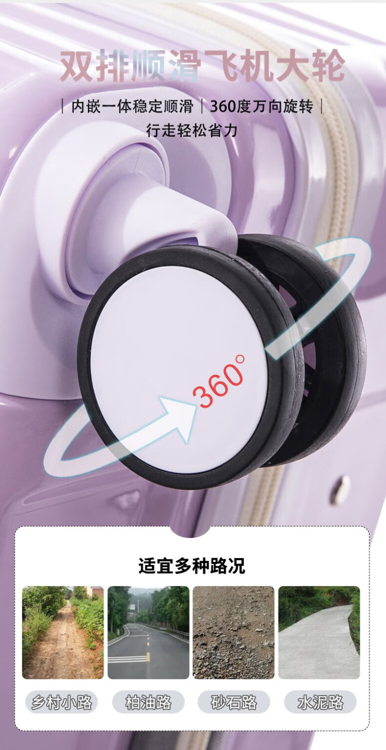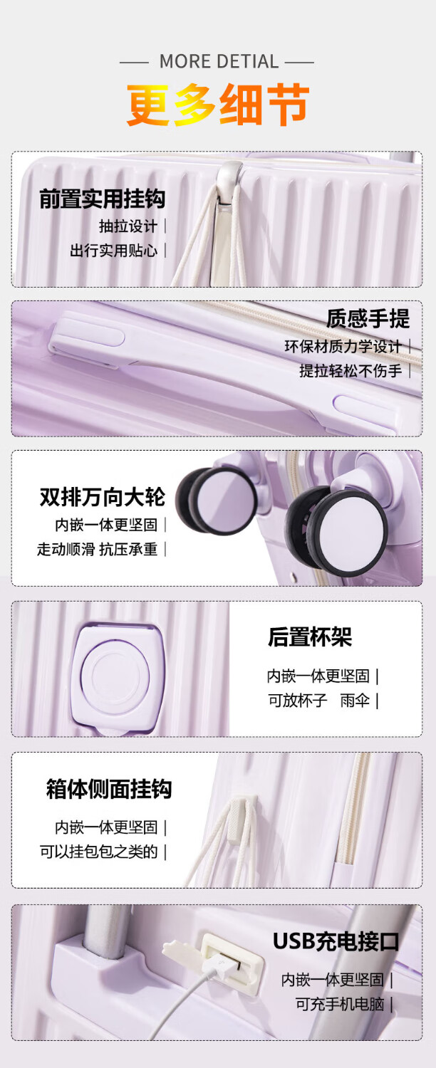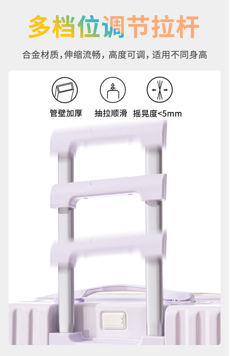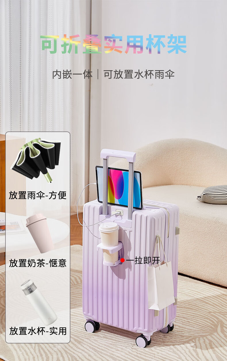 MCHNA KTCC Gradient Color Suitcase Women's Multifunctional Suitcase Universal Wheel Trolley Case Men's Durable Boarding Case Student Password Box Gradient Purple Charging Port + Cup Holder + Front Hook 20 Inch - Can Board