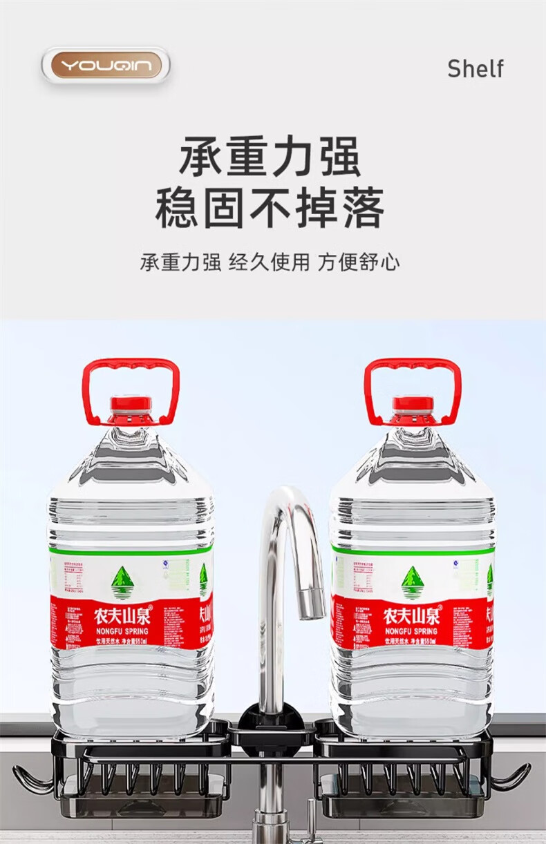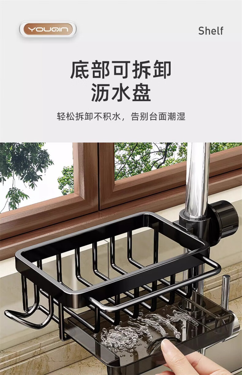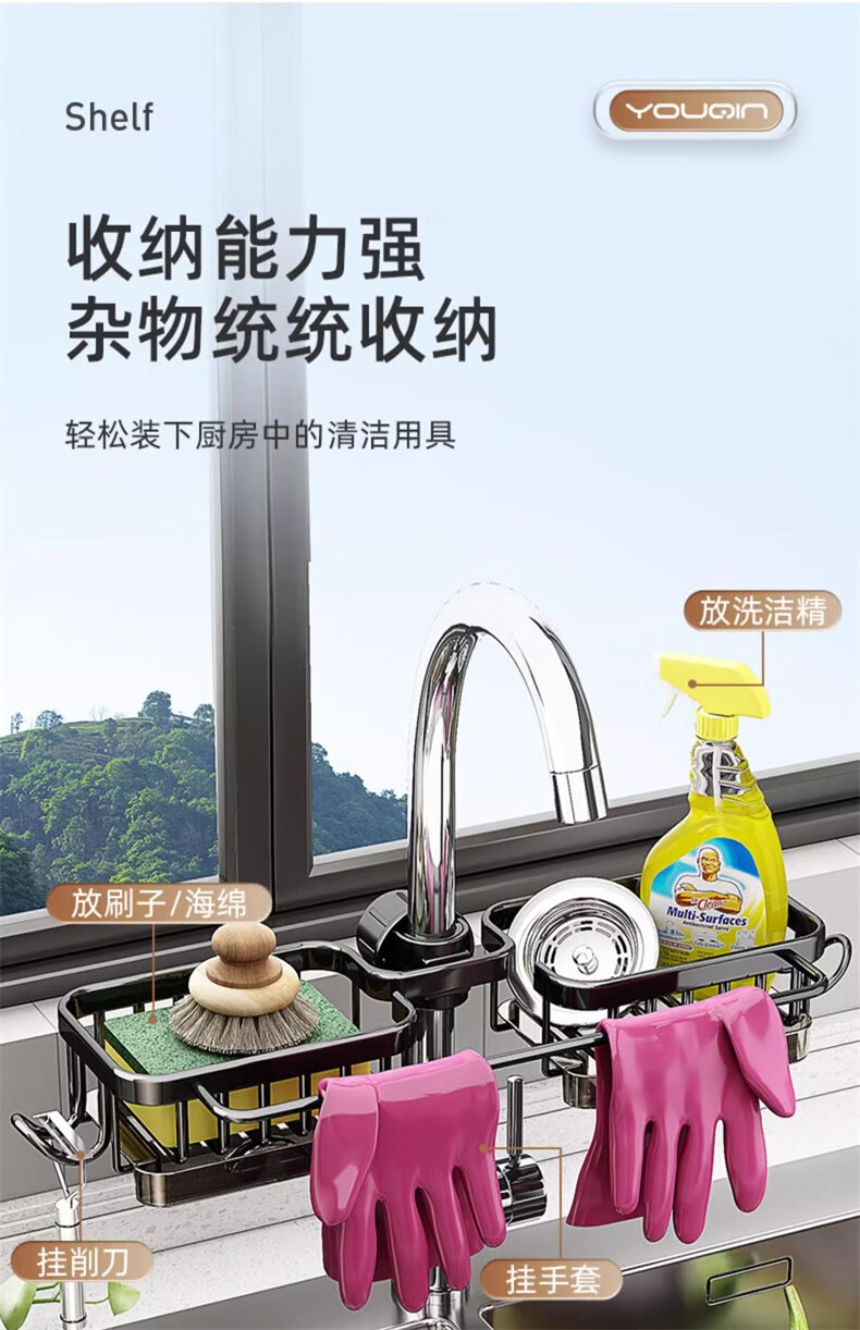 UQIN Kitchen Sink Faucet Towel Wipe Arrangement Dish Rack Dishwashing Sponge Wipe Drain Basket Multifunctional Storage Artifact Upgraded Gun Gray Left Side Rod Type - With Drain Tray