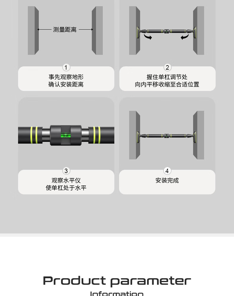ENTESI horizontal bar home indoor pull-up device home children's hanging ring punch-free door single bar stretching fitness thickened horizontal bar installation distance 70-90cm