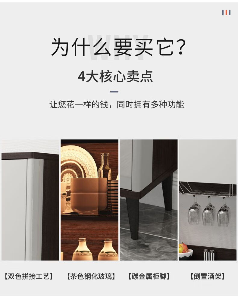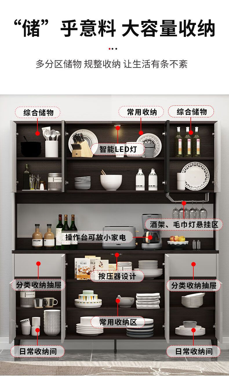 ROEHUEY Ruhuey light luxury Italian sideboard against the wall one-piece multi-functional restaurant wine cabinet living room tea cabinet kitchen cupboard storage cabinet Jixiang 1 meter + slate countertop delivery and installation