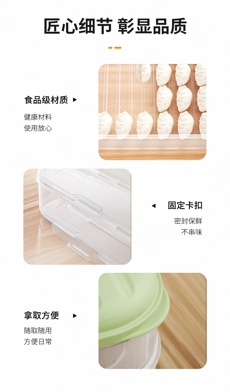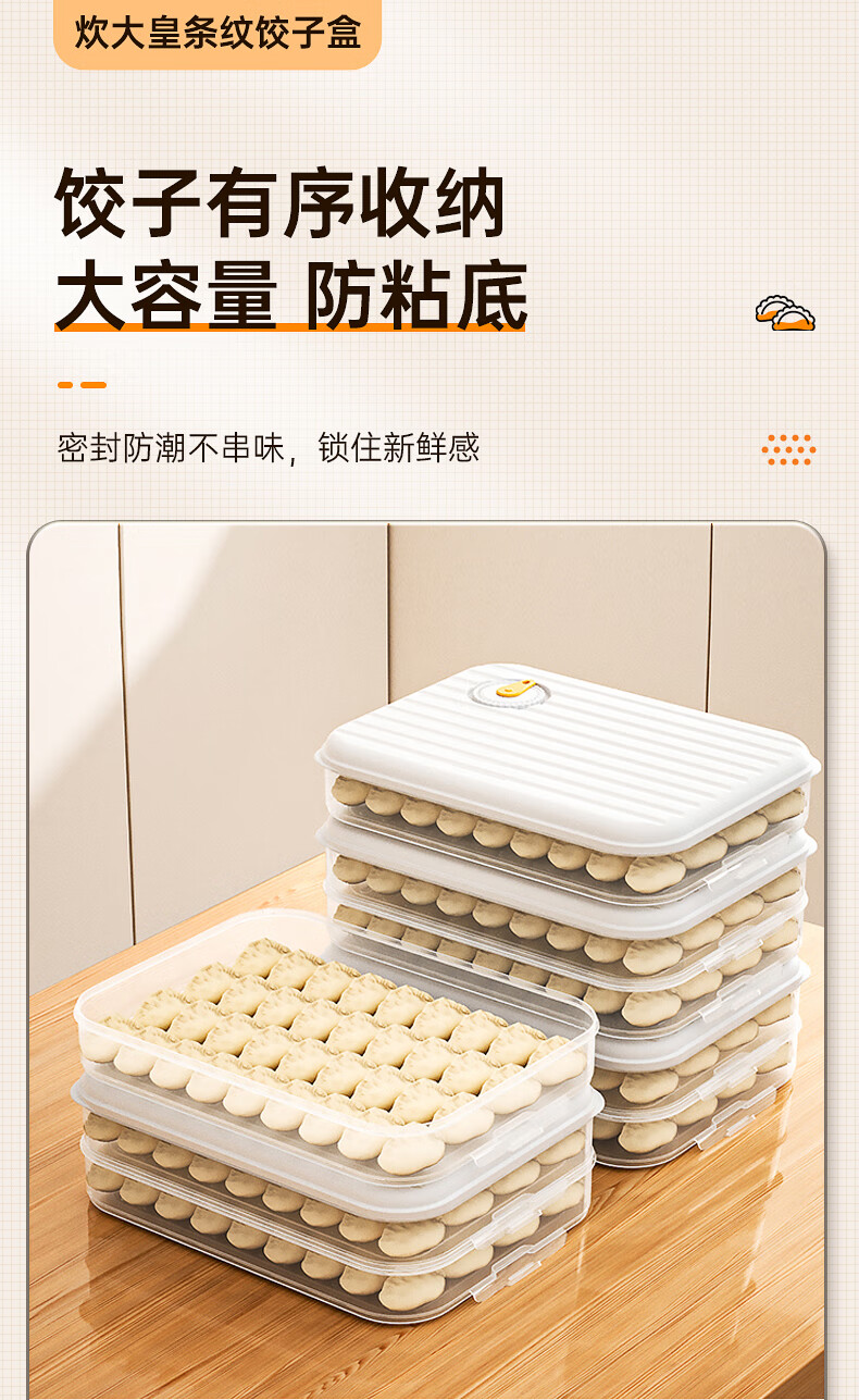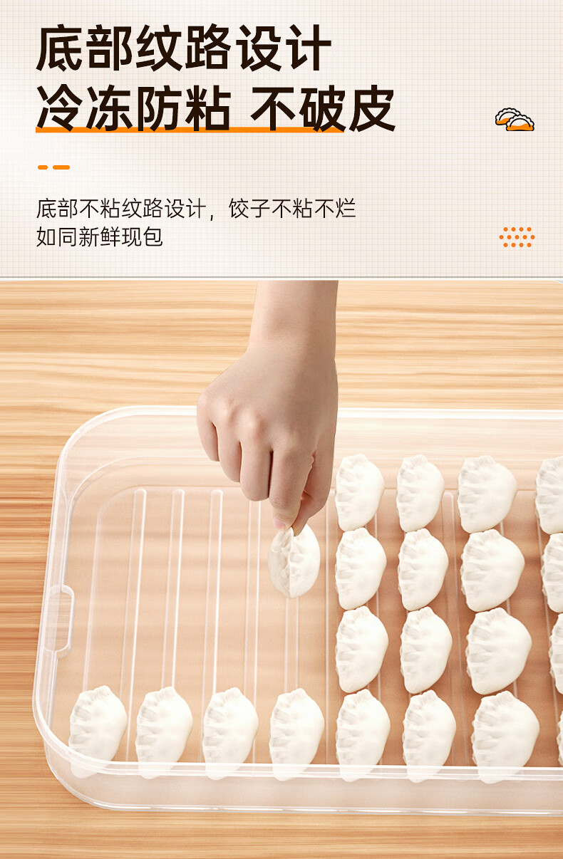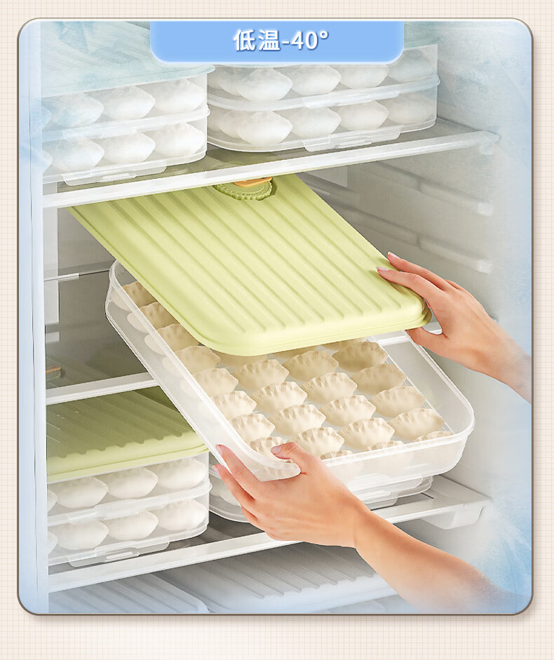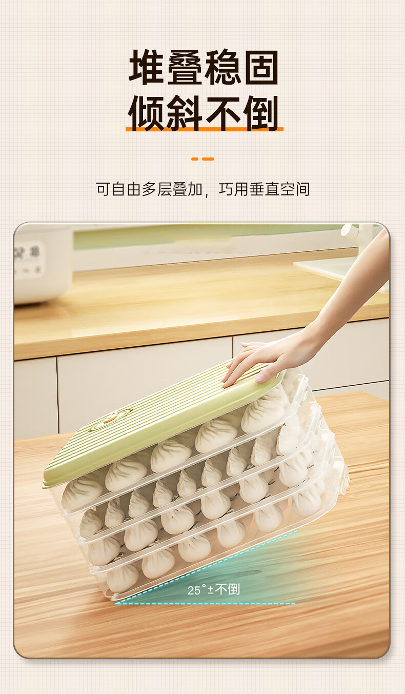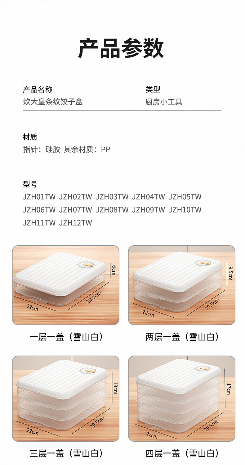 Multifunctional dumpling box, frozen dumplings, wonton blunt box, refrigerator fresh-keeping box, cold storage box with lid, large capacity storage box, striped dumpling box with three layers and one lid (Snow Mountain White)