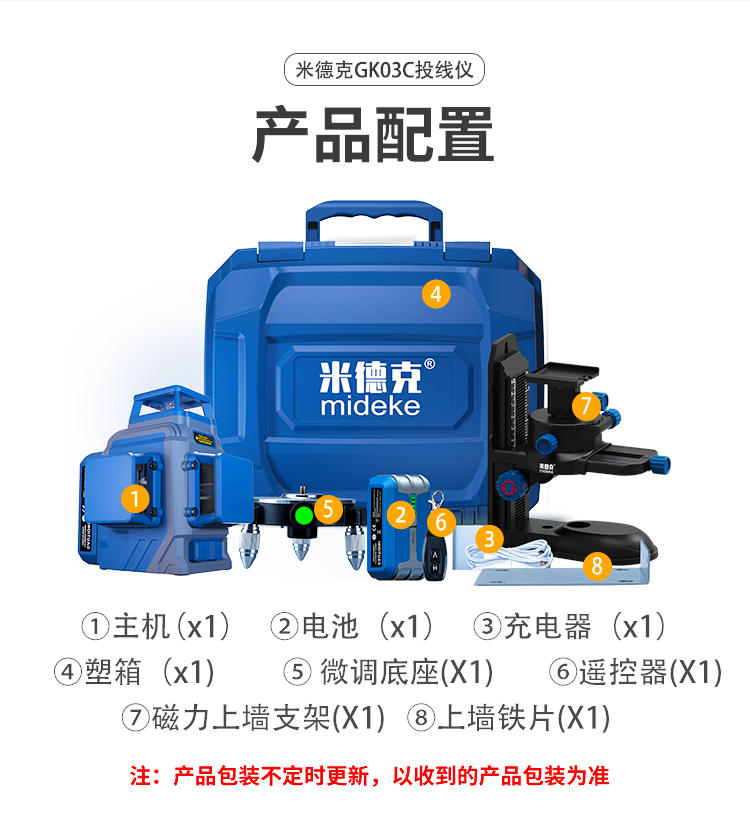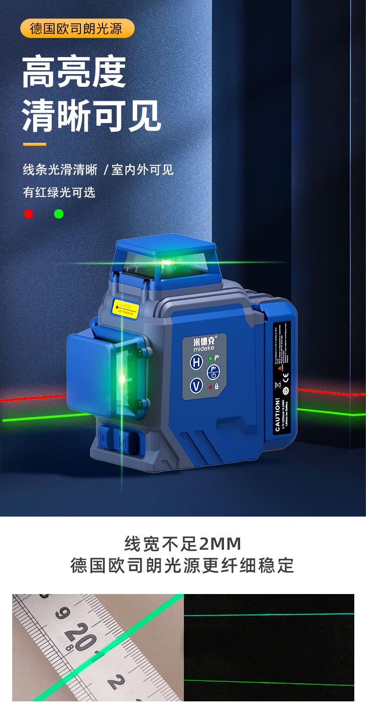 Mideke 12-line + 2-line combination level high-precision strong light thin-line infrared laser wall-mounting instrument and floor-mounting instrument 12-line green + 2-line red 5200 single + 9000 single