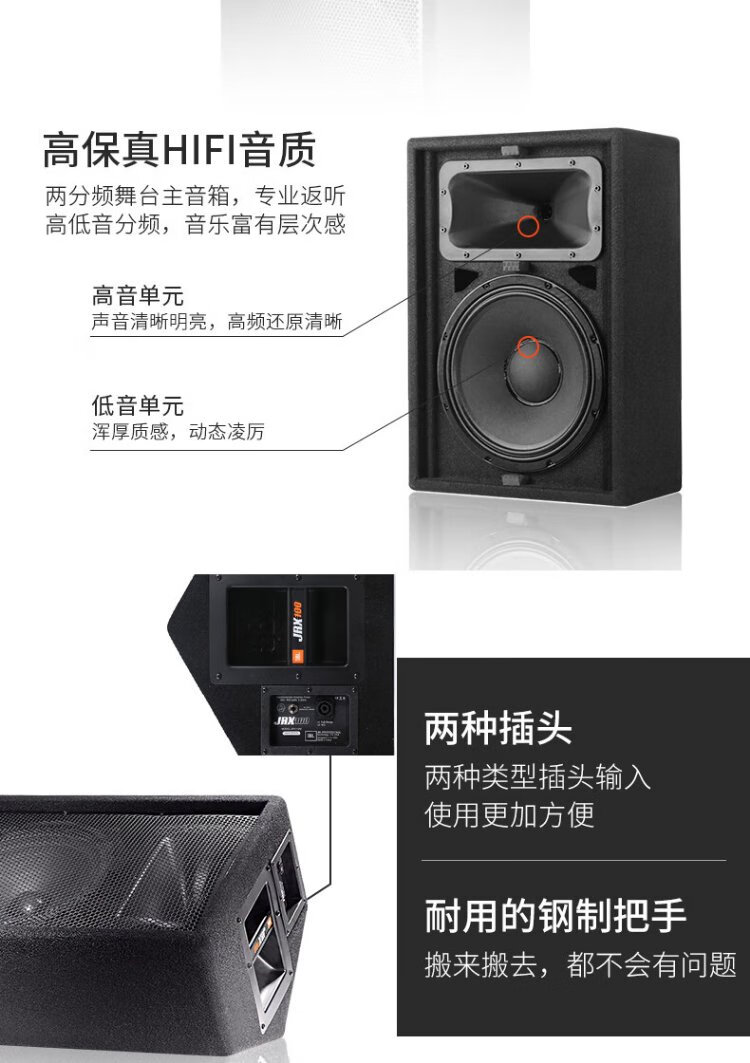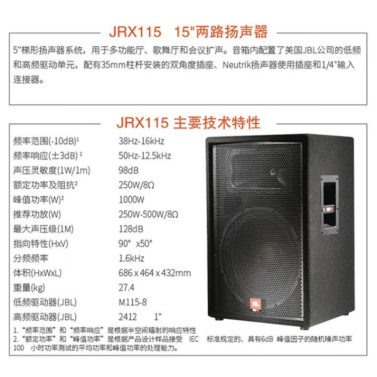 JBL dual 15-inch high-power commercial conference audio set, professional outdoor stage performance speakers, dance training, home KTV audio, dual 15-inch speakers*2+Crown amplifier+JBL microphone+mixer