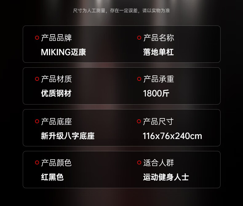 Maikang horizontal bar home pull-up device indoor single parallel bar multi-functional comprehensive training device fitness equipment MK090 red and black thickened square tube/adjustable 2.4 meters/double pole patent