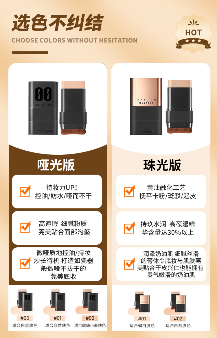 Chao Sheng Ya 22 Chao Sheng Ya Foundation Stick Chosungah Concealer Stick Flawless Eraser Double-ended Cream Skin Brightening Skin Color Korea Water Light No. 1 Suitable for Dry, White + Yellow Skin