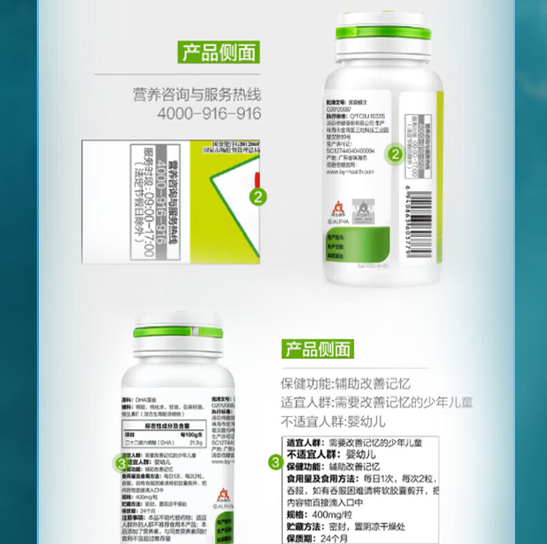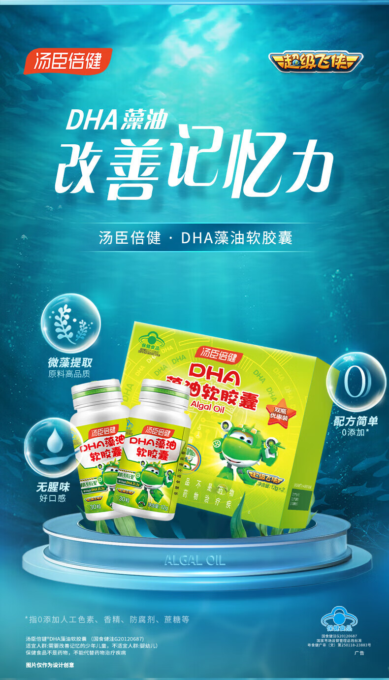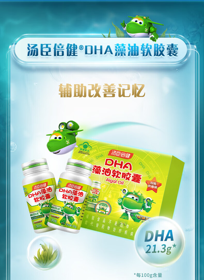 Tomson By-Health DHA Algae Oil Soft Capsules DHA for teenagers, children, students and high school students to help improve memory (a total of 120 capsules in a gift box) 60 capsules * 2 boxes (valid until March 27