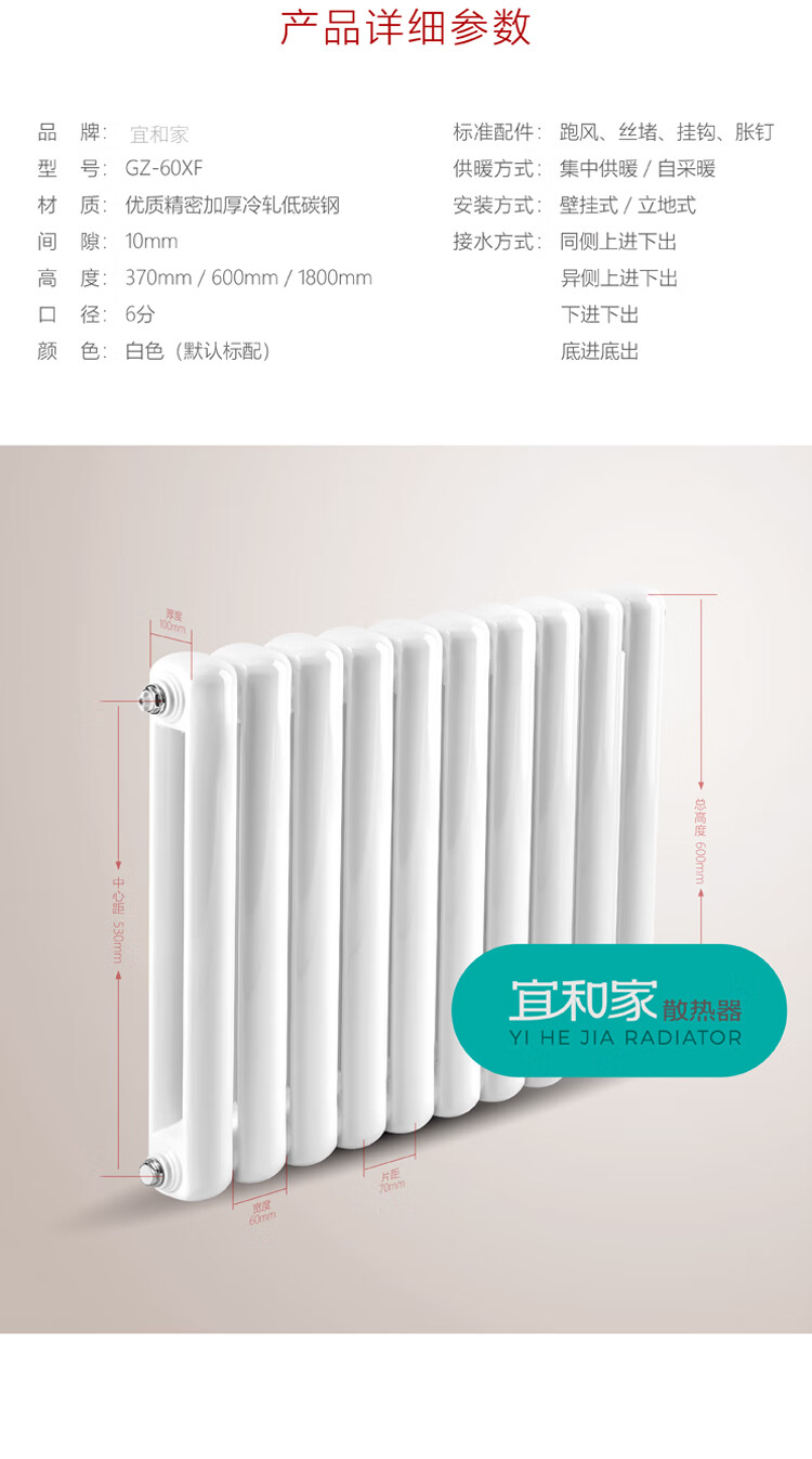Yihejia radiator wall-mounted household water heating composite radiator safe and durable steel 60 radius-600 safe and durable 600mm*1 column