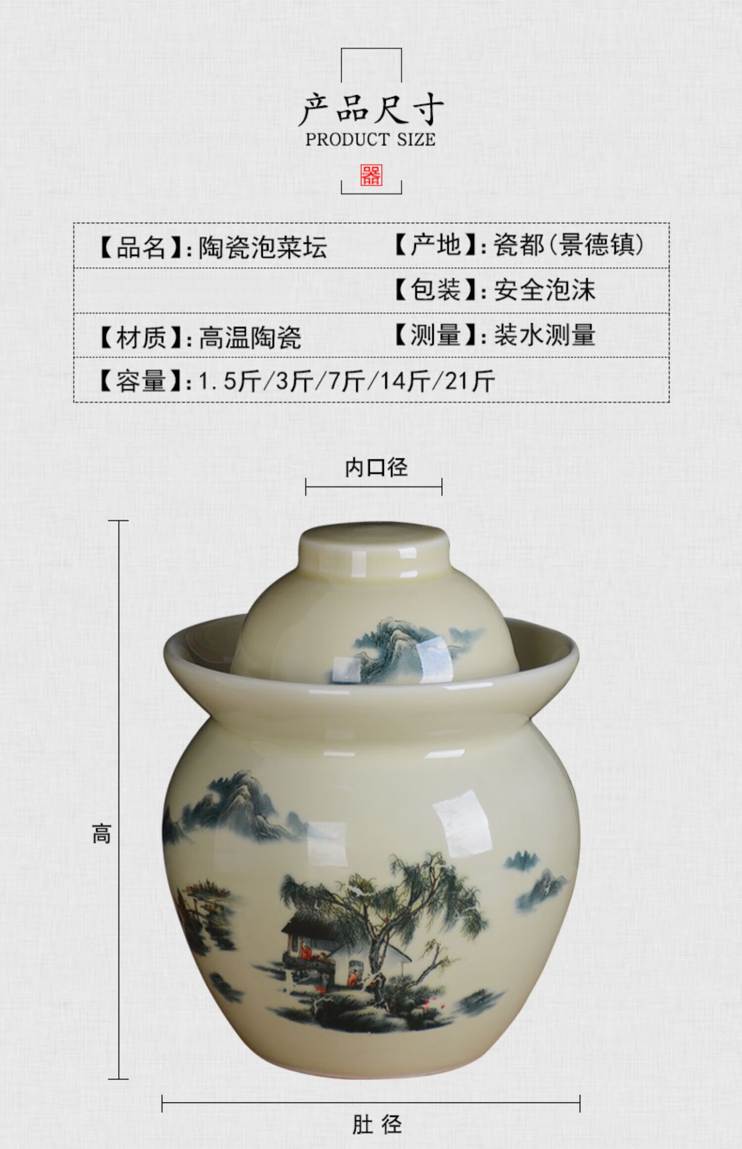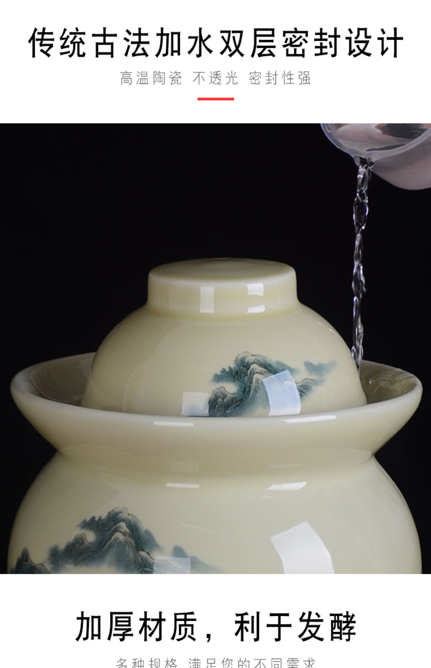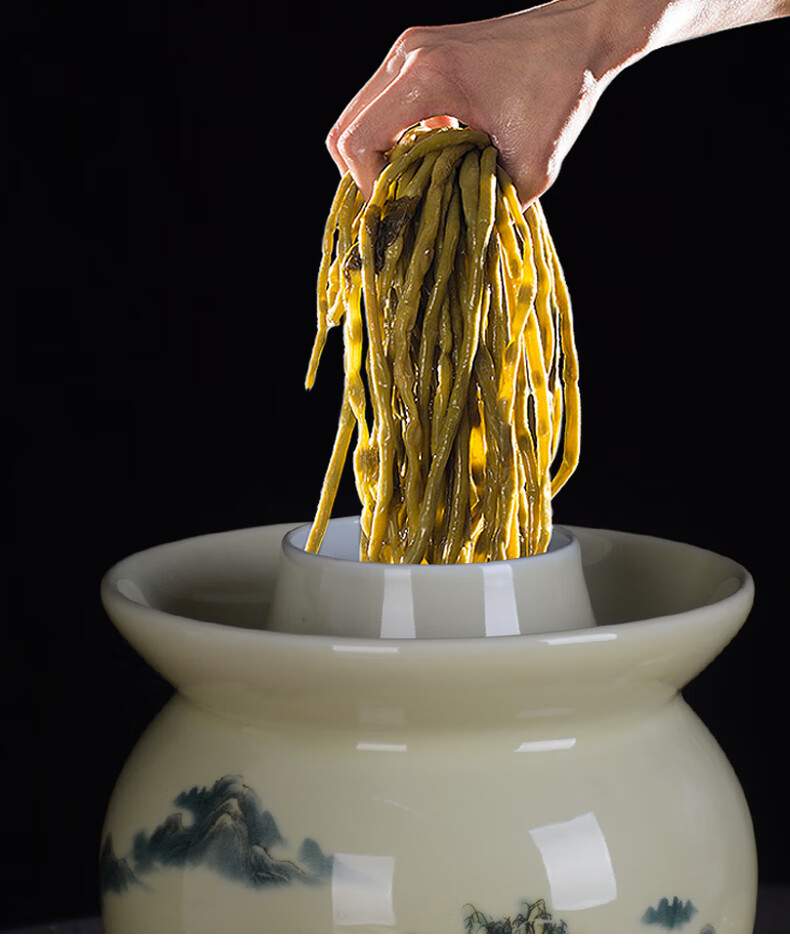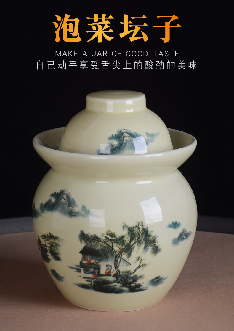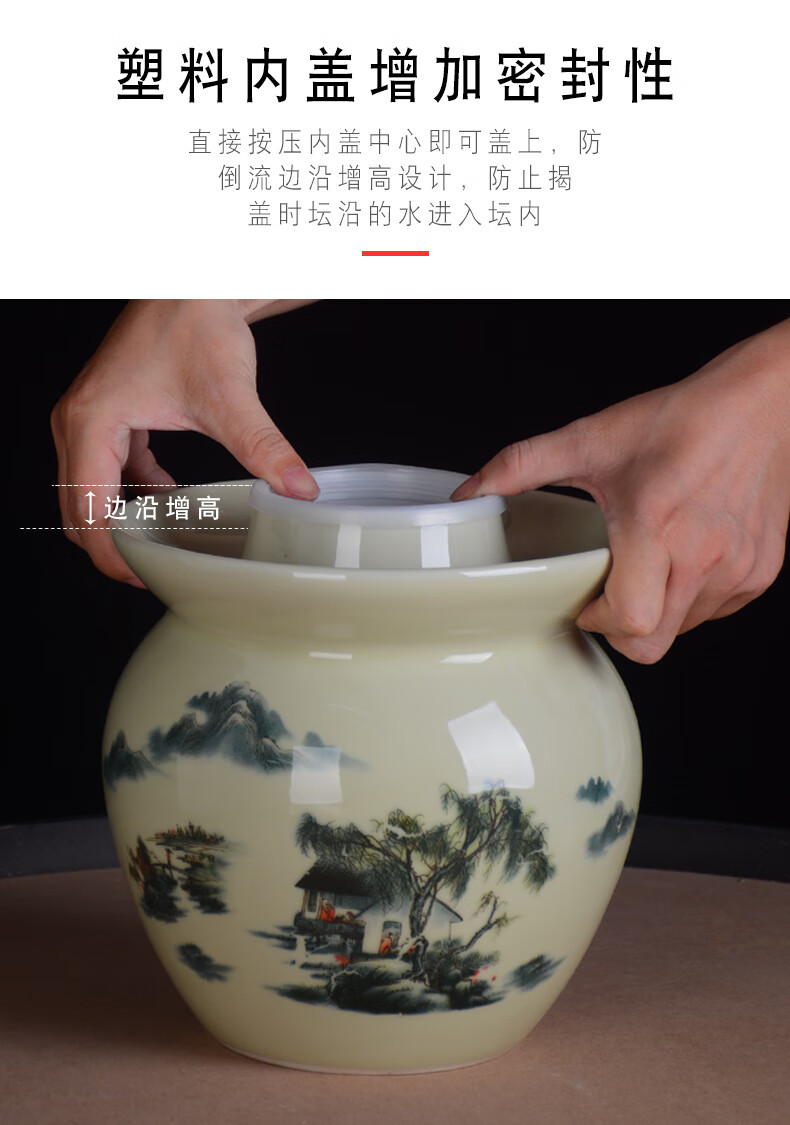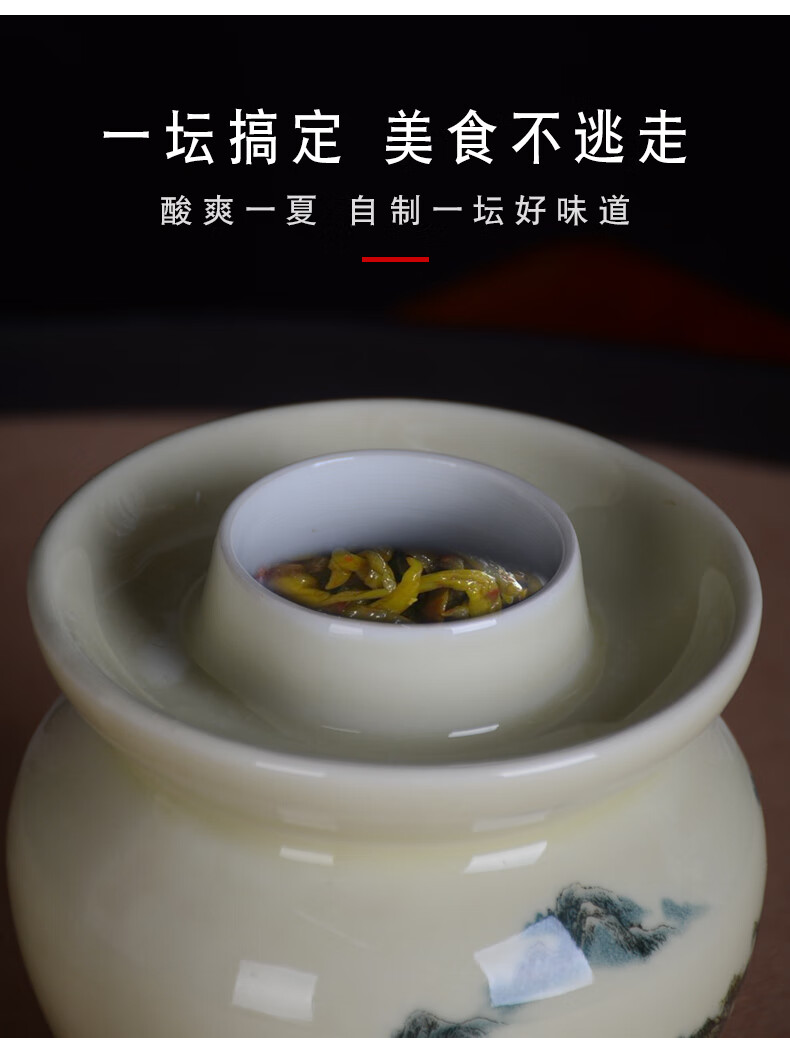 ZSR Jingdezhen ceramic pickle jar household old-fashioned sealed pickled cabbage salted duck egg pickling jar thickened double-lid storage jar 1ml 1.5 catties Huangshan water pickle jar