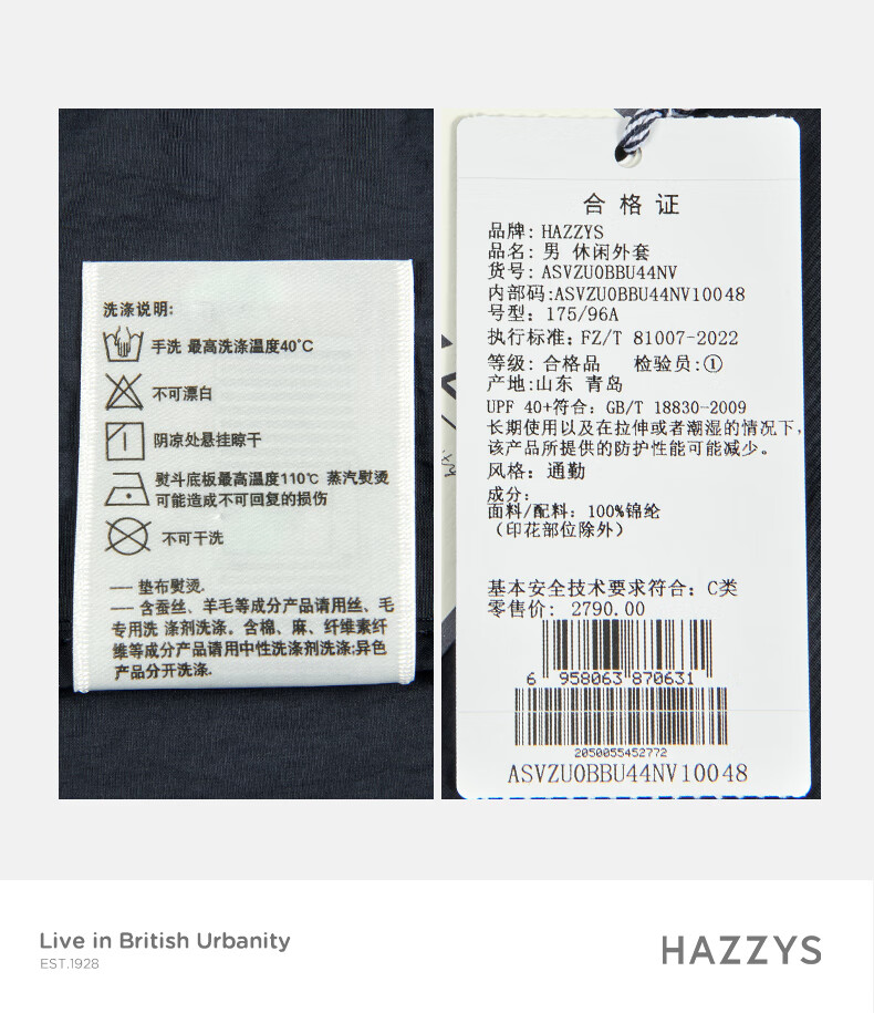 HAZZYS Men's Summer Men's Jacket Outdoor Sun Protection Casual Jacket Men ASVZU0BBU44 Navy Blue NV 2XL (185/104A 52)