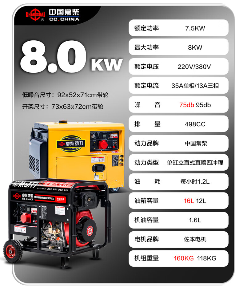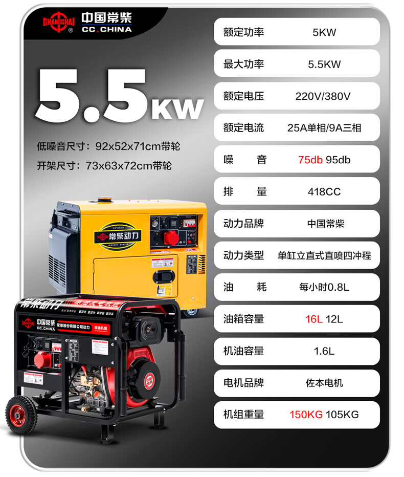 Qiaobolai diesel generator set 5kW 6/8/10/12KW single three-phase 220V/380V high configuration 3.5KW220V open frame electric start