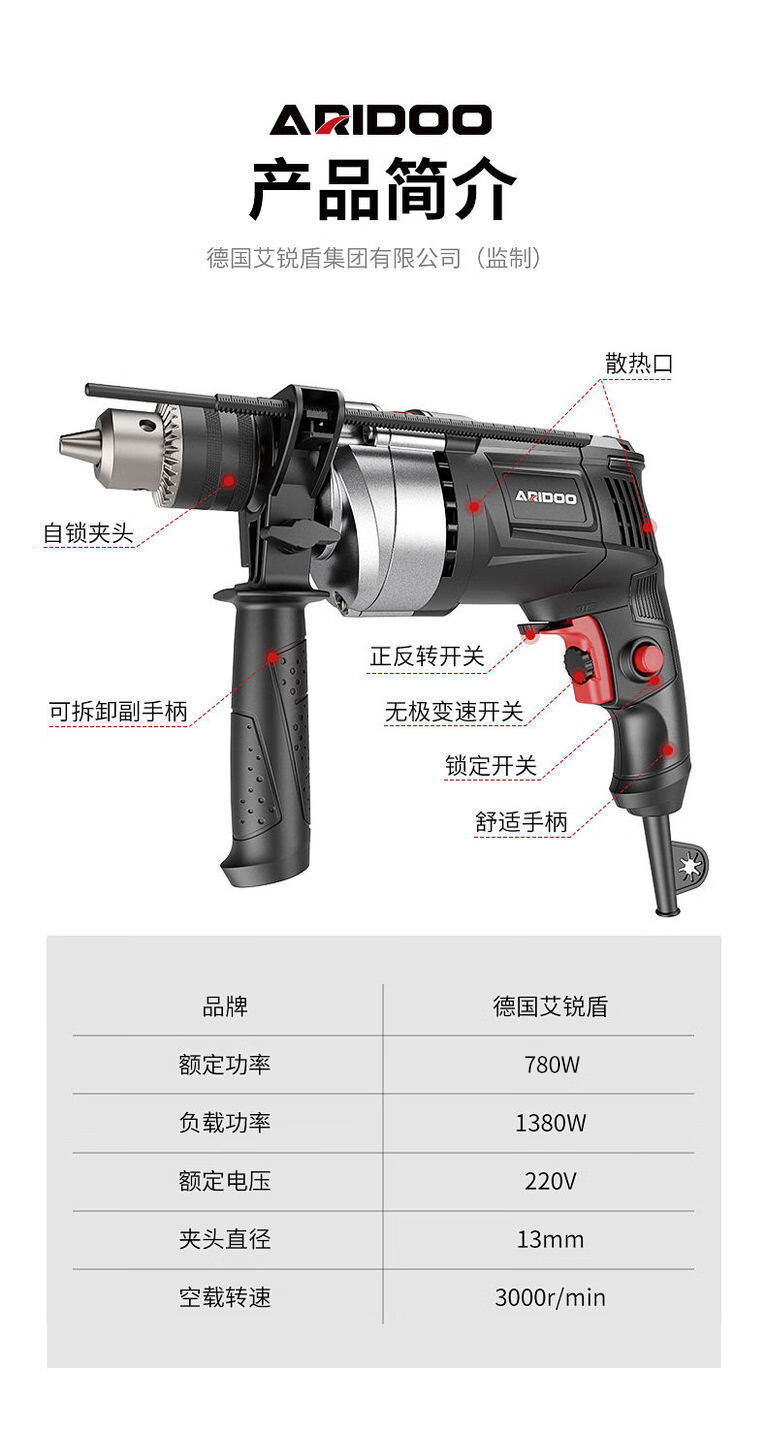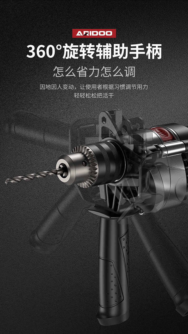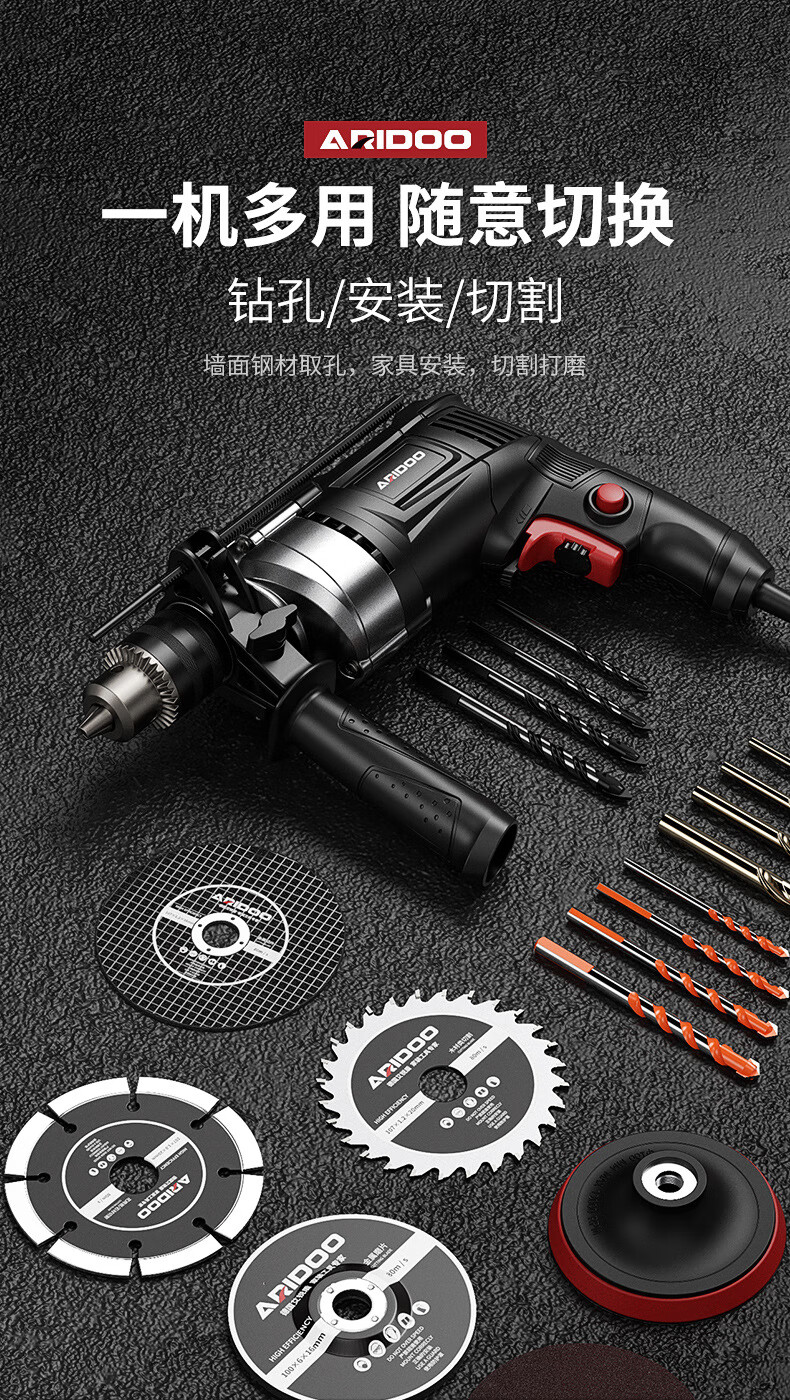 Ai Ruidun Impact Drill Household 220V Corded Multi-Function Hand Electric Drill Drilling Electric Screwdriver Dual-Purpose Screwdriver Industrial Model + Drill Bit Cutting and Grinding Set - Plastic Box + 2 Drill Bits