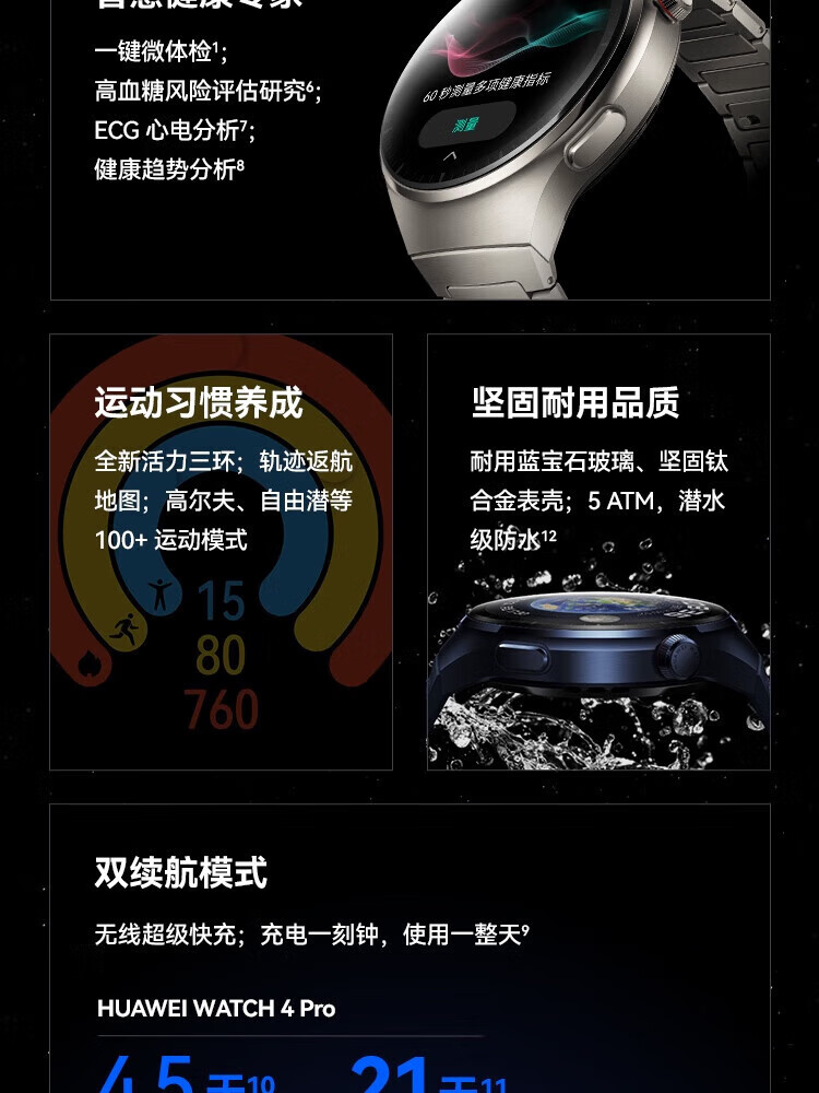 Huawei (HUAWEI) smart watch Huawei WATCH 4 Pro sports eSIM independent call blood oxygen blood sugar waterproof men's watch Watch4Pro Mars Titanium 48mm