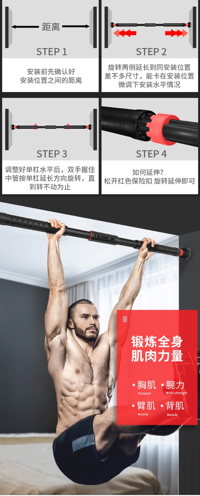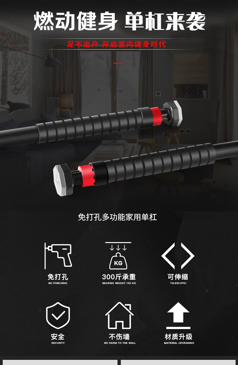 Duweck door-mounted horizontal bar indoor punch-free home pull-up equipment fitness equipment students high school entrance examination sports supplies recommended width 65-100cm mechanical model