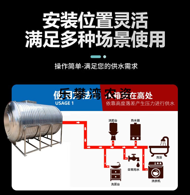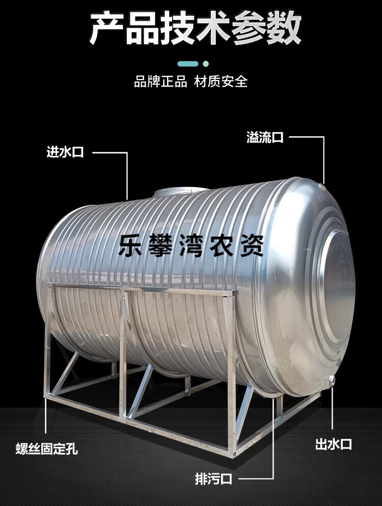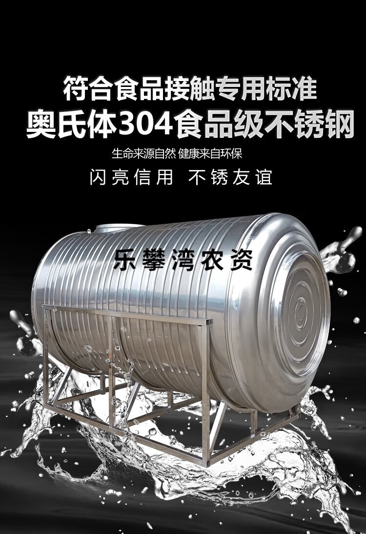 Short cloud 304 stainless steel water tank horizontal water storage tank water tower home flat thickened solar roof kitchen water storage bucket 0.75 ton extra thick vertical water tank with shelf