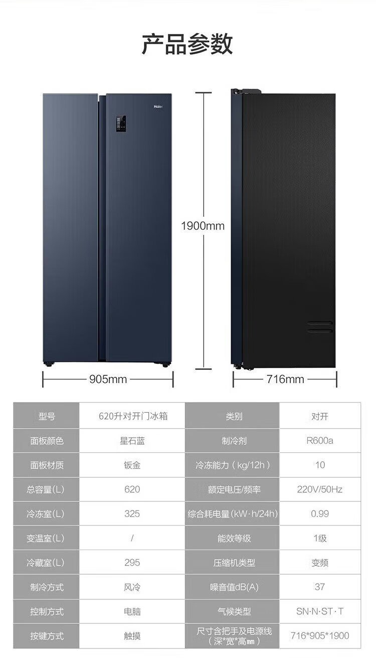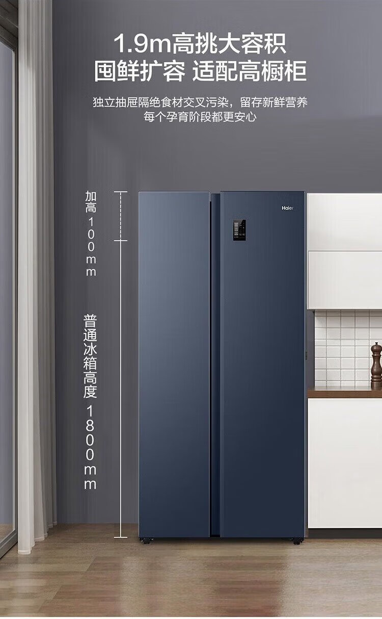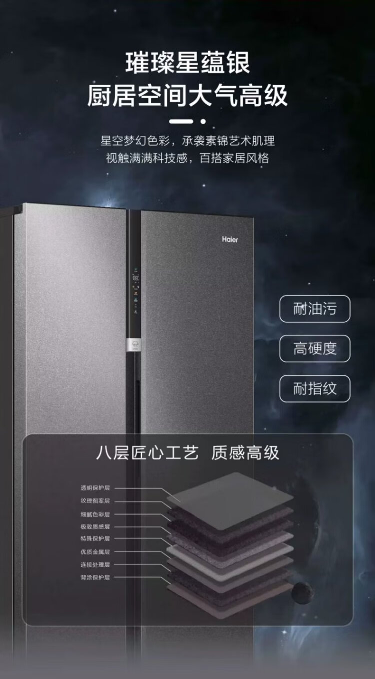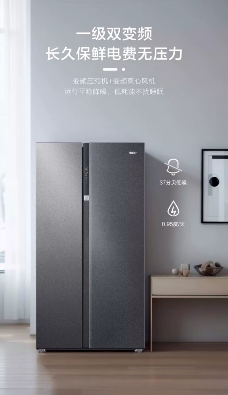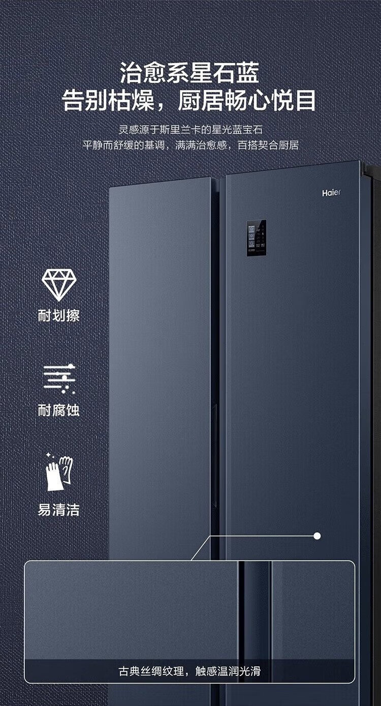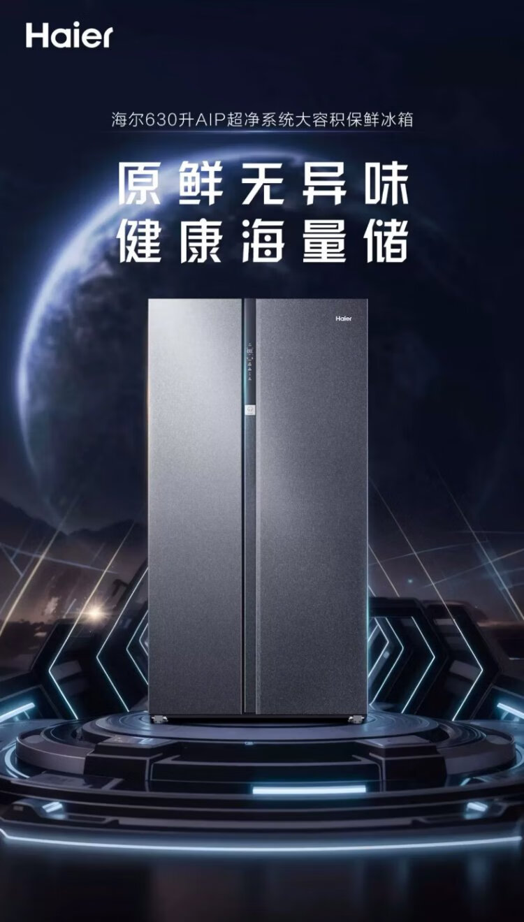 Haier refrigerator 620/630 liter double door air-cooled frost-free first-class energy efficiency dual frequency conversion black gold purification large freezer space slim home large capacity power-saving smart refrigerator 630 liter Xingyun Silver-AIP ultra-clean system oxygen barrier dry and wet storage