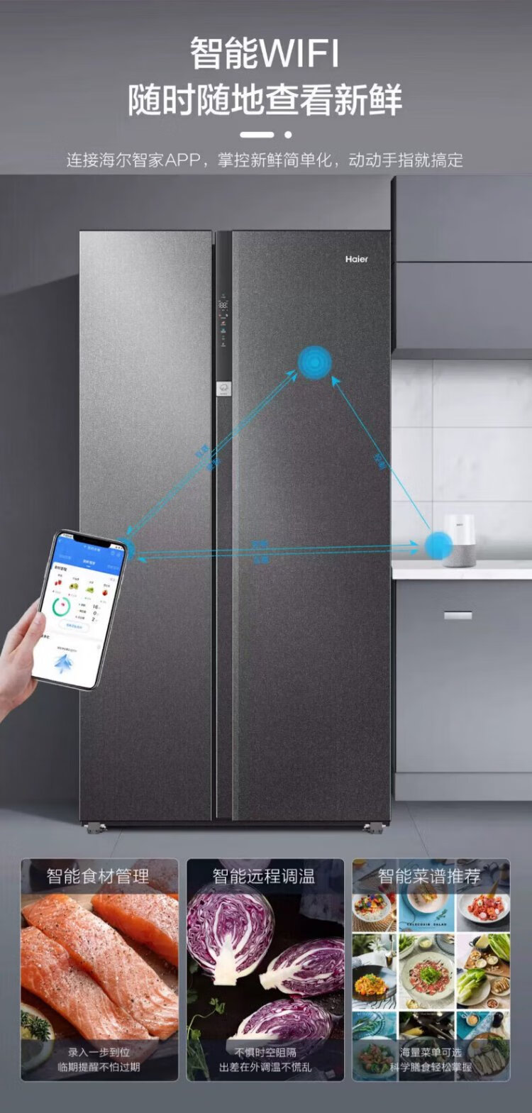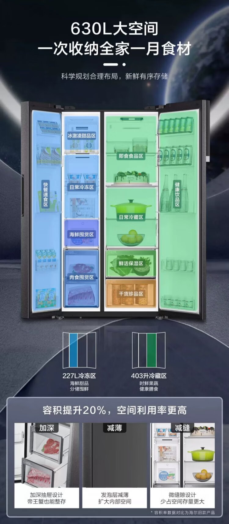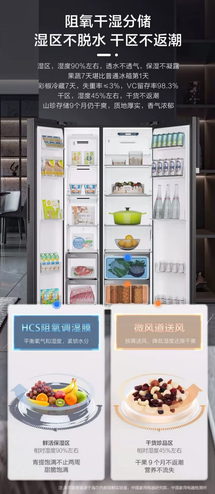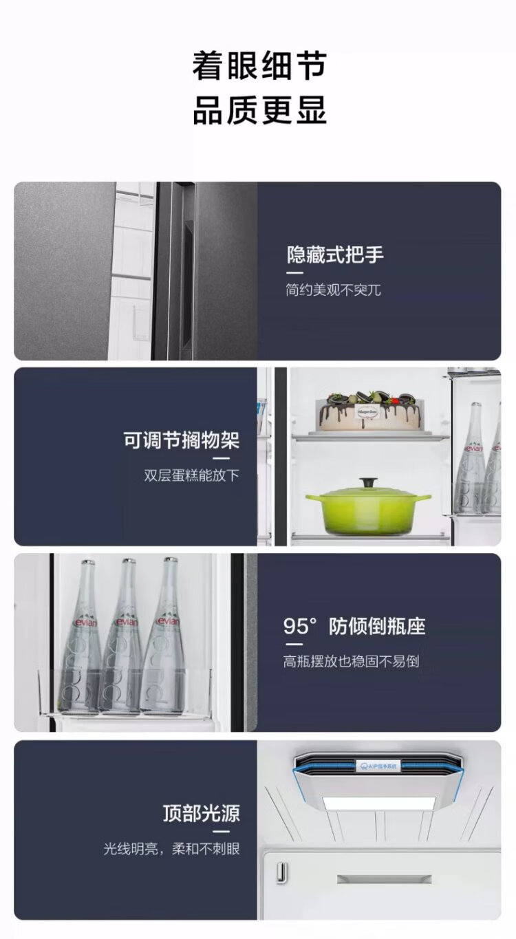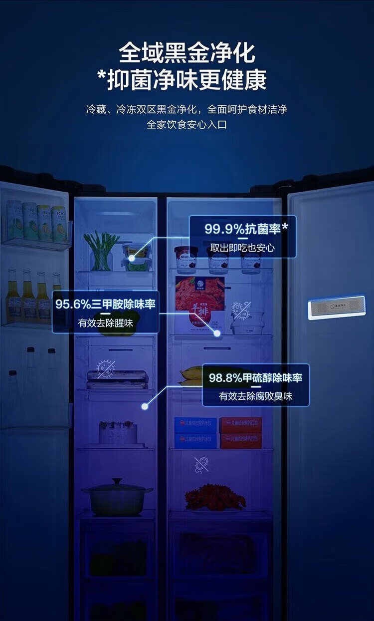 Haier refrigerator 620/630 liter double door air-cooled frost-free first-class energy efficiency dual frequency conversion black gold purification large freezer space slim home large capacity power-saving smart refrigerator 630 liter Xingyun Silver-AIP ultra-clean system oxygen barrier dry and wet storage