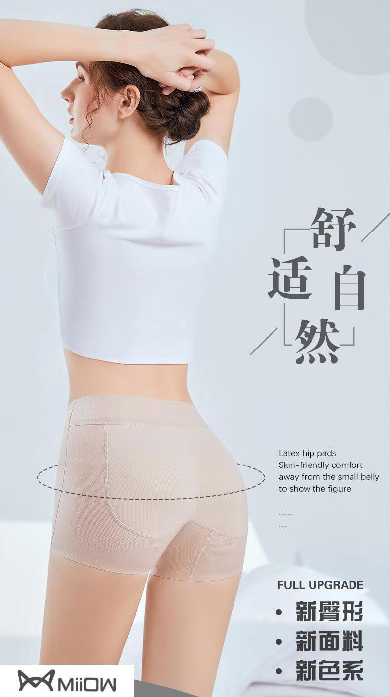 MiiOW Latex Fake Butt Pad Butt Lifting Underwear for Women Seamless Natural Style Peach Buttocks Tummy Control, Buttocks Sink and Buttocks Enlargement Artifact Skin Color - Thin S