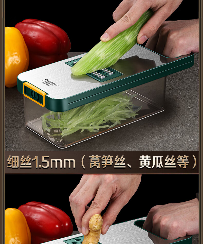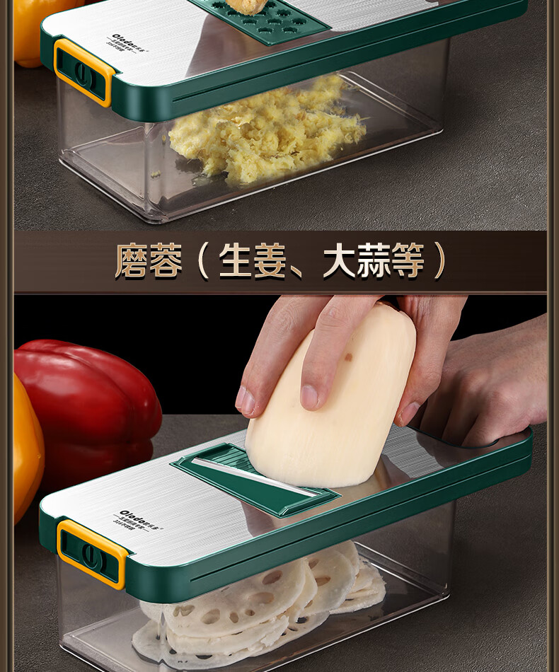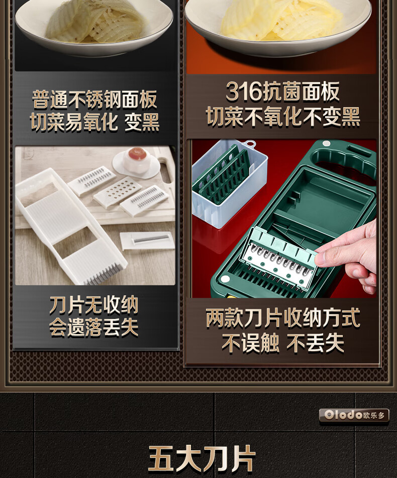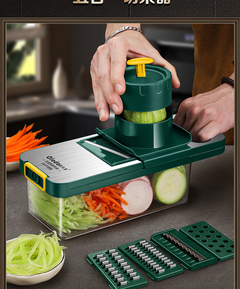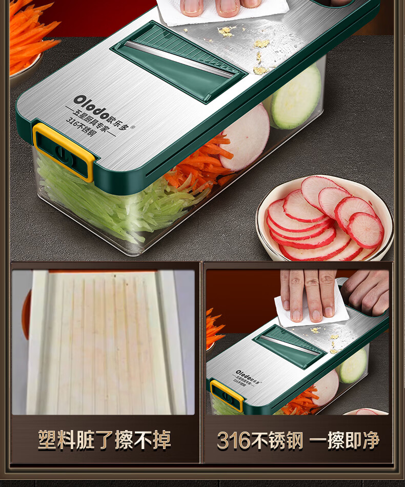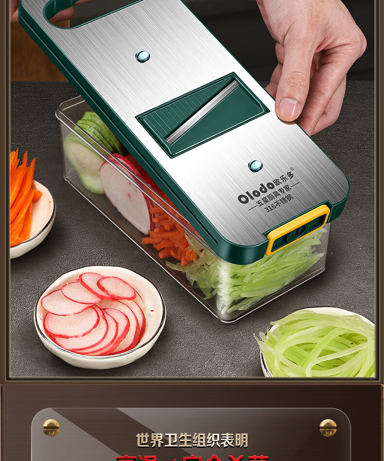 Olodo Antibacterial 316 Stainless Steel Chopping Artifact Potato Grater Shredding Artifact Multifunctional Grater Grater Board Hand Guard 316 Vegetable Cutter 5 Blades With Paring Knife