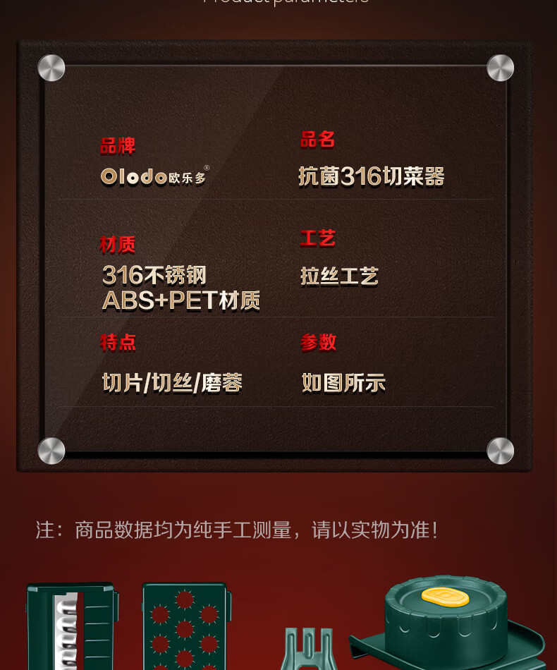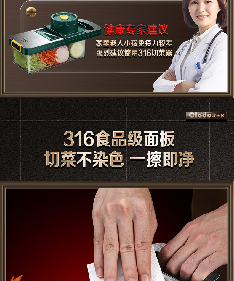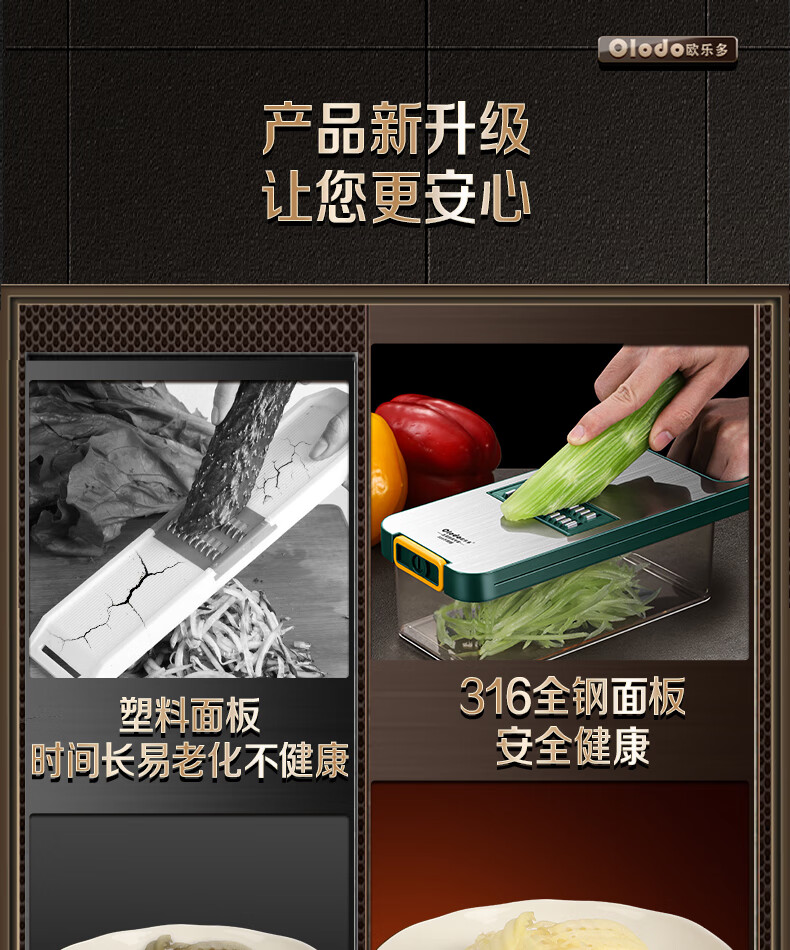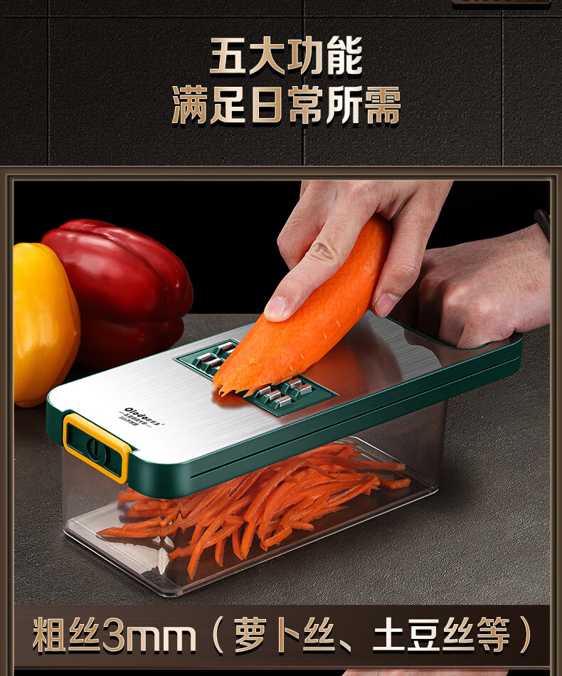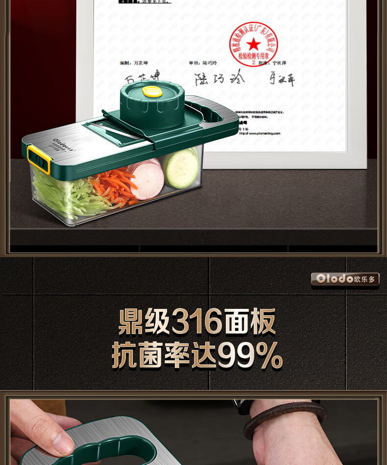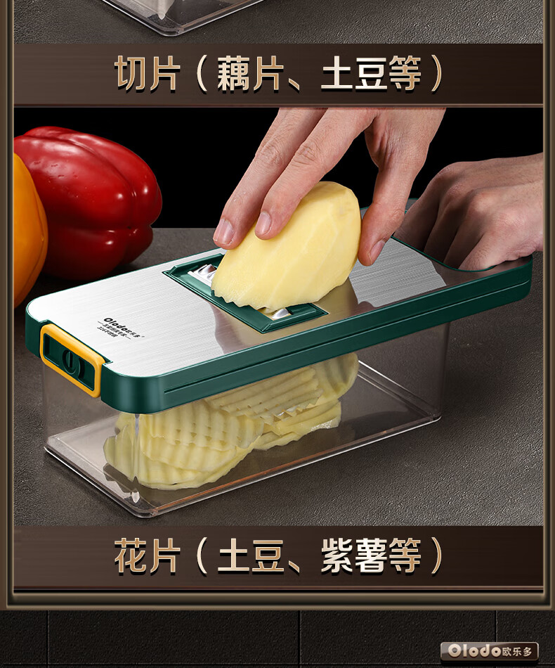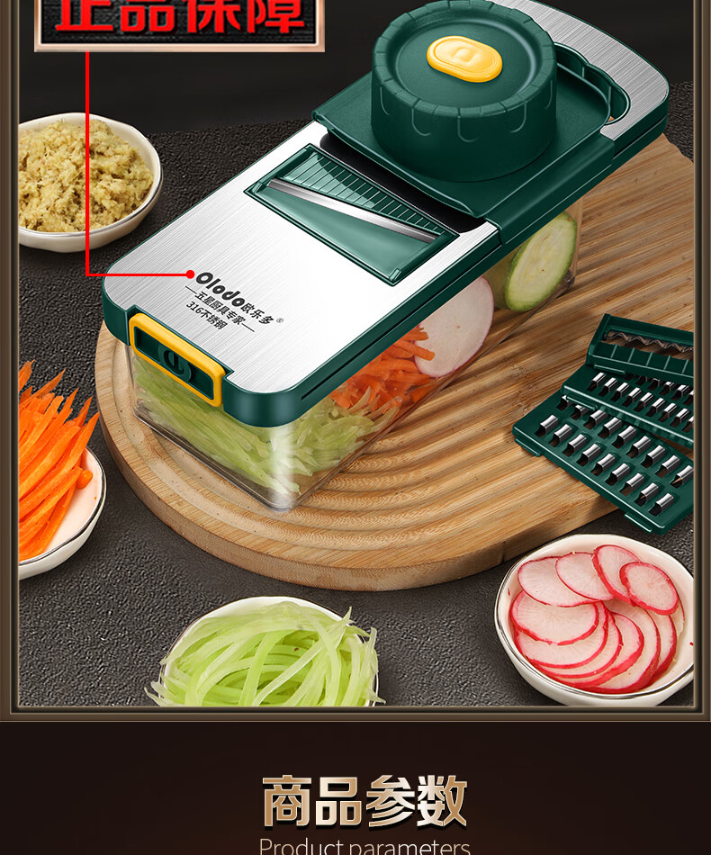 Olodo Antibacterial 316 Stainless Steel Chopping Artifact Potato Grater Shredding Artifact Multifunctional Grater Grater Board Hand Guard 316 Vegetable Cutter 5 Blades With Paring Knife