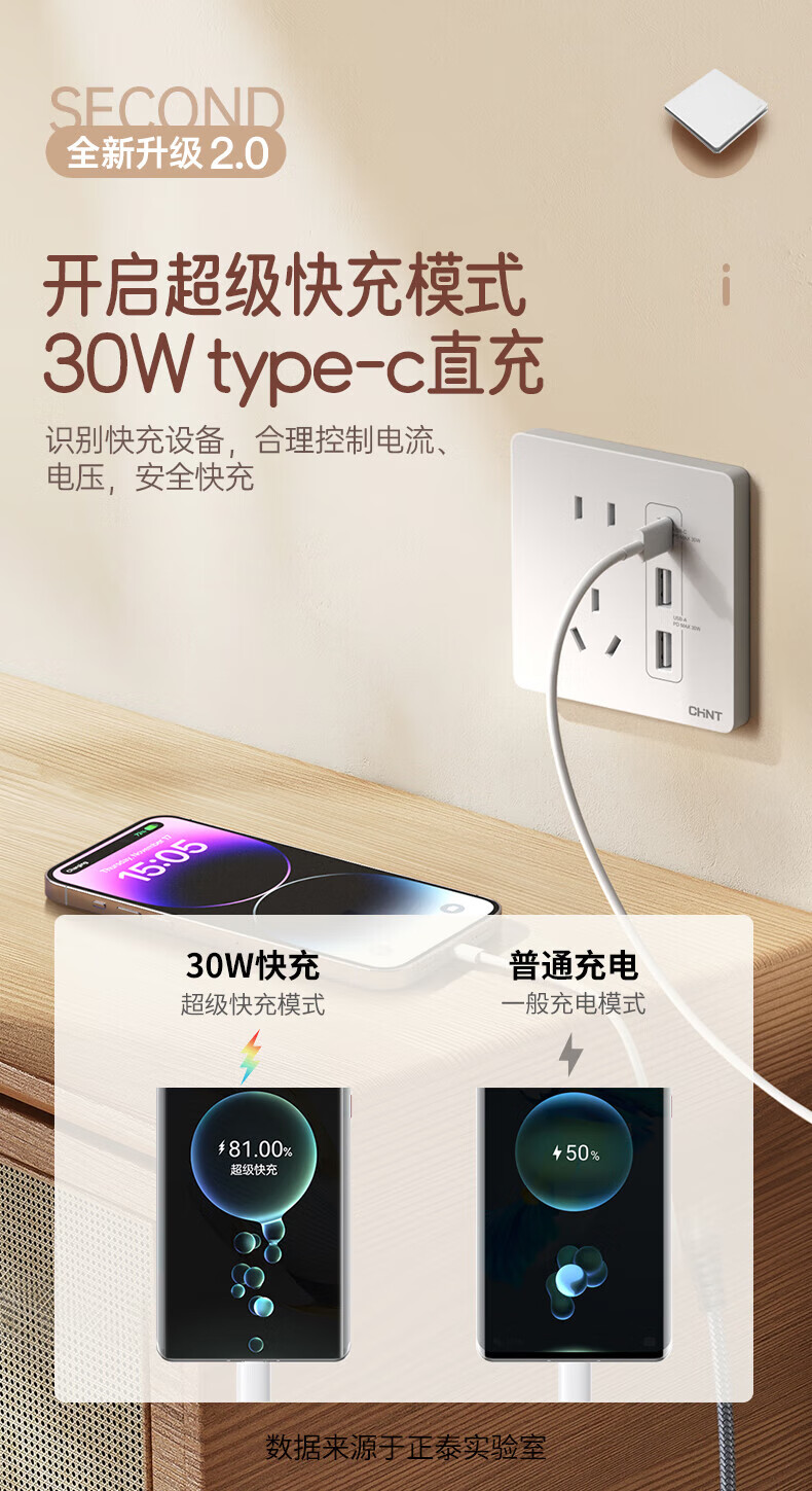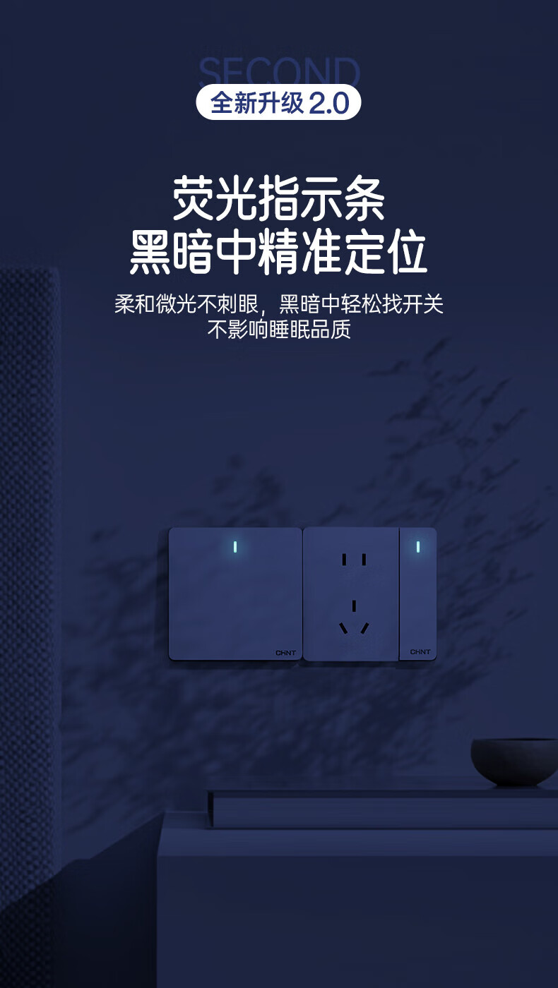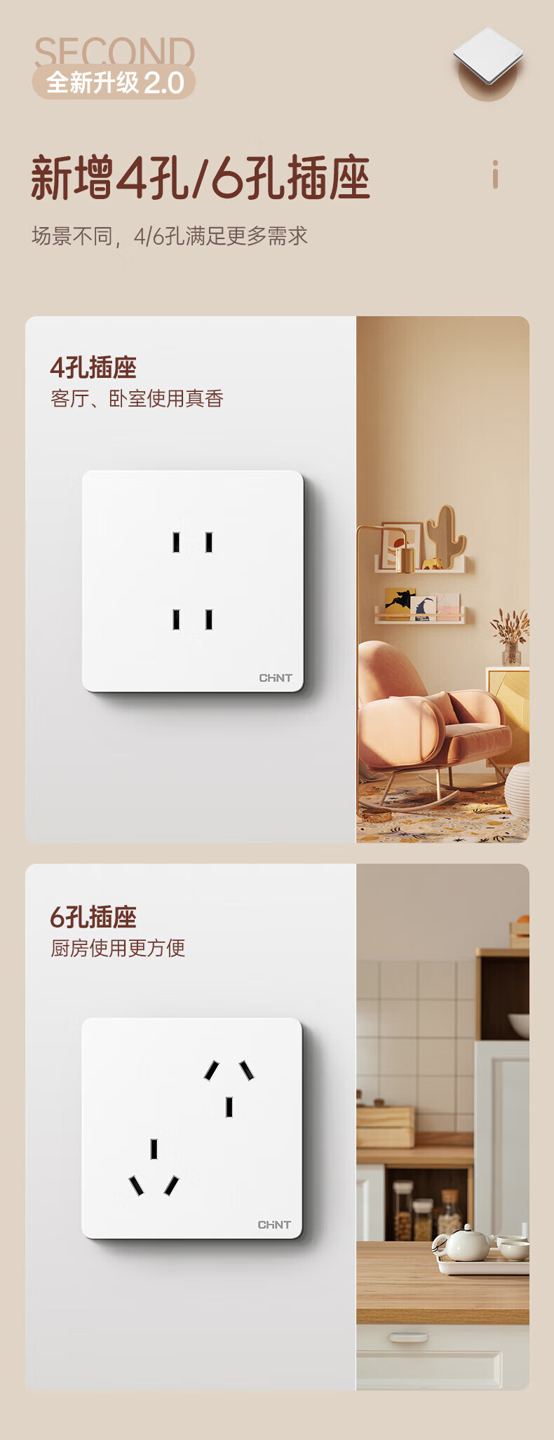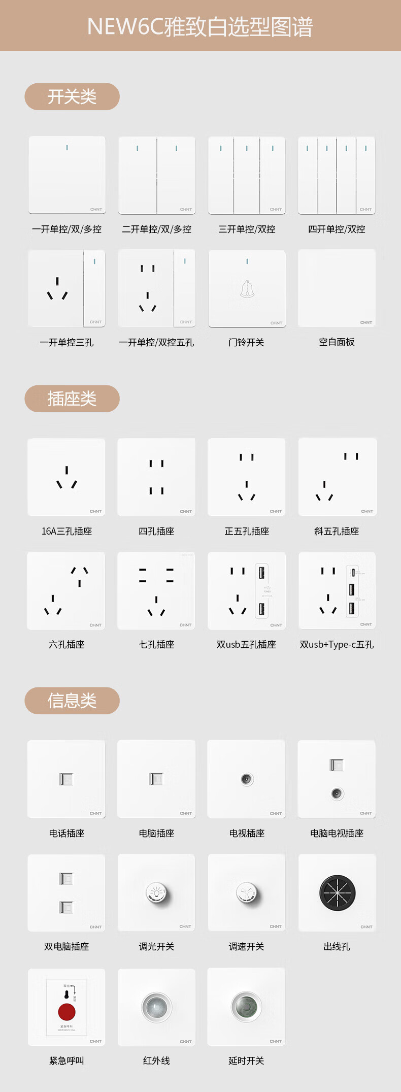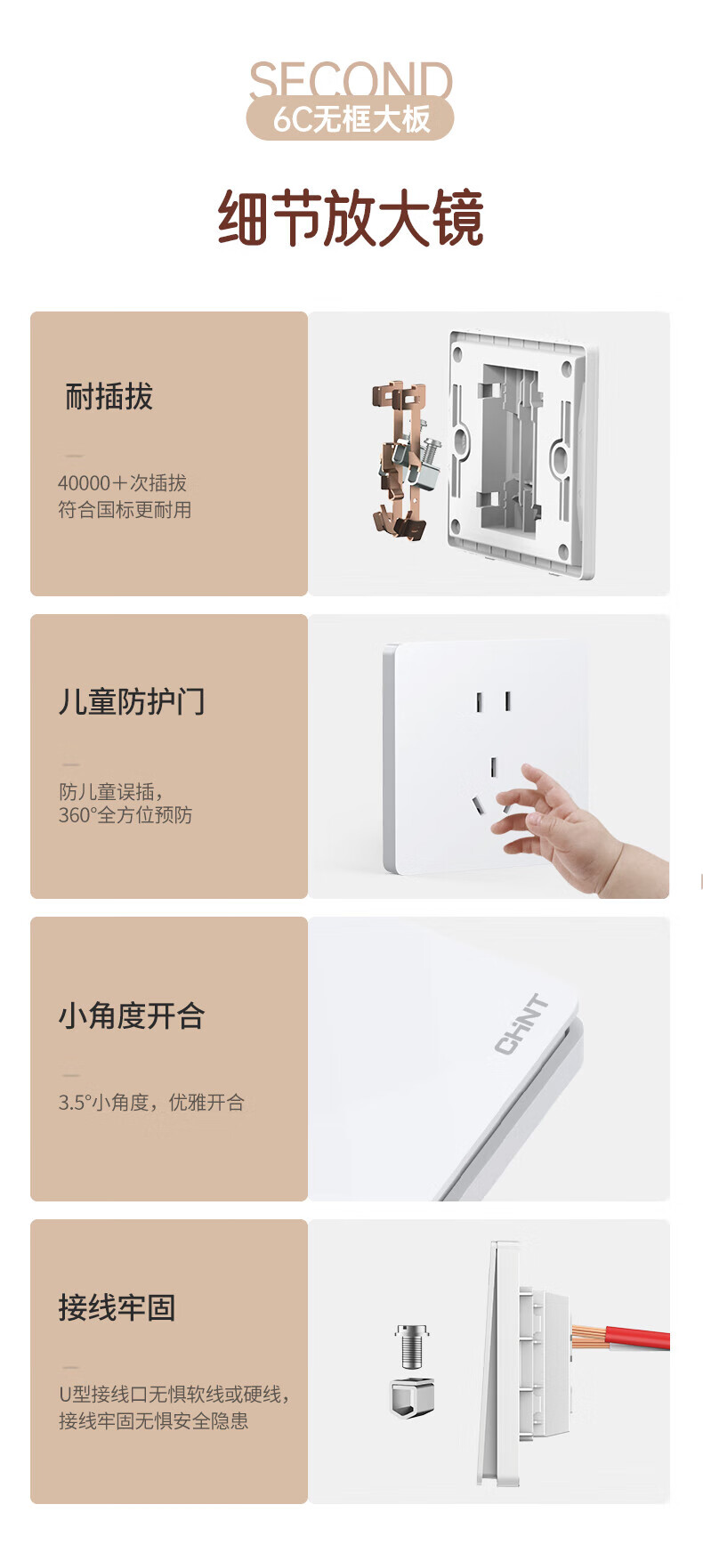 Chint (CHNT) switch socket wall panel household concealed two or three sockets oblique five-hole power supply 86 type whole house frameless large panel 6C white oblique five-hole socket