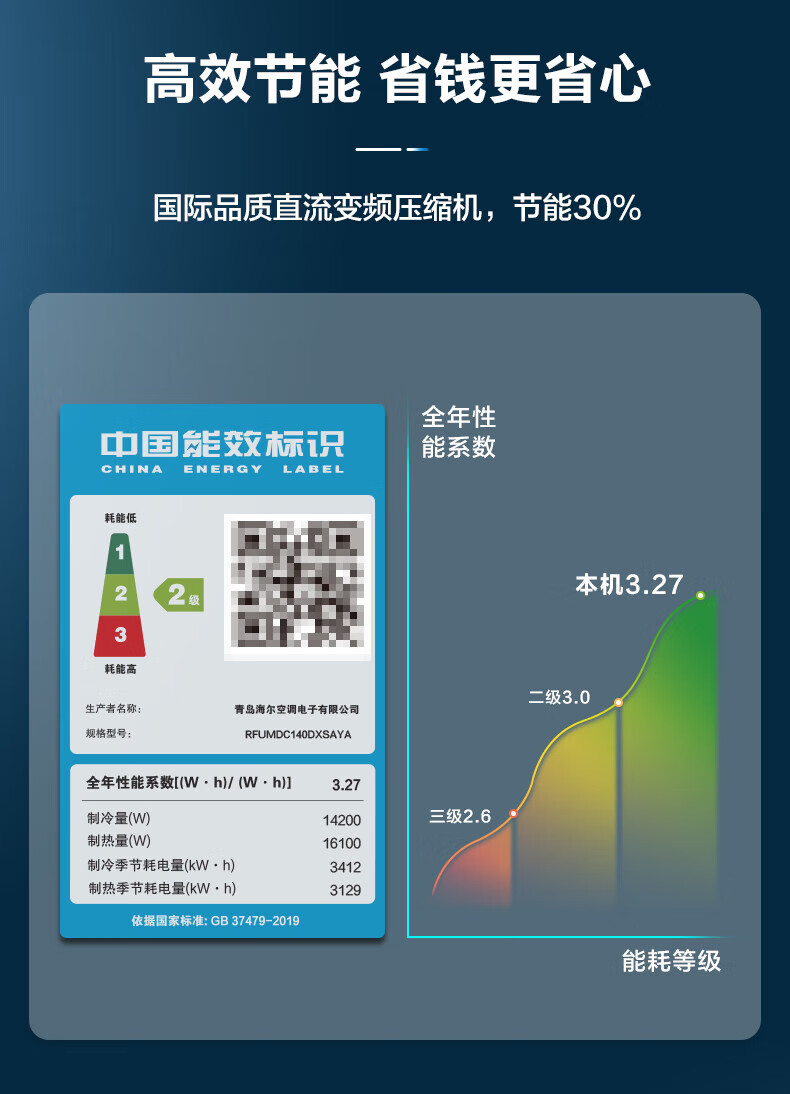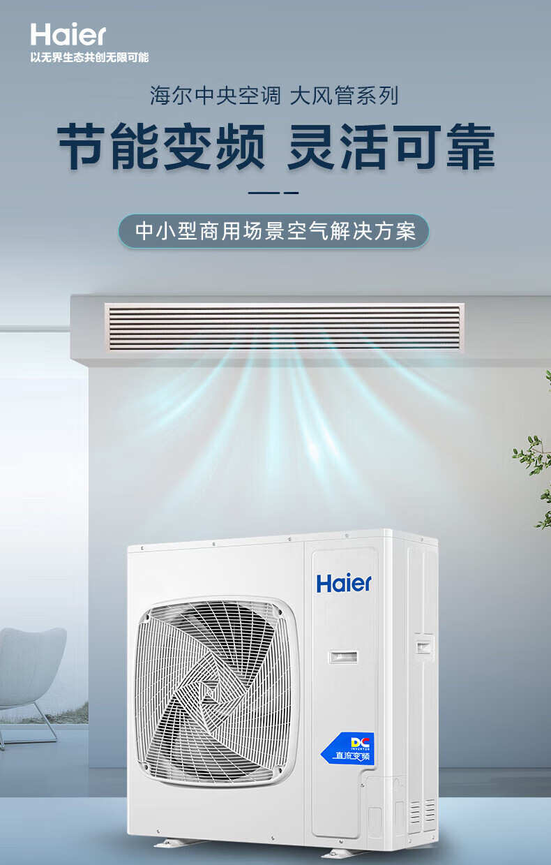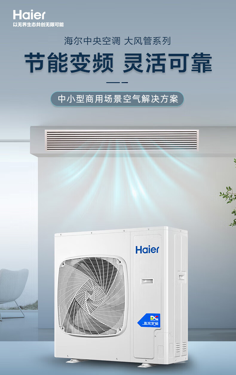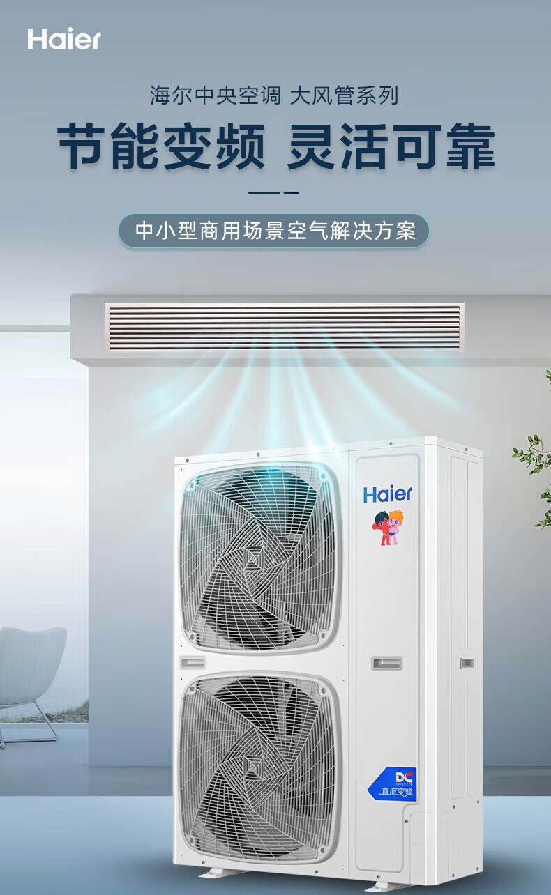 Haier duct machine one-to-one central air conditioner 5 hp office restaurant factory shop commercial large air volume energy-saving frequency conversion healthy self-cleaning bare machine VAT stamp 6 hp secondary energy efficiency frequency conversion self-cleaning 55~80