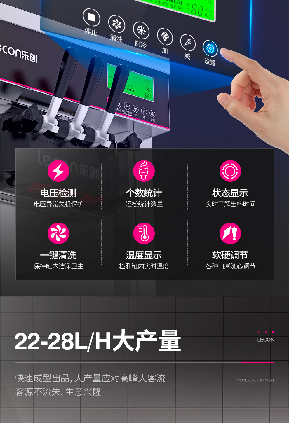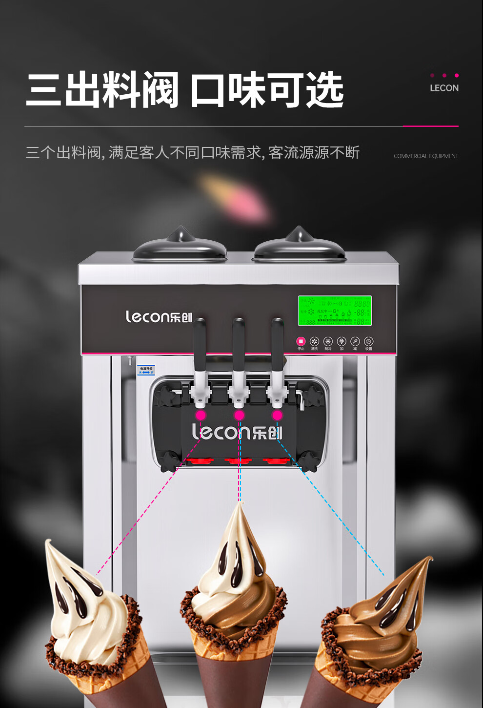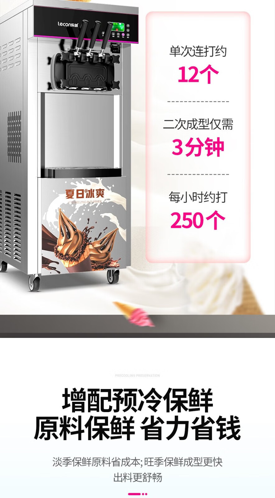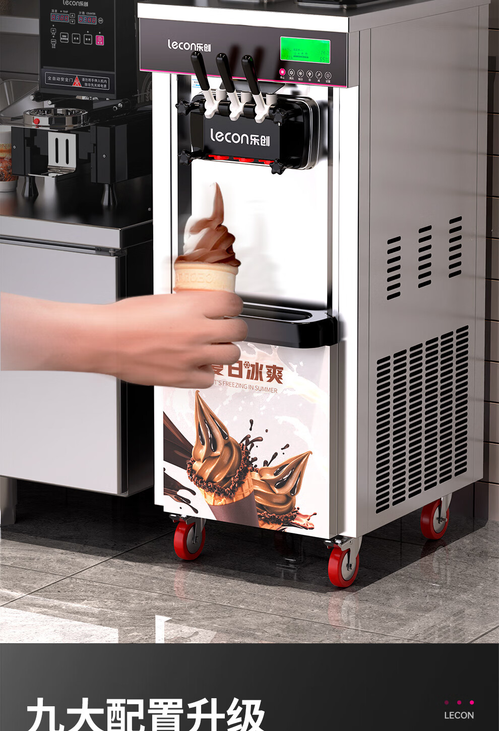 Lecon ice cream machine commercial ice cream machine ice cream machine fully automatic soft ice cream machine desktop vertical cone machine sundae machine upgraded vertical one-click cleaning 250 pieces/hour door-to-door delivery
