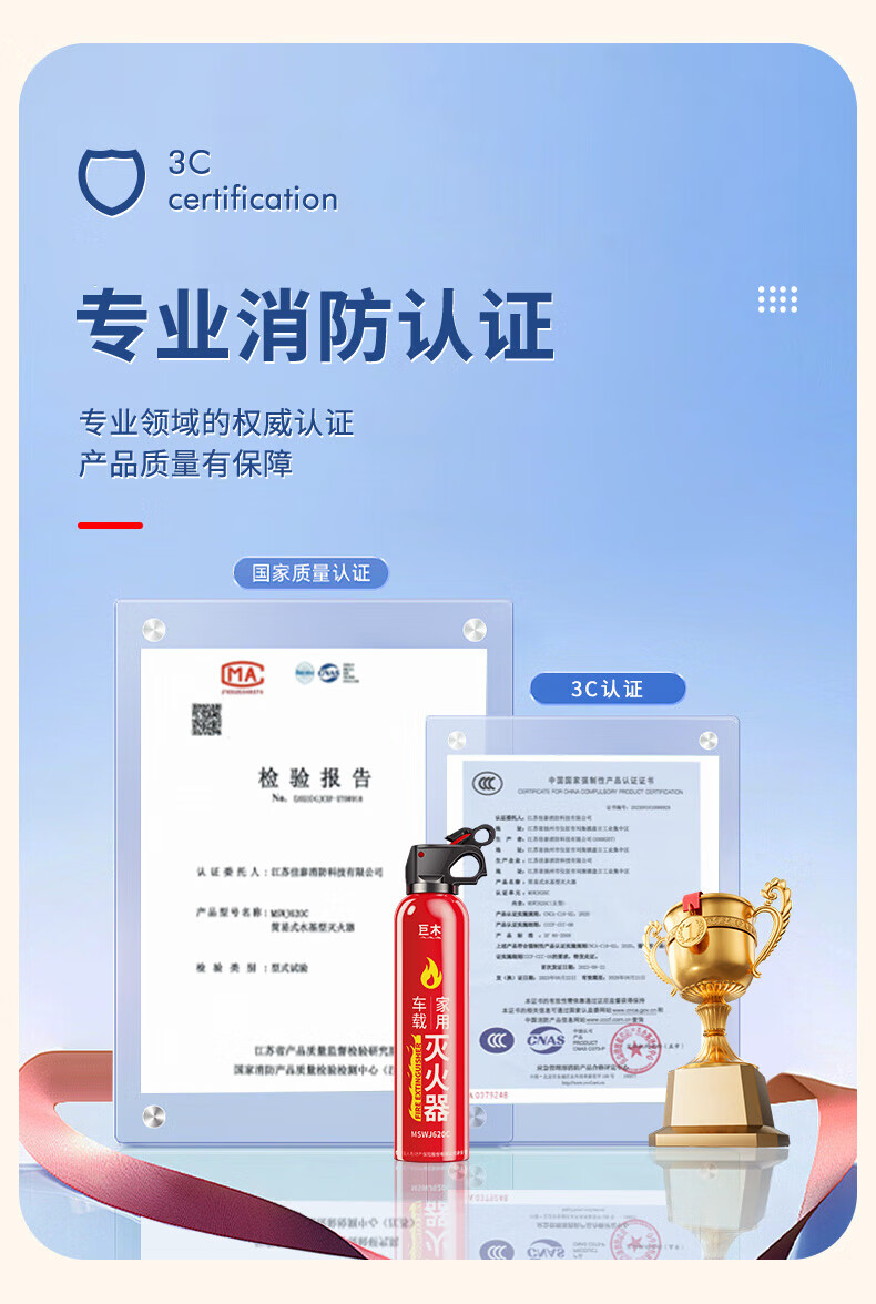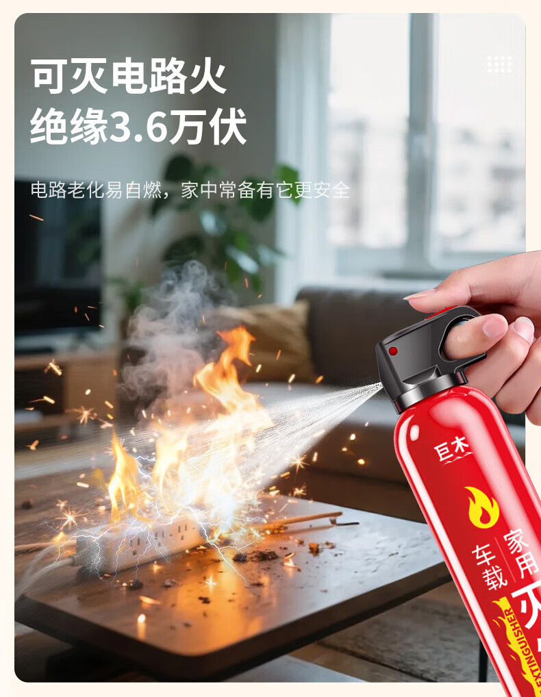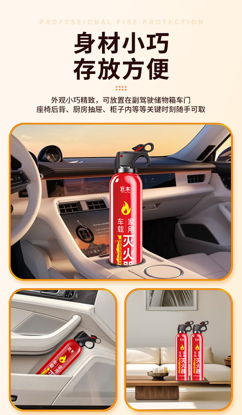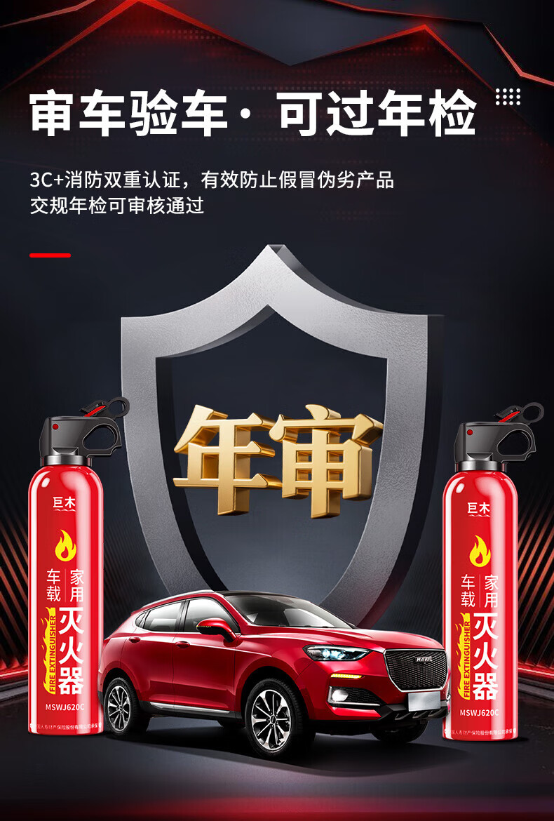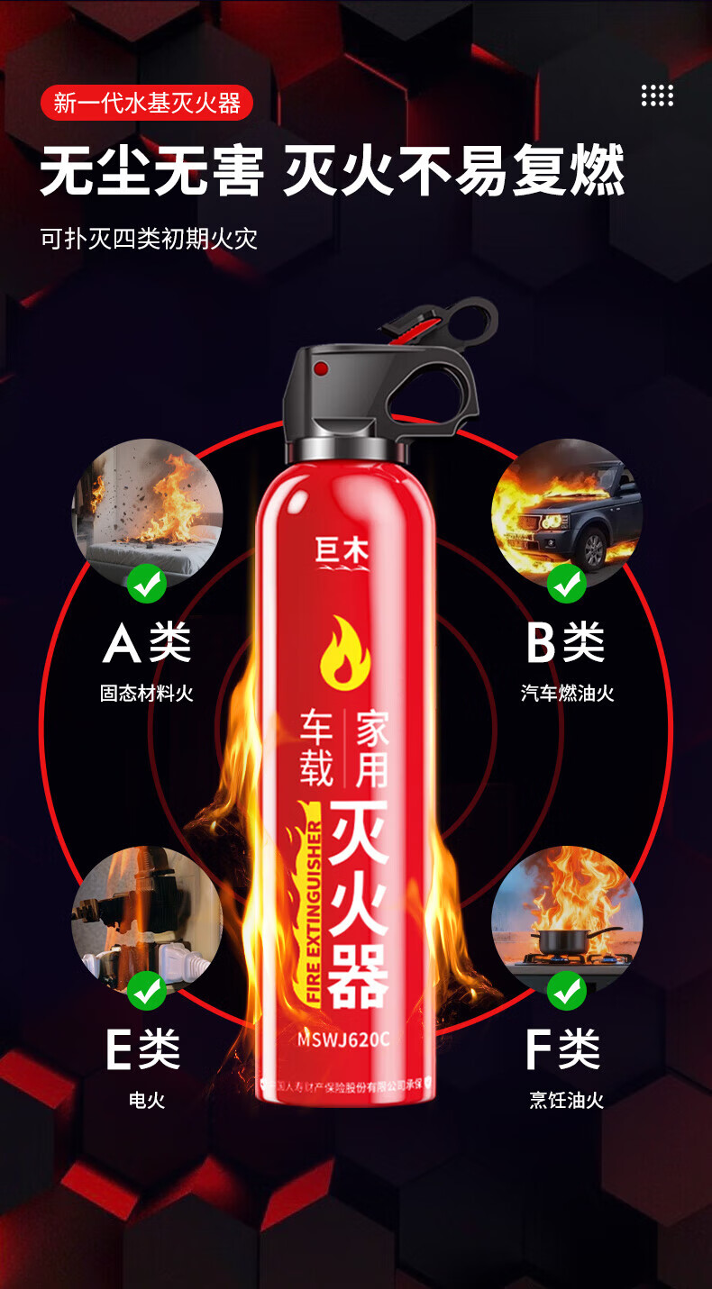 Giant wood car fire extinguisher water-based fire extinguisher car home national fire 3C certification small portable fire equipment 620ml water-based fire extinguisher new style