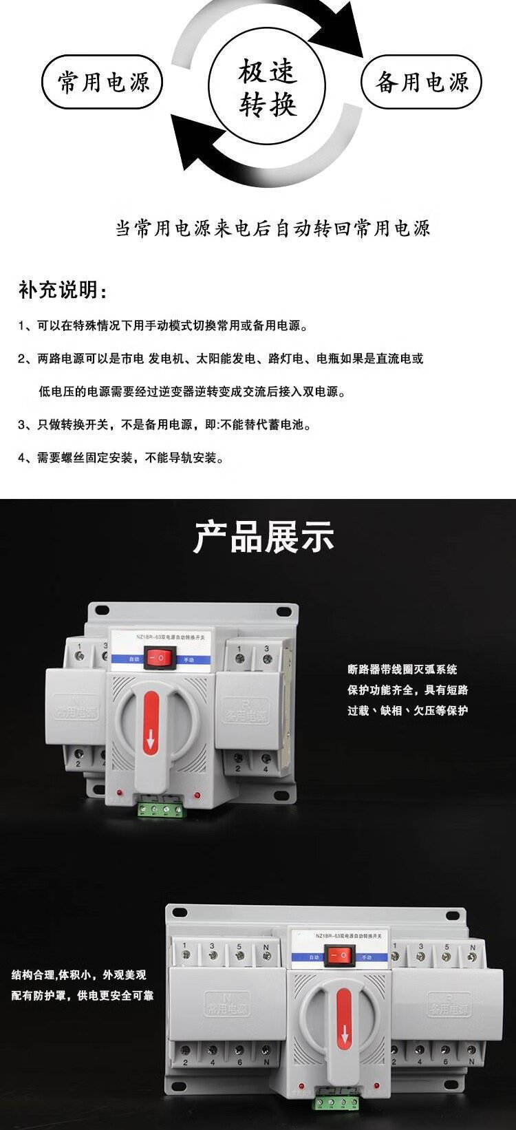 Dual power automatic transfer switch NZ1BR-63/4P 10A220v switching ATS device circuit breaker customization 2P 63A