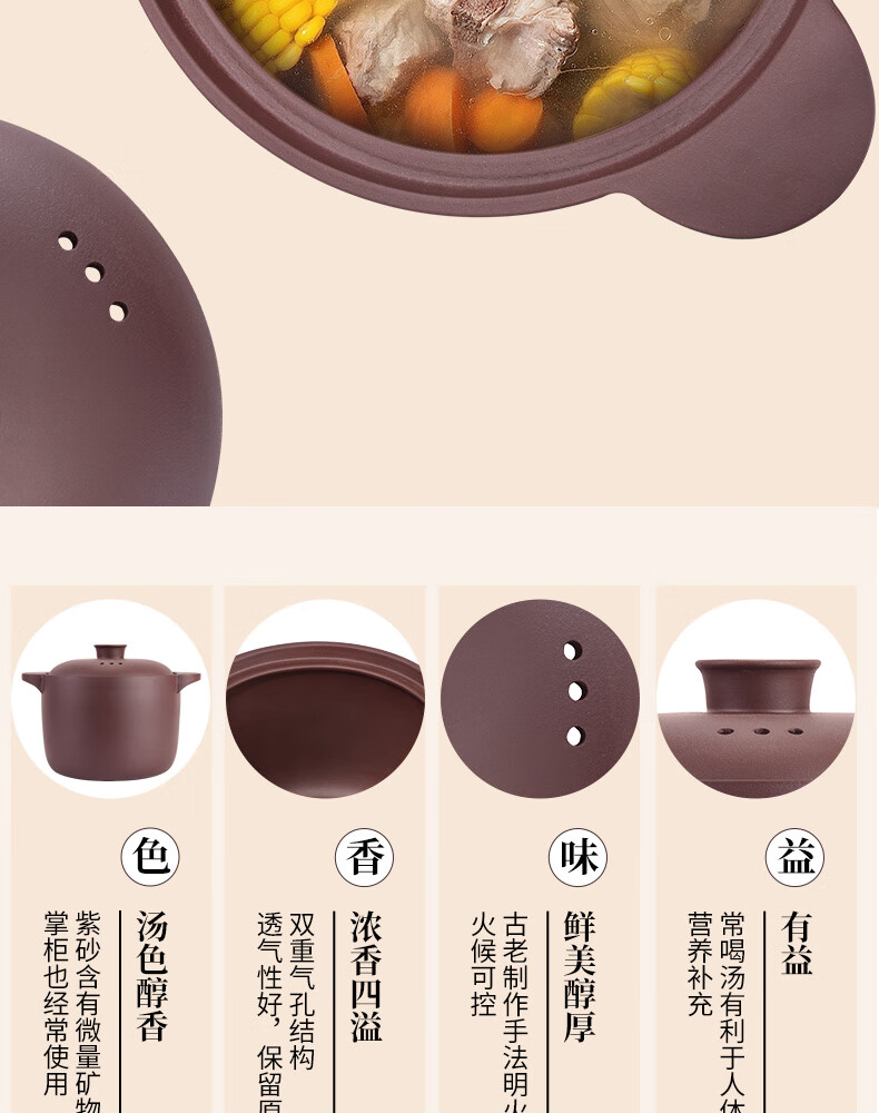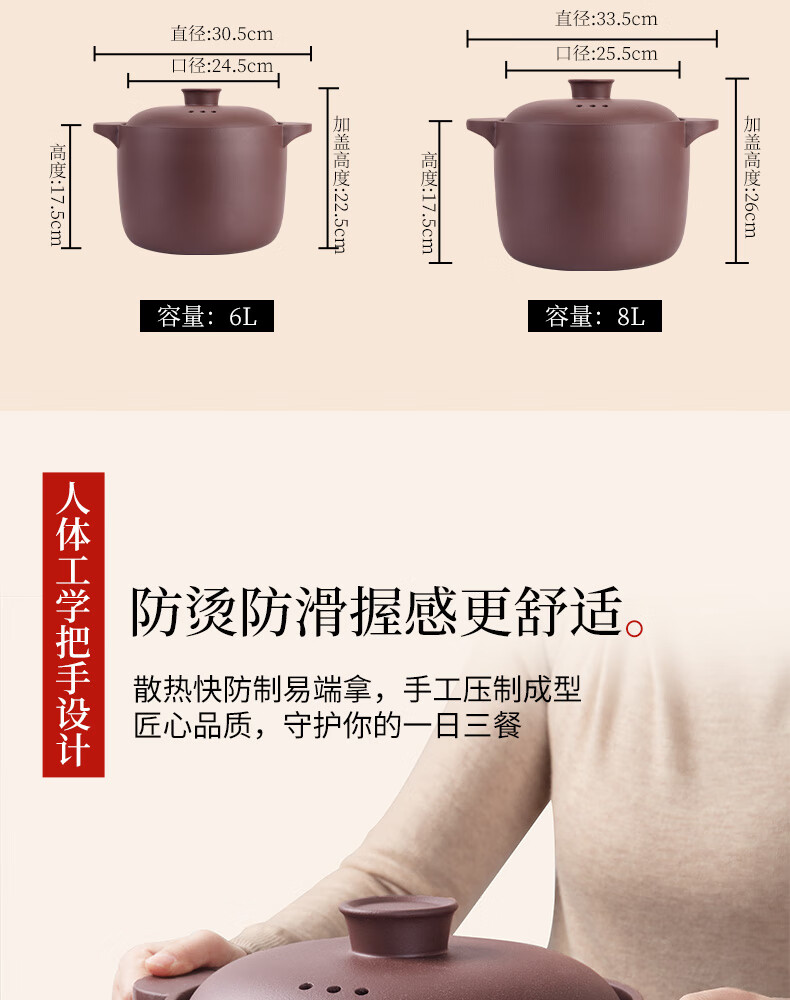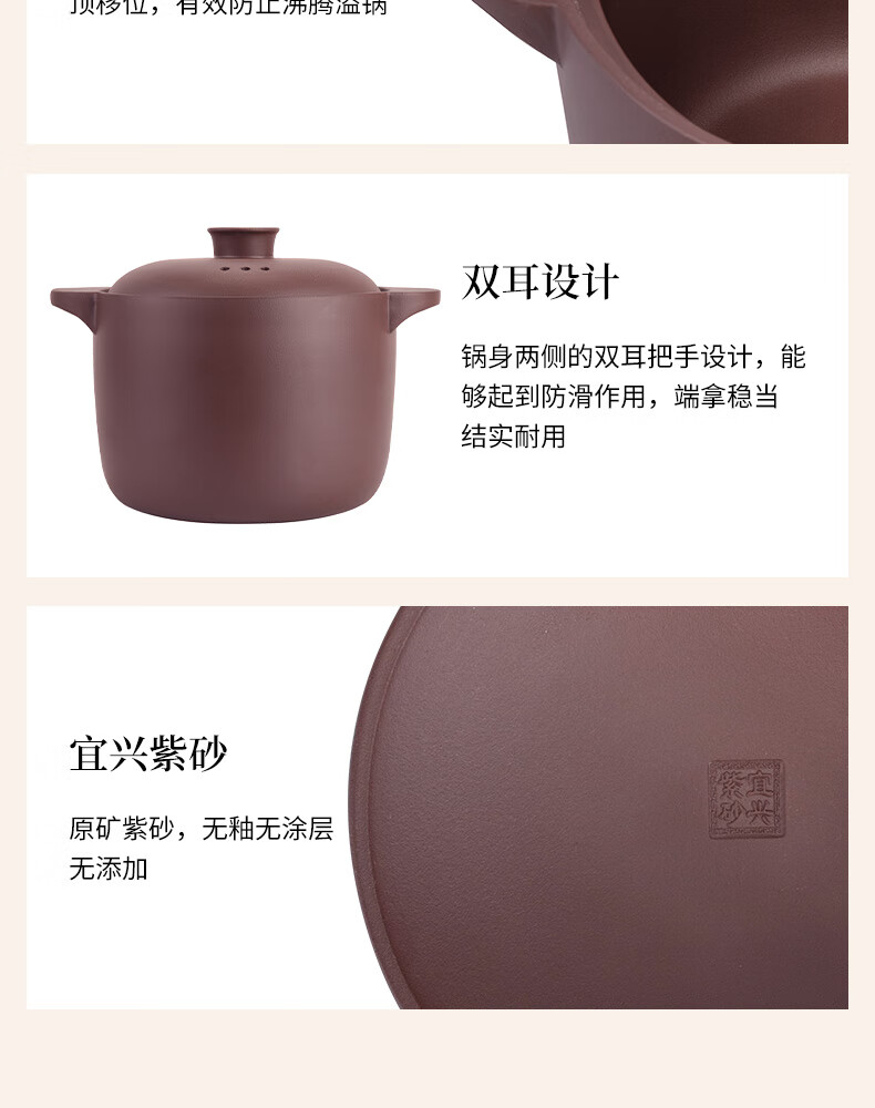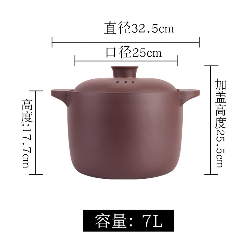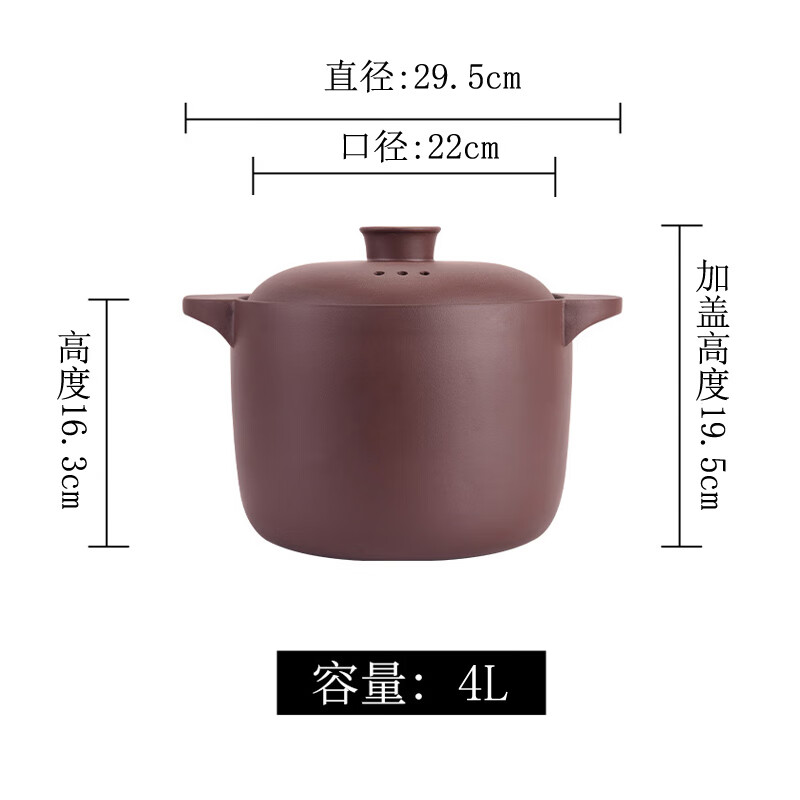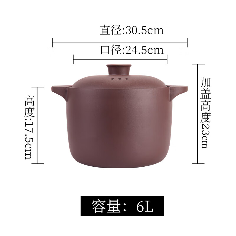 Yixing Purple Clay Pot Unglazed Natural Clay Pot Purple Clay Stew Pot Large Soup Pot Raw Mineral Healthy Earthen Pot Open Fire Large Capacity Raw Mineral Purple Clay Pot 6L