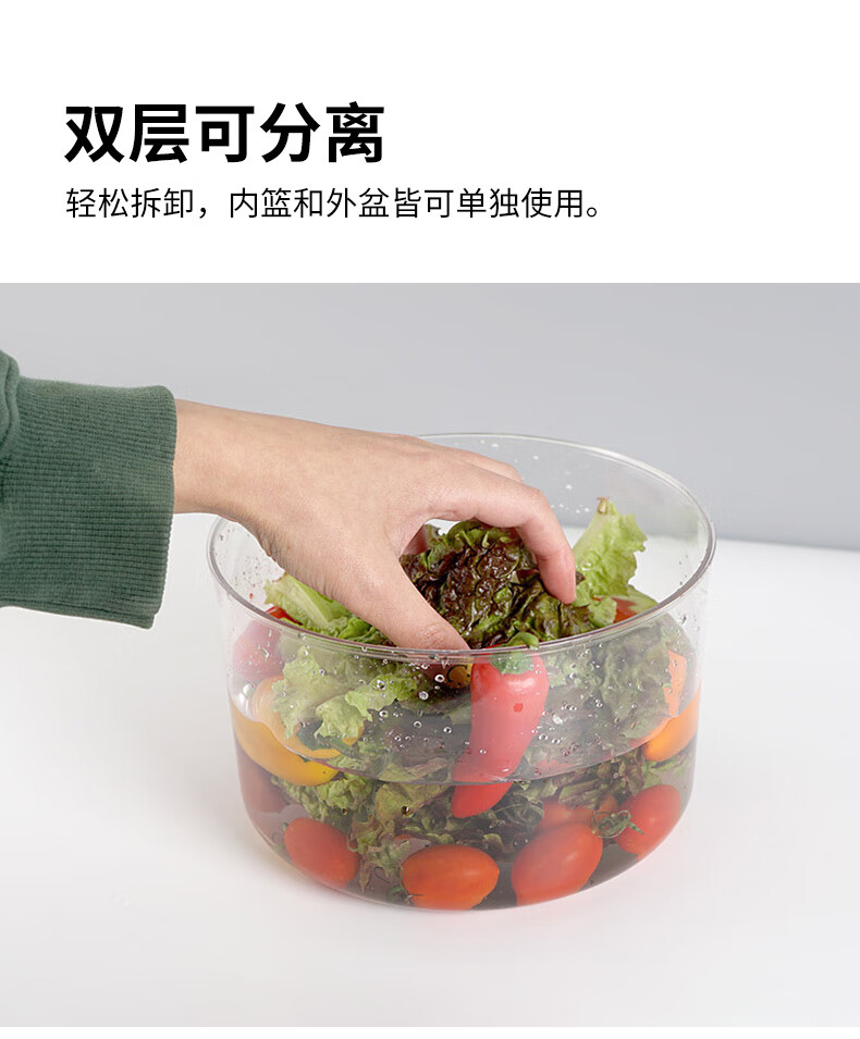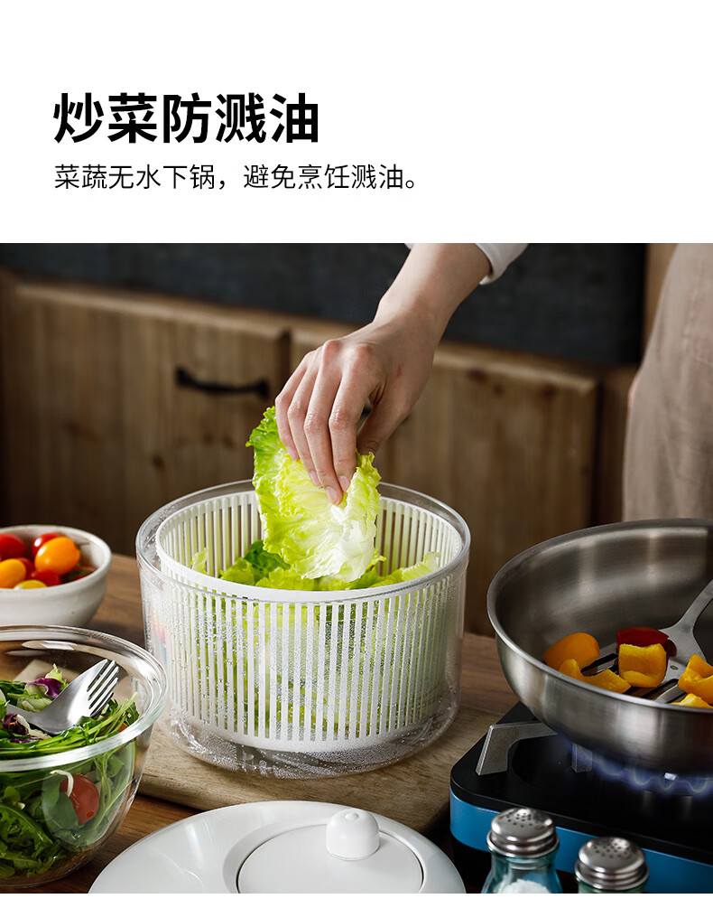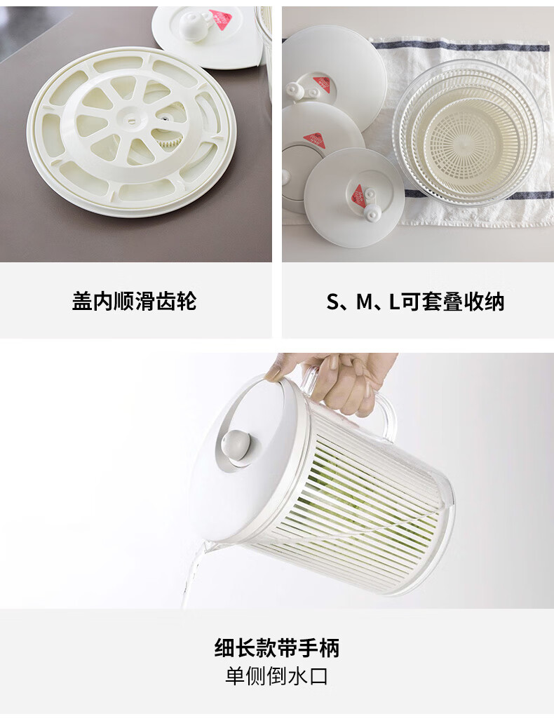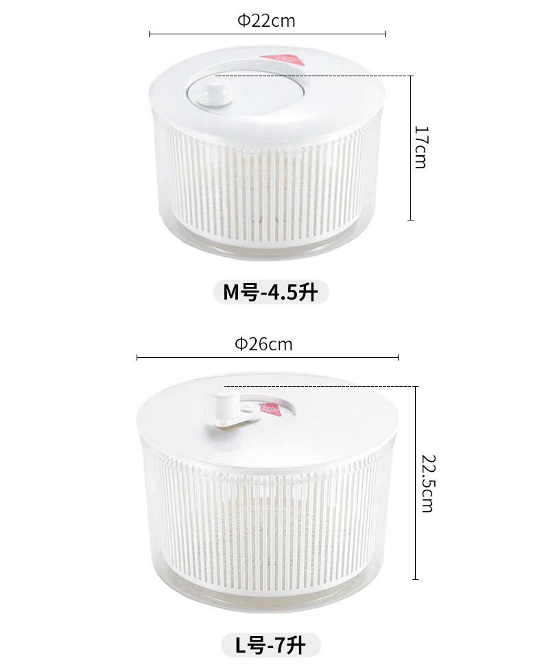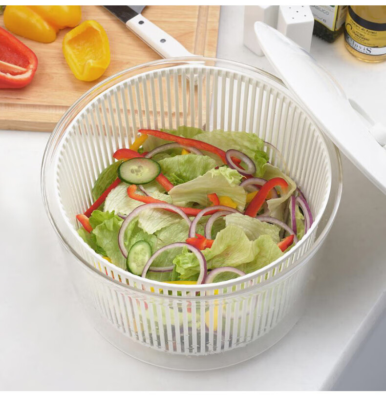 Shuangshan Japan imported vegetable dehydrator, fruit salad water remover, manual spin dryer, vegetable spinner, drainer, vegetable basket, 7 liters - L size