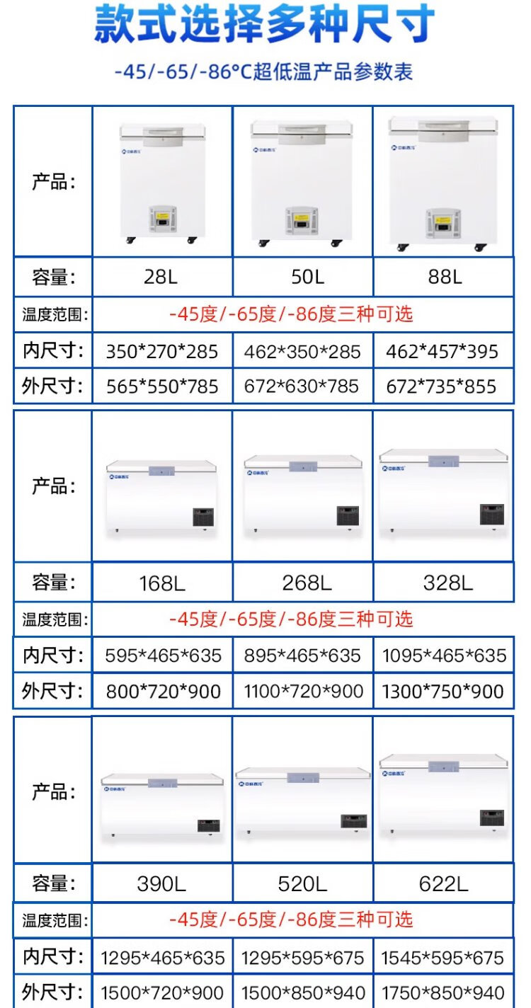 Zhongke Xileng ultra-low temperature freezer minus 80 degrees small scientific research biological laboratory refrigerator medical vaccine plasma medicine freezer minus 60 dry ice industrial parts cryogenic-40 quick freezer 28L (565 550 785mm) -45 degrees (-15 to -45 degrees adjustable)