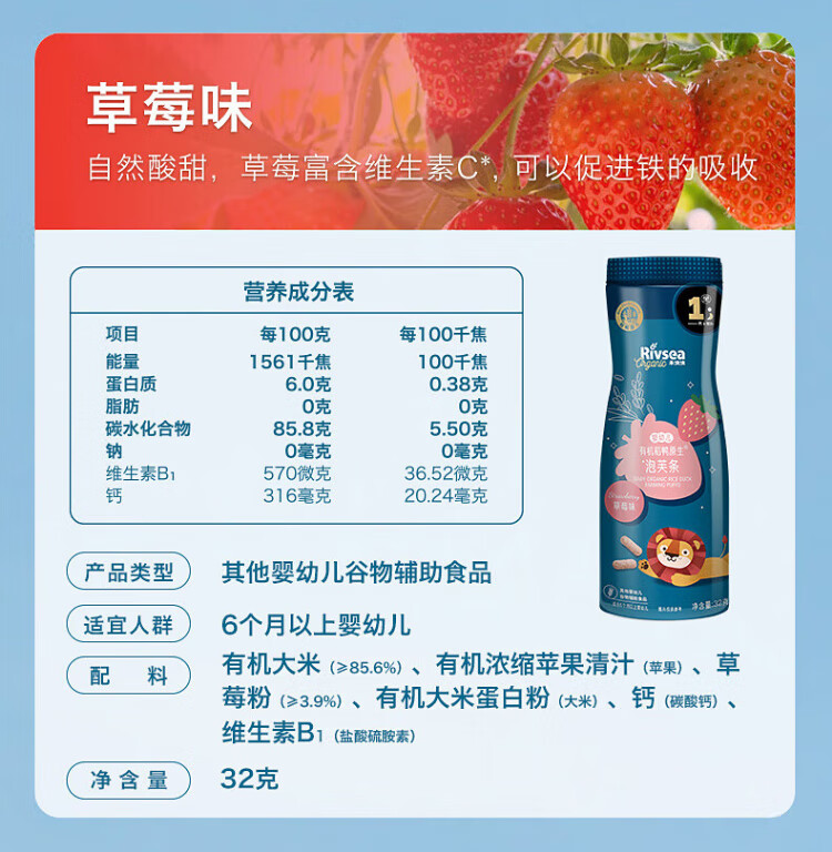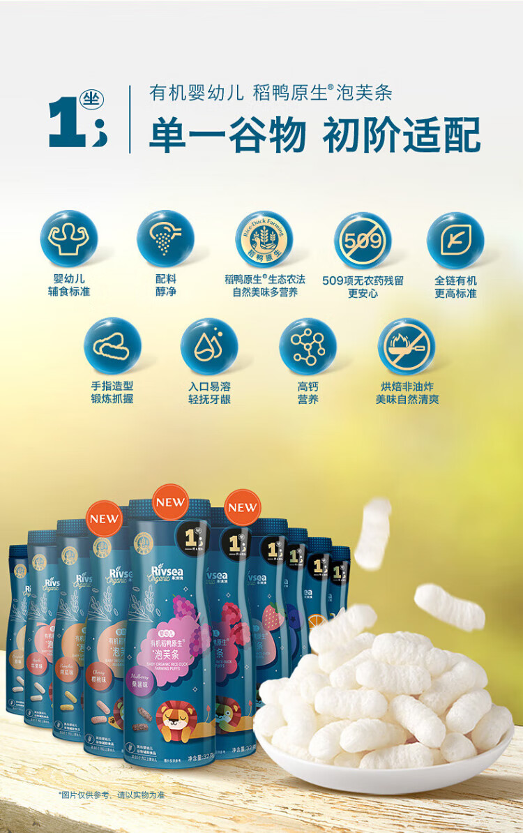 Heyangyang Infant Puff Bars. Snacks and food supplements for babies and children over 6 months old. High calcium exercise, easy to grasp and dissolve in the mouth. Organic Puff Bars (Strawberry + Blueberry + Orange).