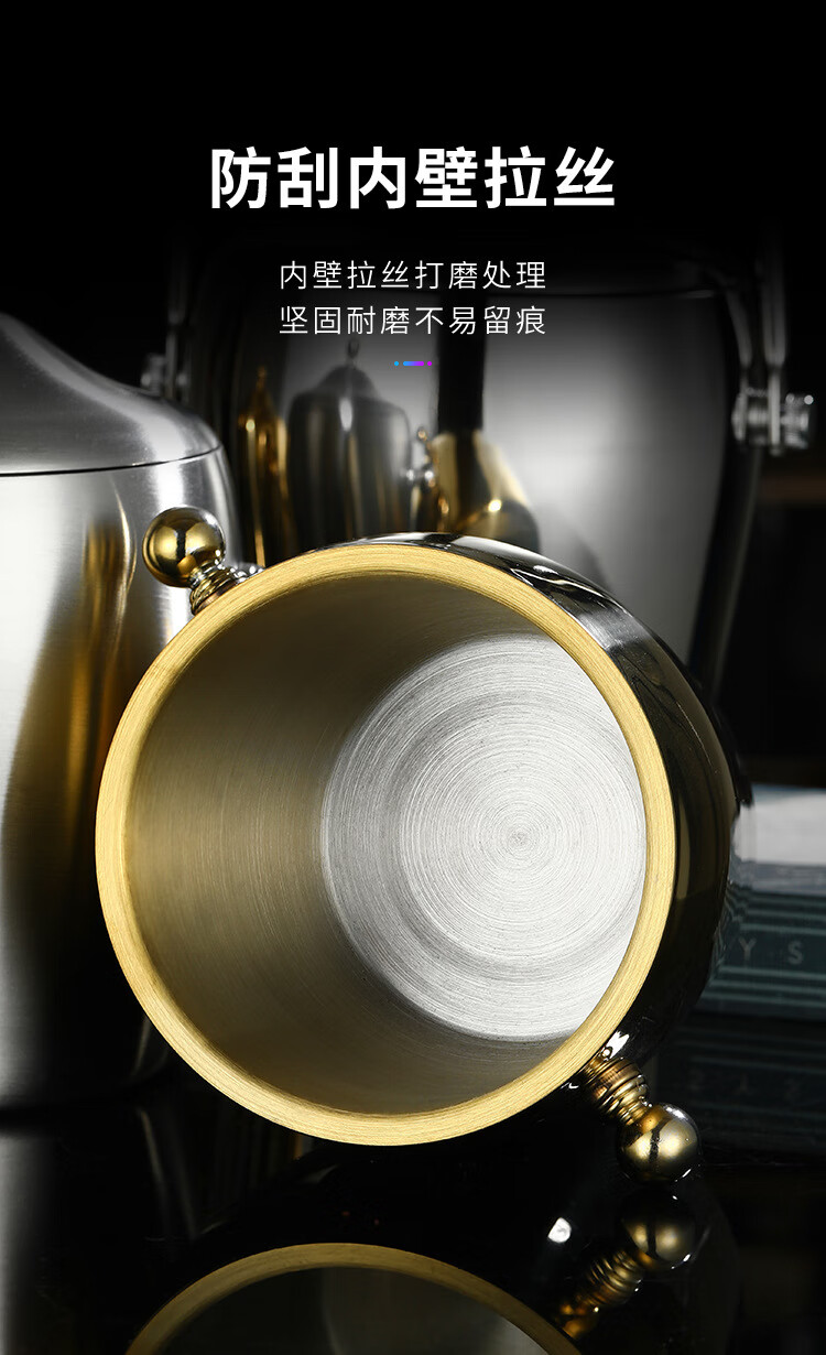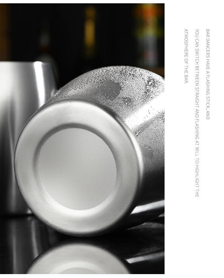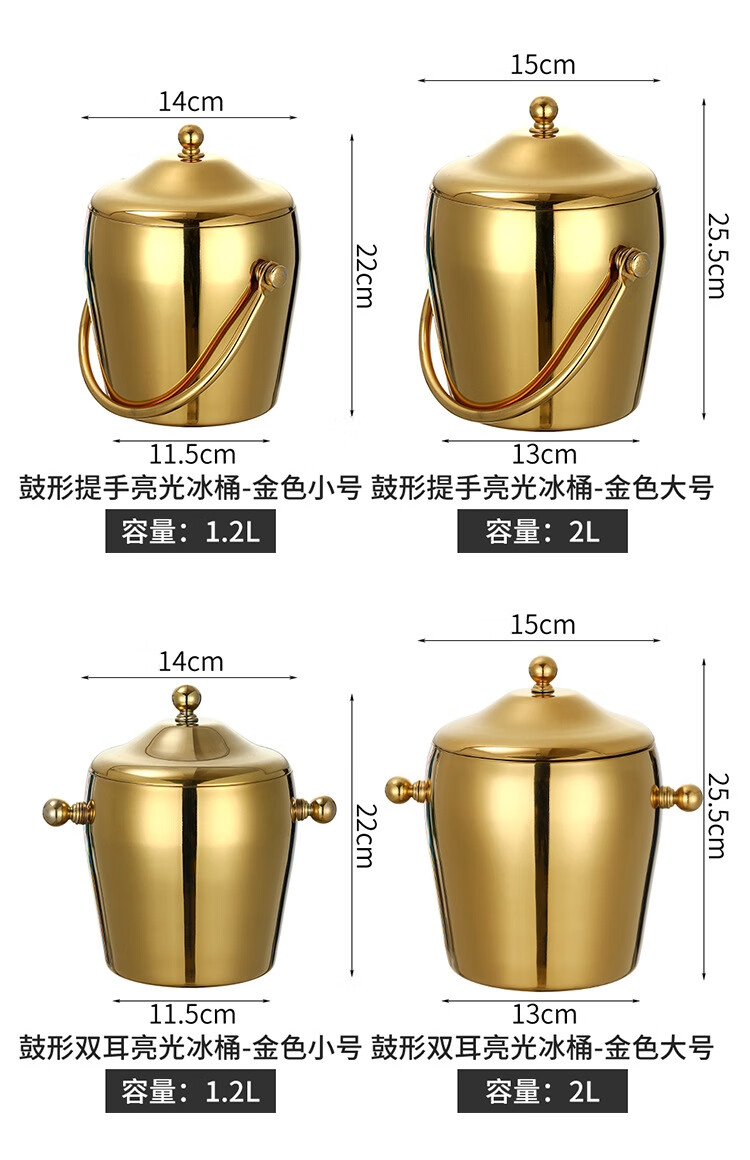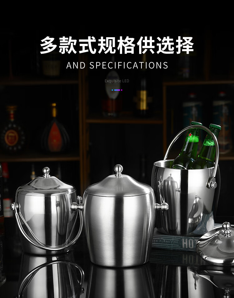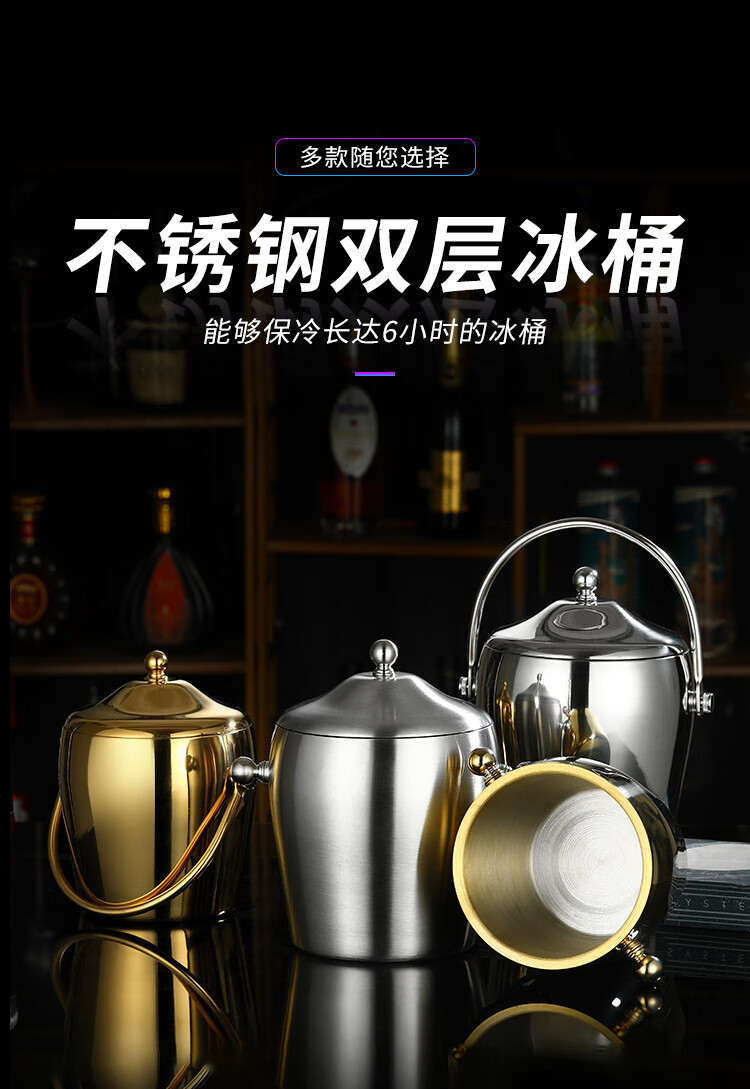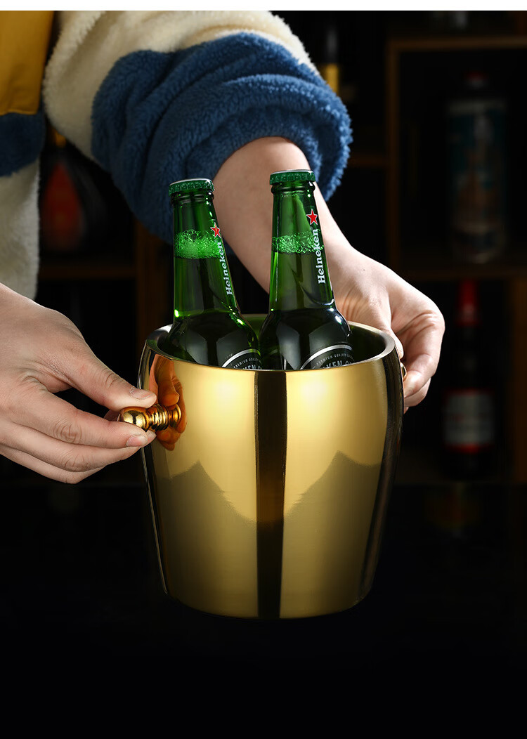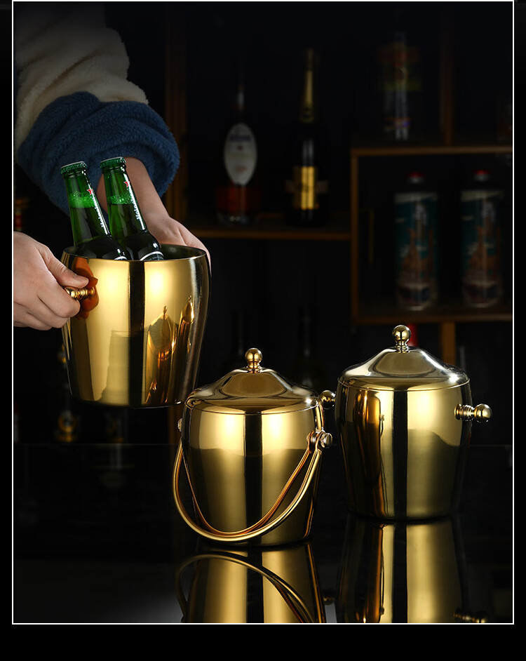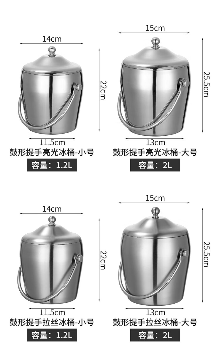 Wuji Stainless Steel Double-layer Ice Bucket Portable Covered Cold Ice Bucket Bar KTV Beer Red Wine Champagne Ice Cube Bucket 1.2L Portable Drum Ice Bucket (Bright Light)