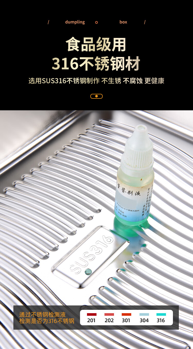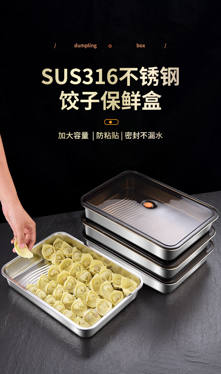 Imported from Germany, quality 316L stainless steel dumpling box, freezer box for refrigerator, food grade dumpling preparation tray, dumpling freezing box 1 layer, food grade 316 material