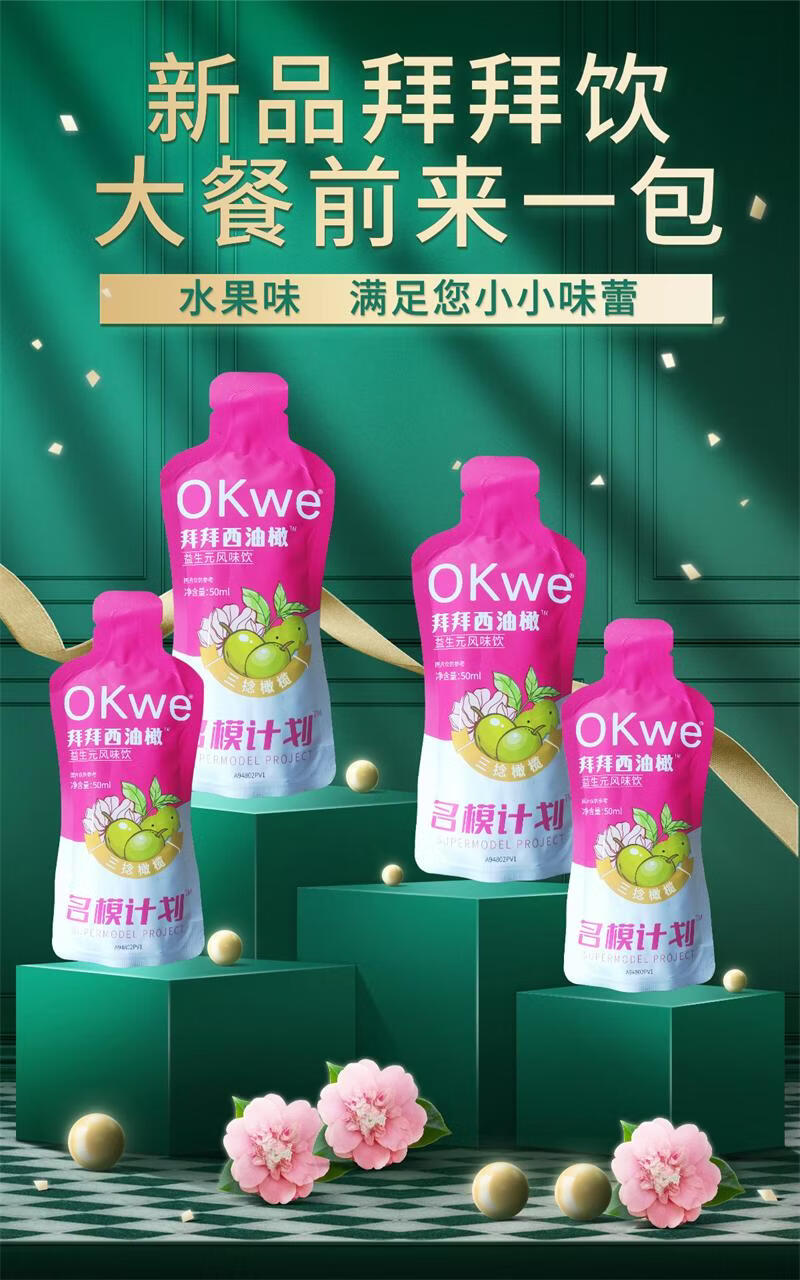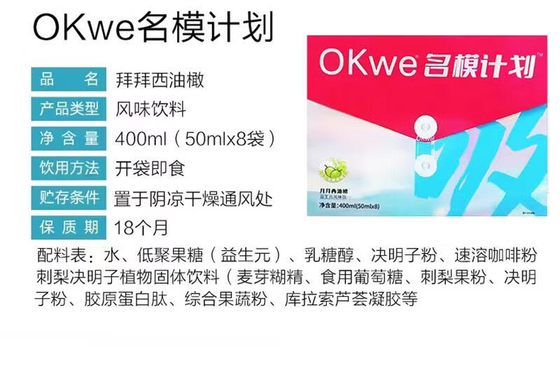 Luxurious soso fruity jelly OKWE Supermodel Plan Bye Bye Drink Western Olive Prebiotic Flavored Fruit Drink OKWE Supermodel Plan Bye Bye Drink 8 bags*10 boxes
