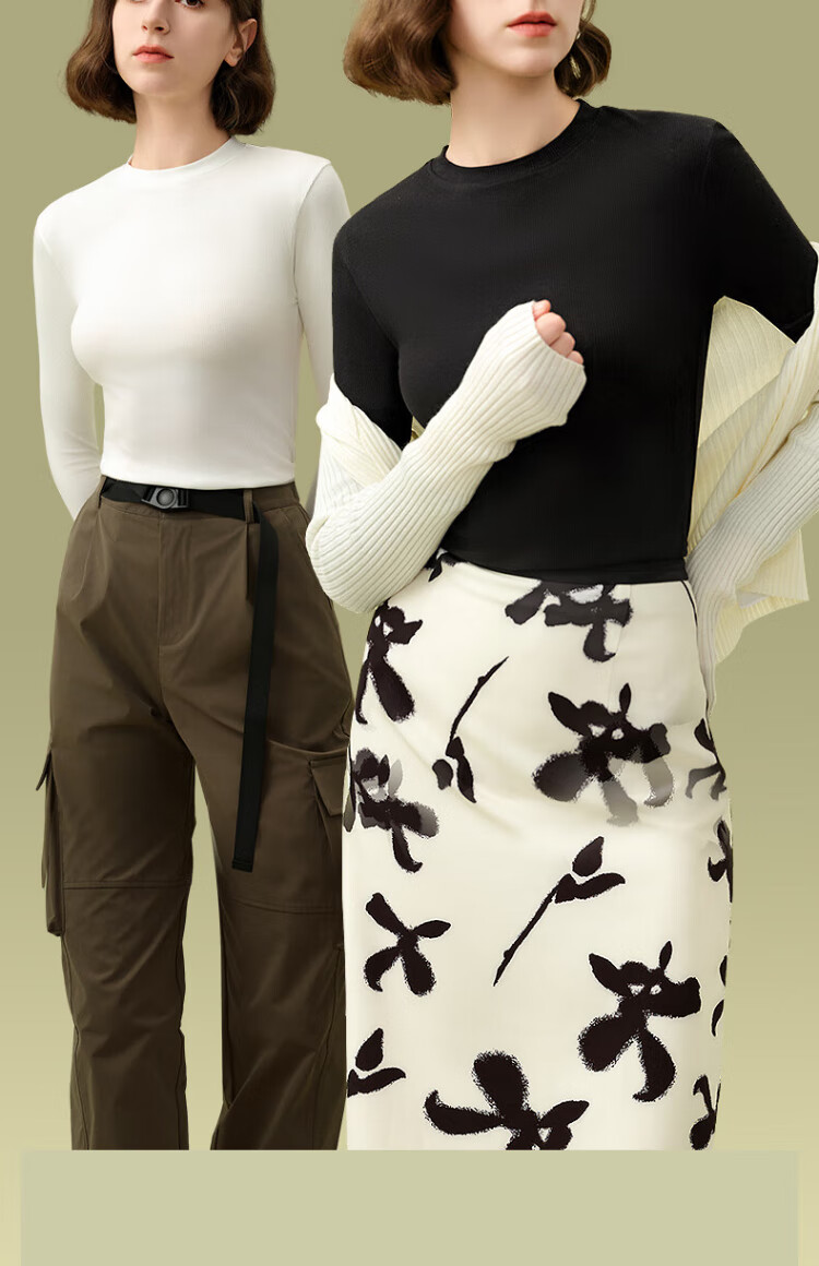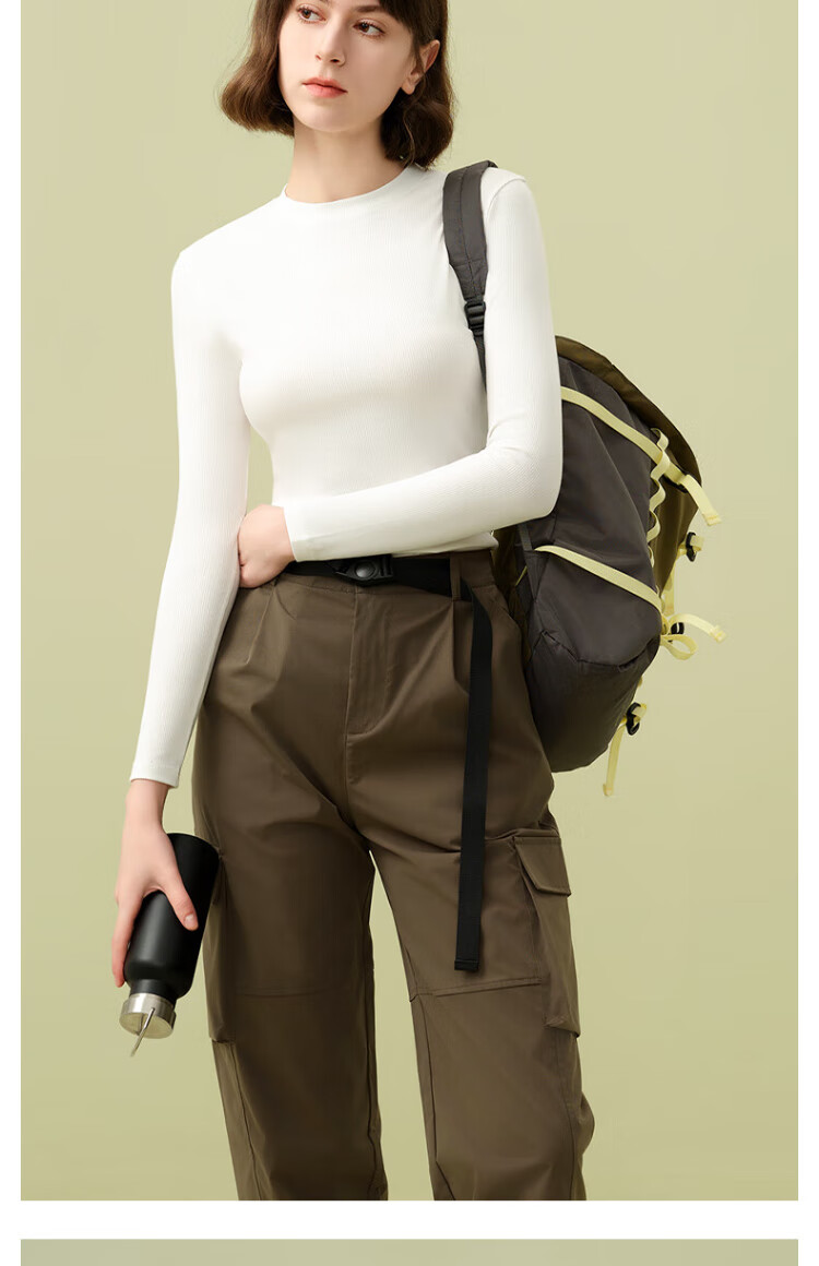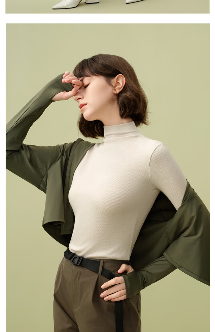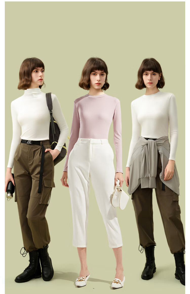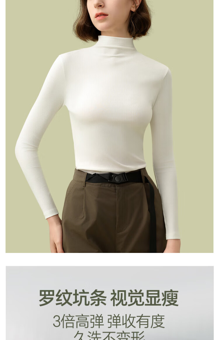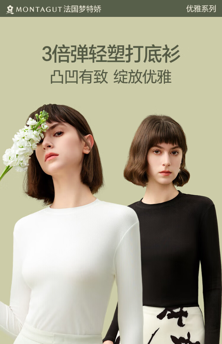 Montagut Modal Cotton Bottoming Shirt Women's Thin Slim White Long Sleeve Underwear Autumn Underwear Round Neck Top Spring Autumn Style Low Collar - Soft Khaki M Recommended 95-110 catties