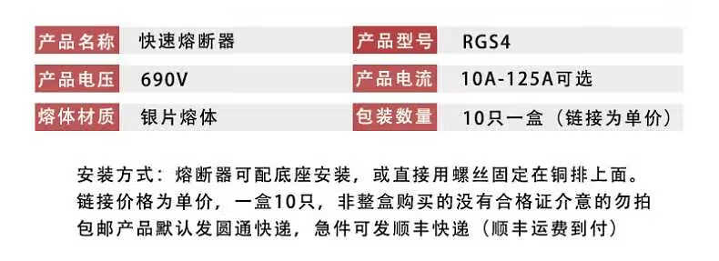 Yourong fast fuse RGS4 690V 63A 80A 110A fuse base ceramic fuse special seat RGS4-16A fuse core