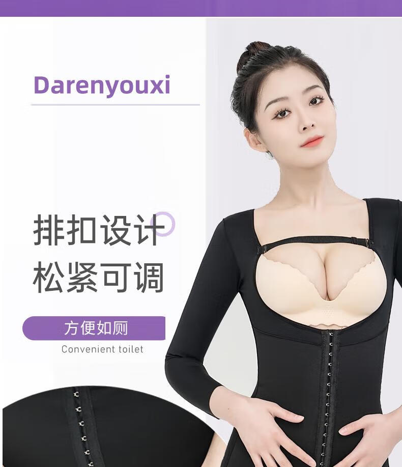 Adult Youxi After Waist and Abdominal Liposuction, Shaping Garment Liposuction One-piece Shaping Garment Women's Arms Pressure Abdomen Lifting Buttocks Reducing Secondary Breast Tight Black S