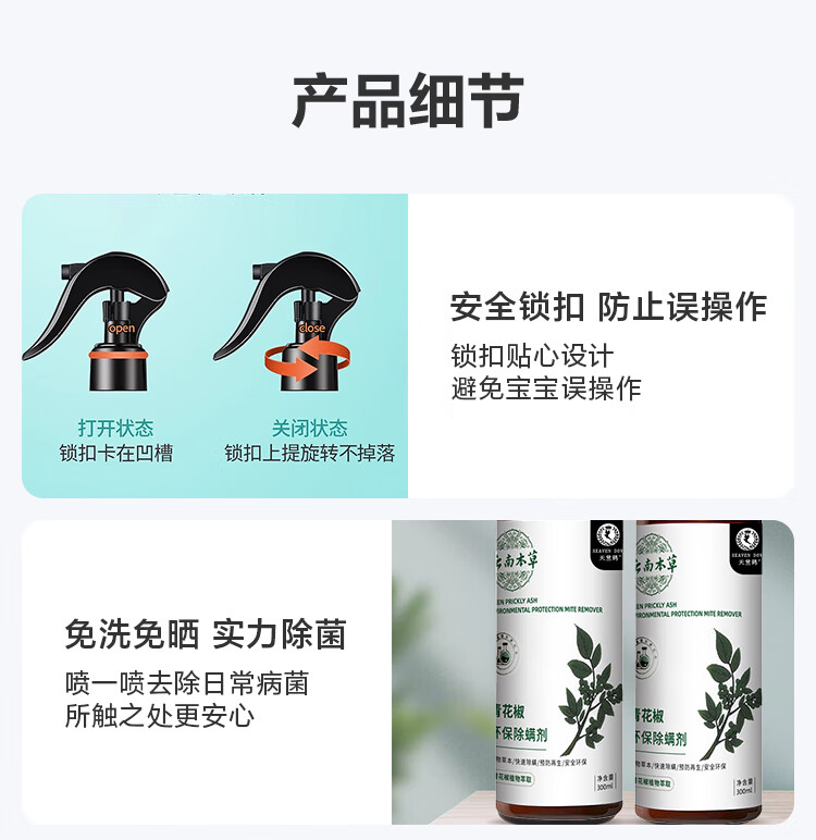 Mite removal spray, mite removal no-wash plant anti-dust mite soap bag, mite removal bed sticker, mite removal spray, 2 bottles + 1 pump head