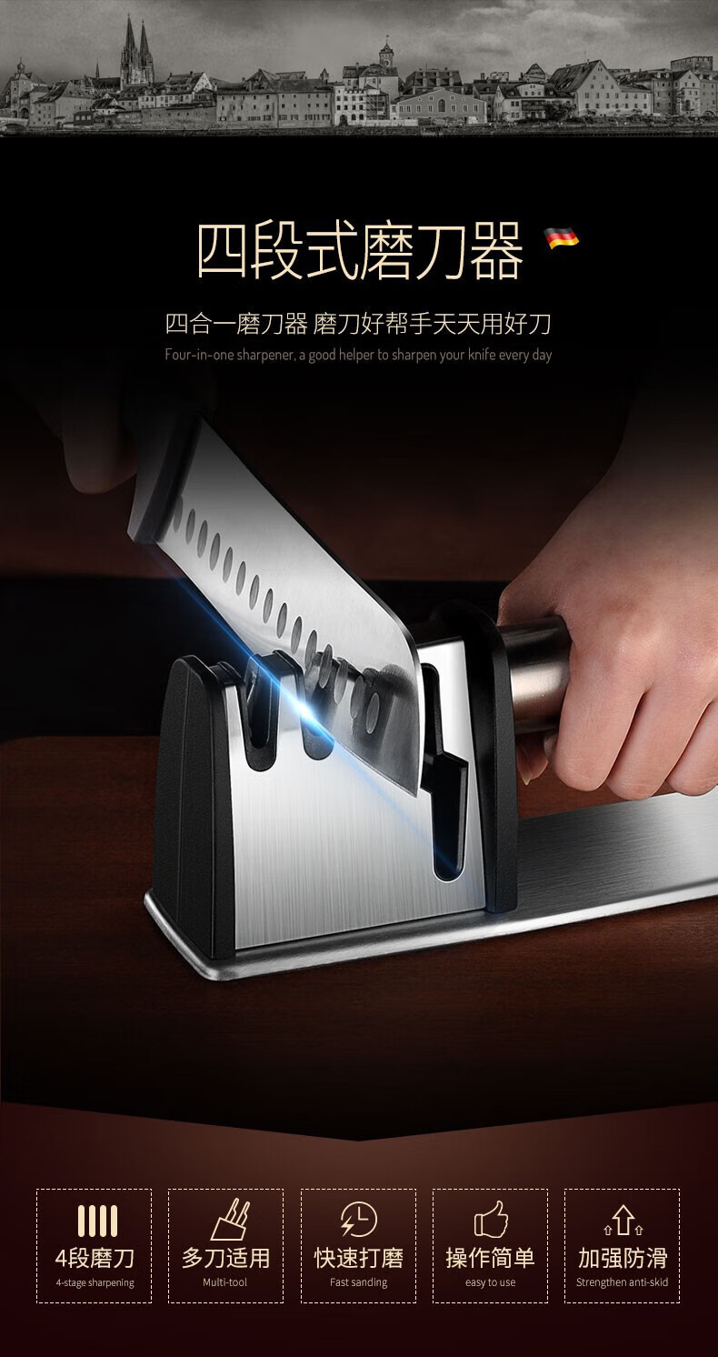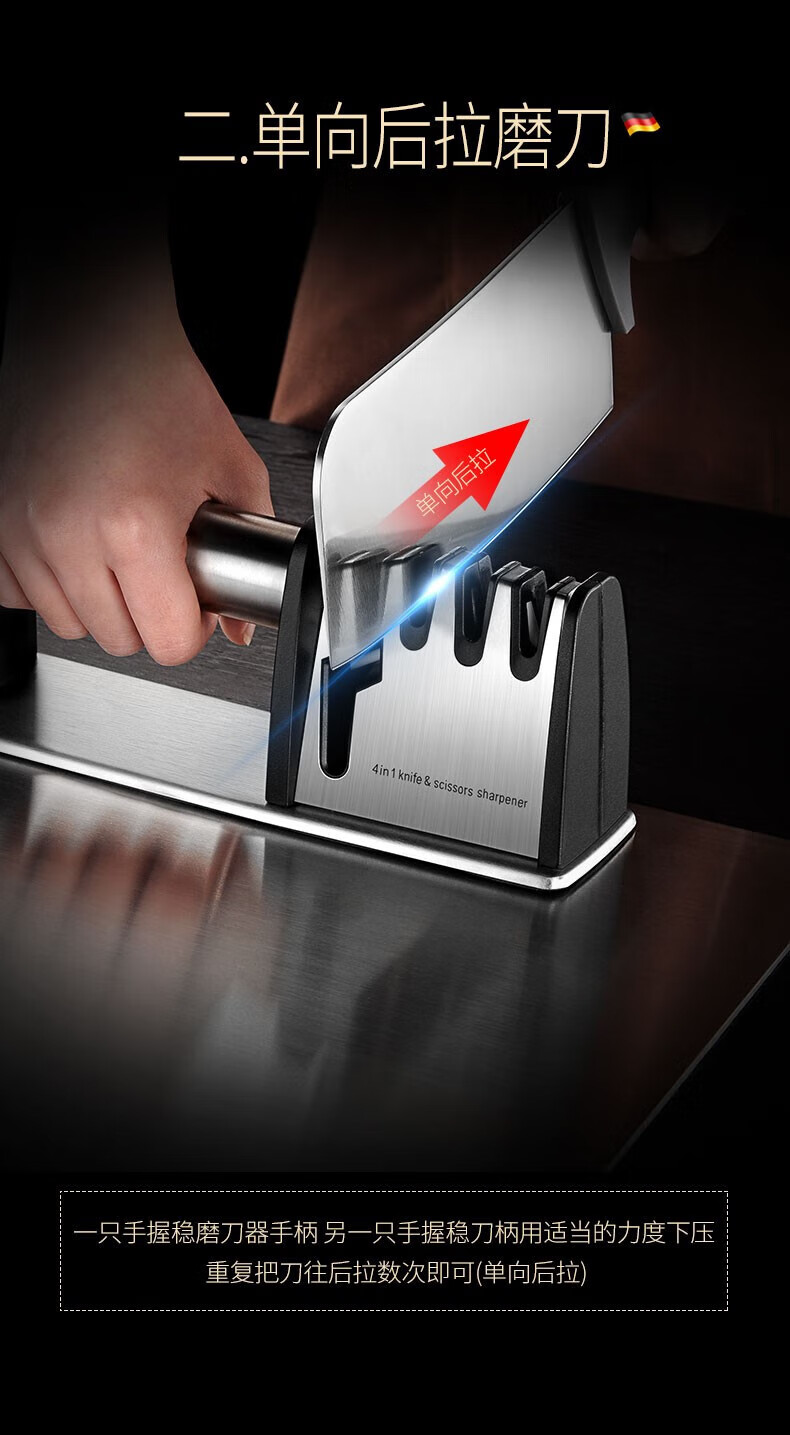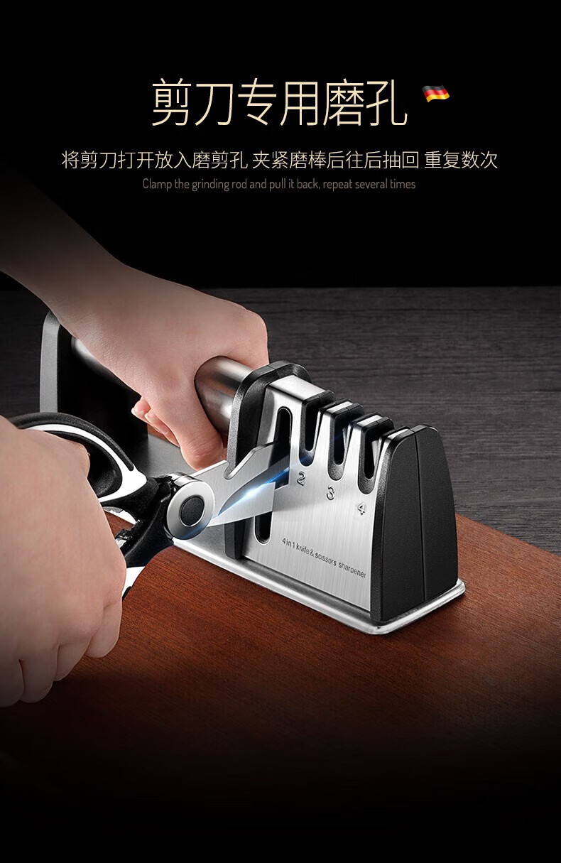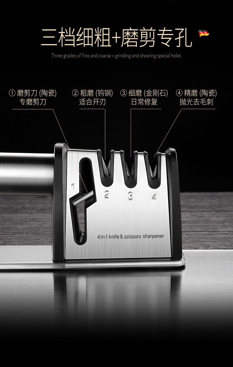 Jiangxiju German knife sharpener multifunctional knife sharpener kitchen knife scissors sharpening stick manual household sharpening stone four-in-one knife sharpener