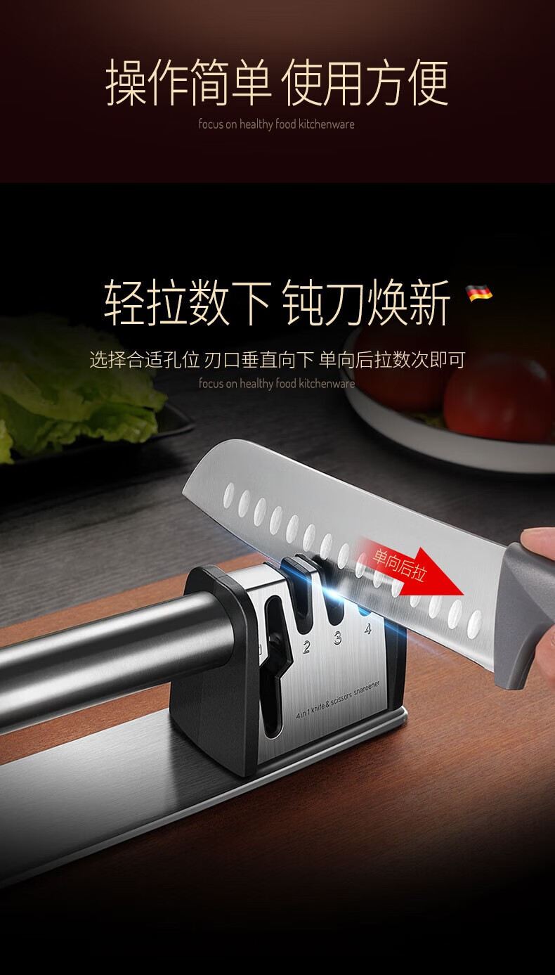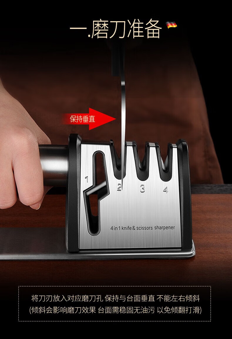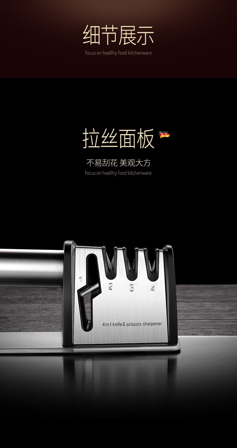 Jiangxiju German knife sharpener multifunctional knife sharpener kitchen knife scissors sharpening stick manual household sharpening stone four-in-one knife sharpener